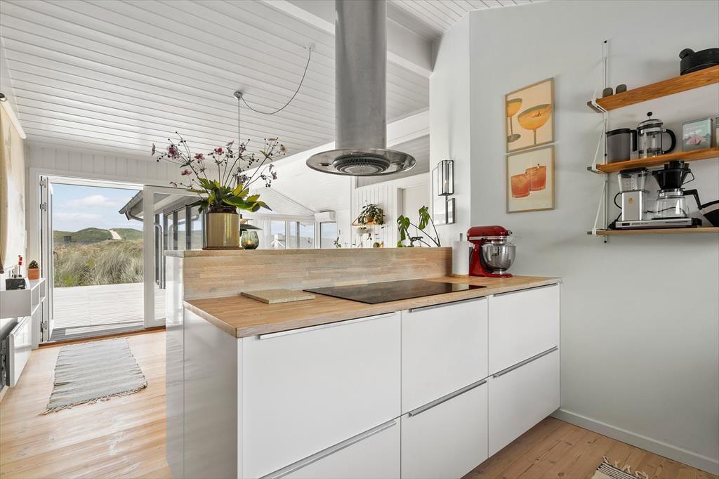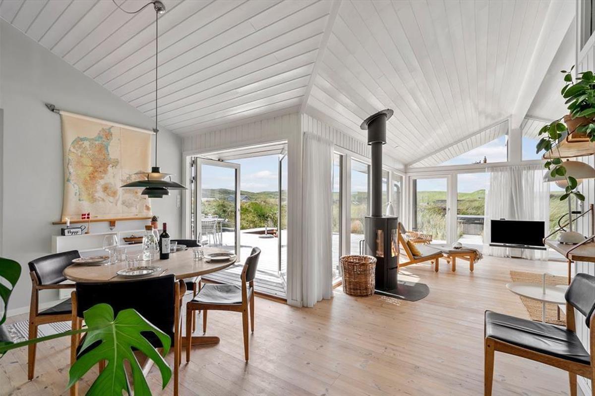 Surfen, Radfahren, Angeln und wunderschöne Sonnenuntergänge am Ufer der Nordsee. Dies ist nur eine kleine Auswahl der vielen Outdoor-Aktivitäten, die ein Urlaub auf Holmsland Klit bieten kann. Doch genau so schön ist es, das Urlaubsleben einfach drinnen zu genießen – besonders, wenn man die Tage in diesem hell und einladenden Sommerhaus am Tingodden 513 in Aargab verbringt.