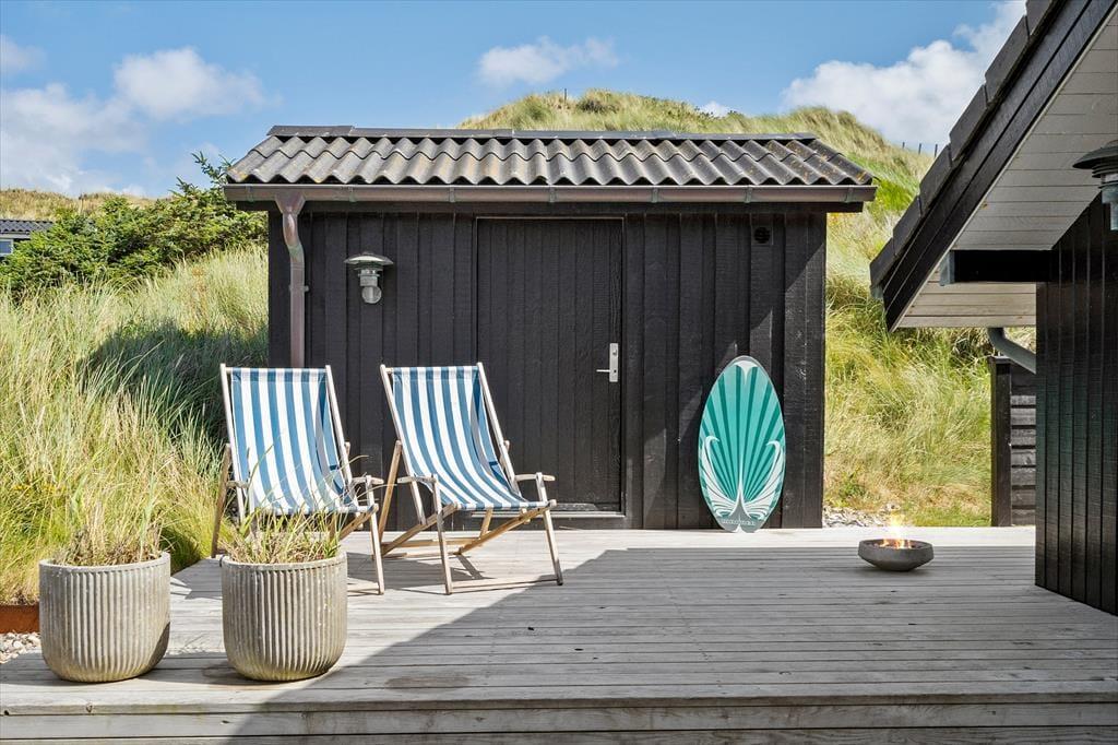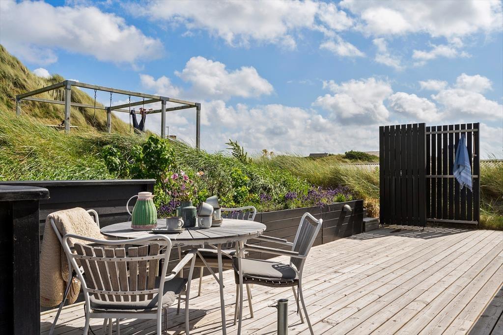 Aargab ist ein friedlich und ruhiger Urlaubsort, und wenn Sie Ihre Tage lieber ruhig verbringen möchten, können Sie einfach in der Nähe des Hauses bleiben – mit kleinen Abstechern zum Strand, der nur wenige hundert Meter entfernt ist. Möchten Sie ein bisschen mehr von Holmsland Klit erleben, können Sie in den mit Heidekraut bedeckten Weiten der Landenge wandern oder Rad fahren, und es liegt natürlich auch auf der Hand, den Ringkøbing Fjord genauer anzusehen, der sich ganz in der Nähe erstreckt. Sie können die Hafenstadt Hvide Sande sowohl mit dem Auto als auch mit dem Fahrrad leicht erreichen. Haben Sie also Lust ein Restaurant zu besuchen, einen Surfkurs zu belegen oder Ihr Glück als Angler am Hafen zu versuchen, ist dies problemlos möglich.