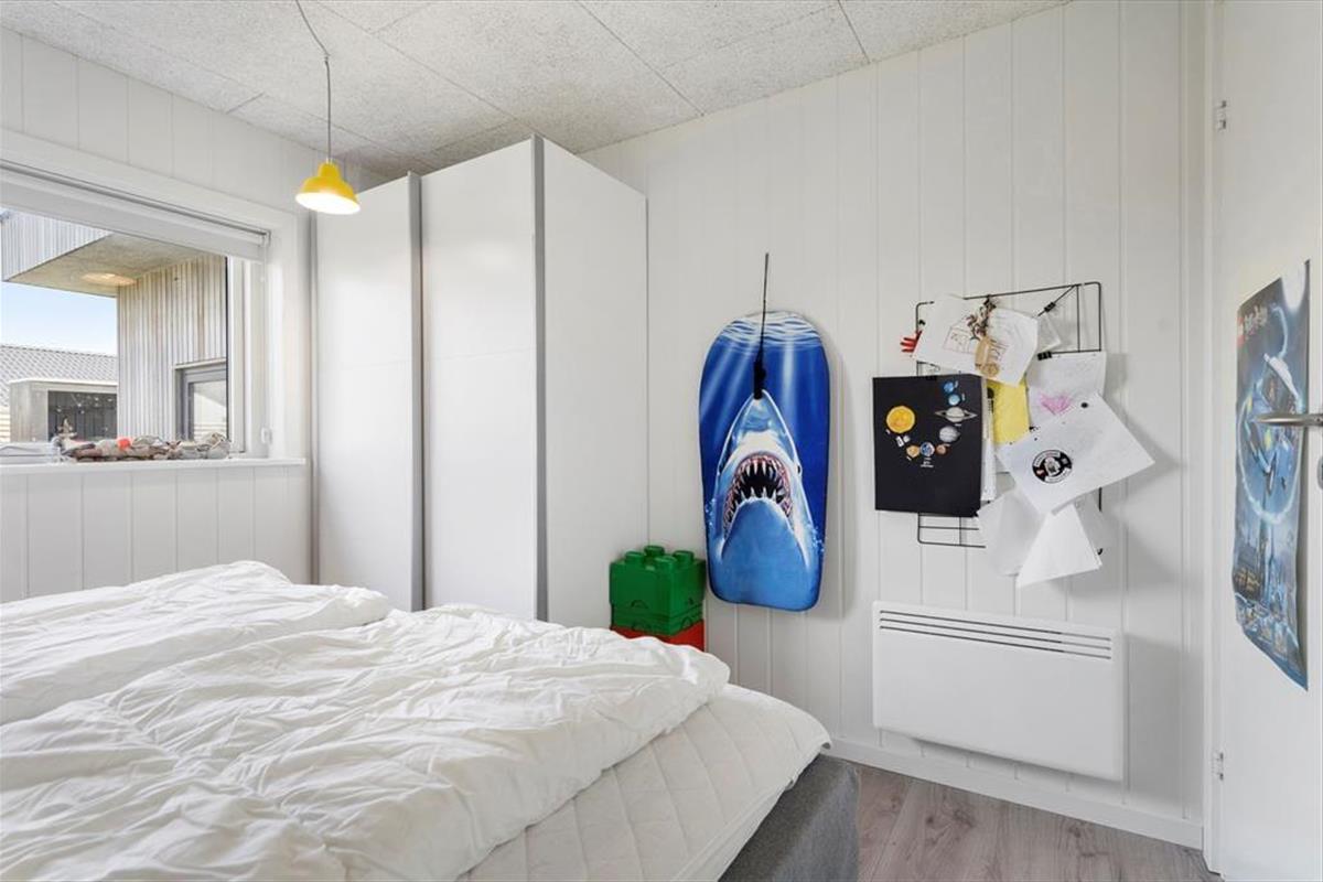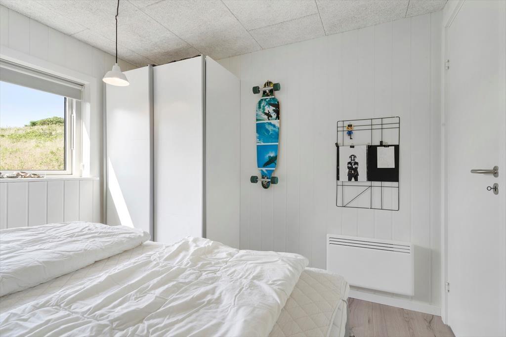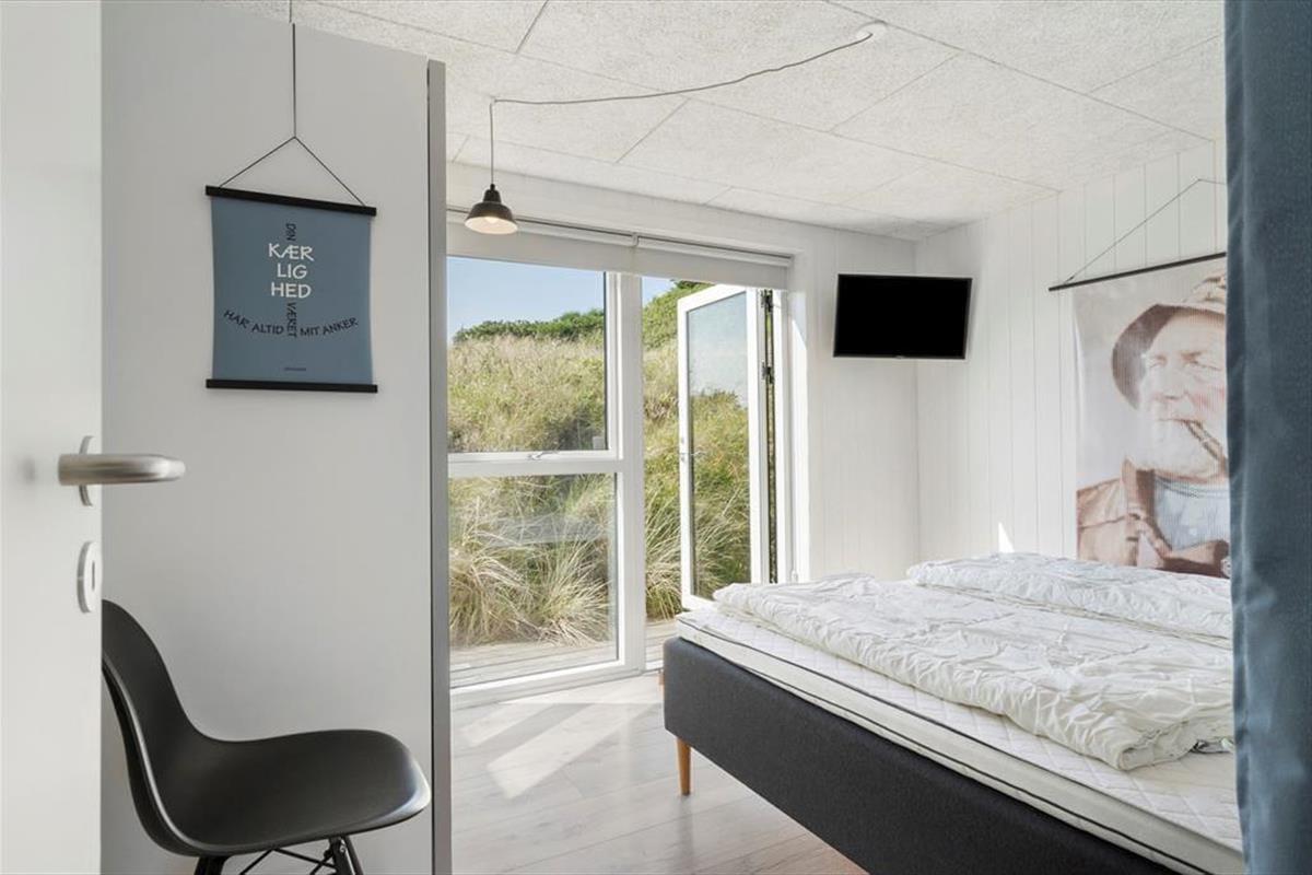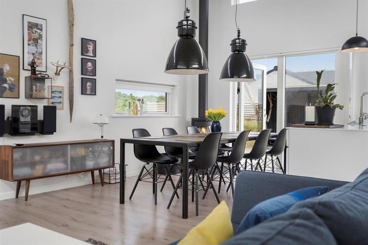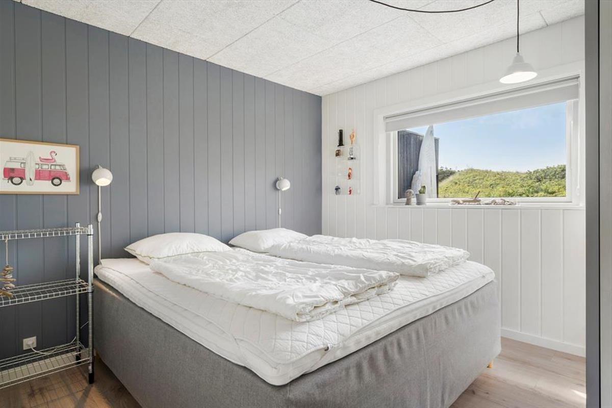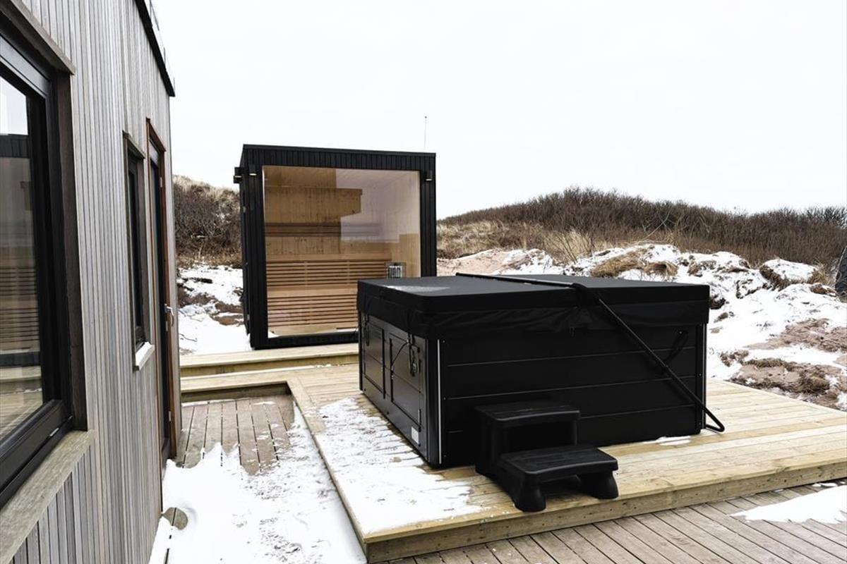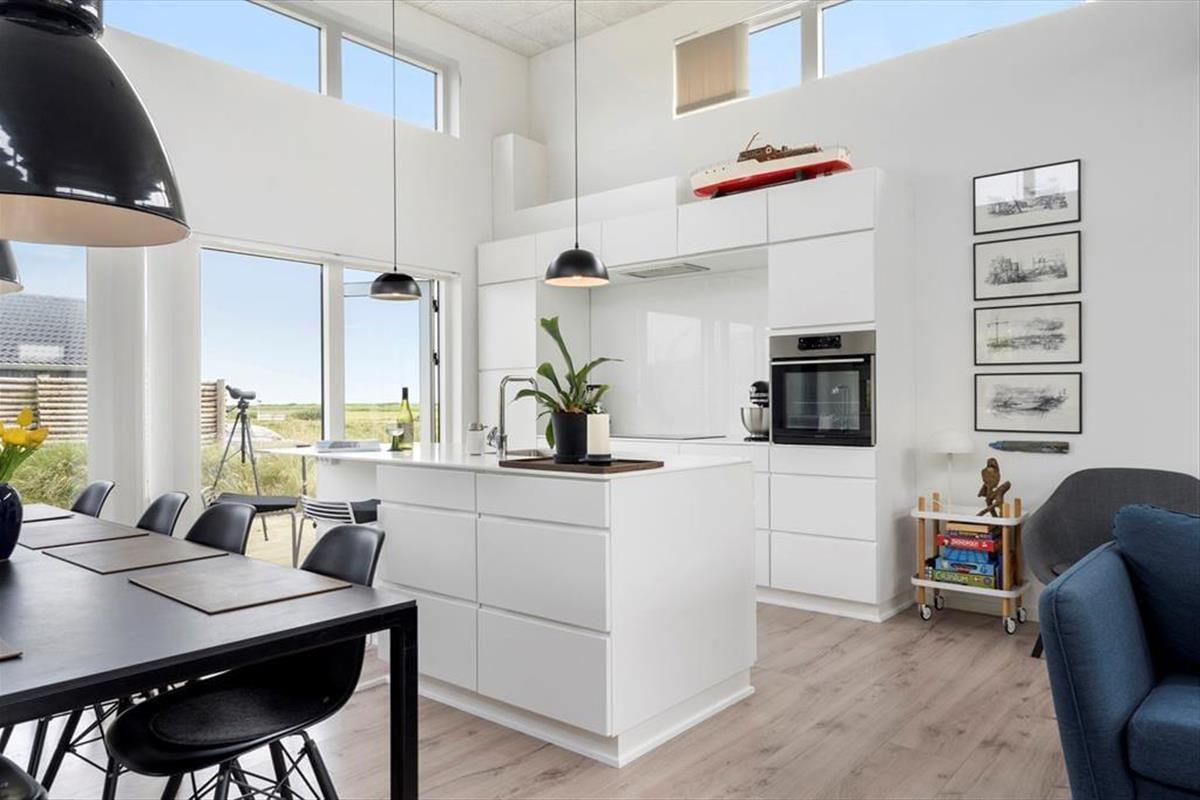 Die ansprechende Holzfassade des im Jahr 2019 erbauten Ferienhauses fügt sich wunderbar in die landschaftlich schöne Umgebung Holmsland Klits ein. Im Inneren sorgen viele Fensterpartien für einen hübschen Tageslichteinfall. Vom Wohnraum blickst du über die offene Landschaft und siehst den Fjord im Osten schimmern. Die tolle Küche ist offen in den Wohnraum integriert. Dadurch genießt du selbst während der Zubereitung der Mahlzeiten die Gesellschaft deiner Lieben. Der an der Wand hängende Spieleautomat garantiert Groß und Klein viel Spaß und Unterhaltung. An kühlen Tagen verwöhnt dich der Kaminofen mit behaglicher Wärme und einem Maximum an echter Ferienhausatmosphäre. Zur Wohnfläche zählen darüber hinaus vier große Schlafräume und zwei gute Badezimmer. Die Schlafräume und Bäder verteilen sich auf zwei voneinander getrennte Bereiche, wodurch sich dieses Mietobjekt hervorragend für den gemeinsamen Urlaub zweier befreundeter Familien eignet.