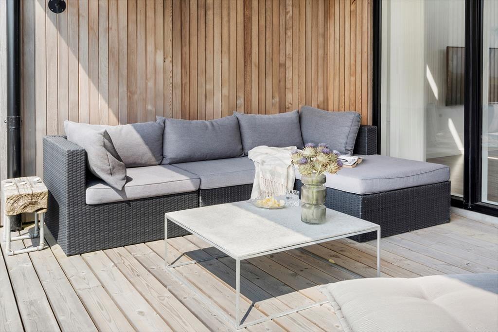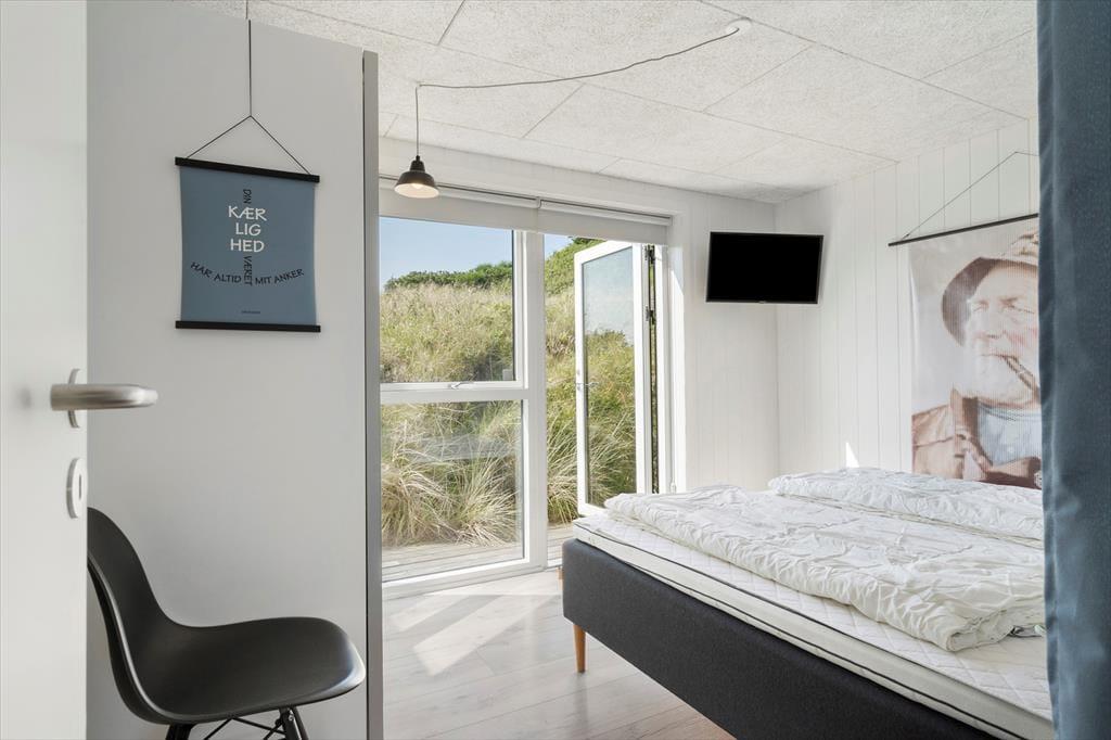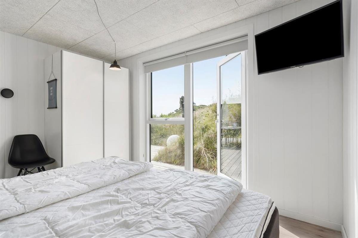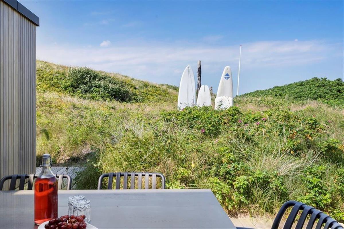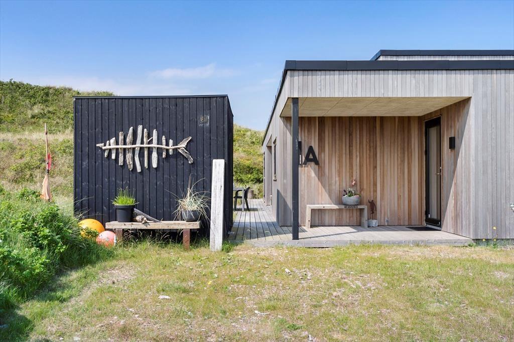 Dein Ferienhaus liegt am Rande von Mettes Bjerg, einer hohen Düne, der dein Ferienhausweg seinen Namen verdankt. Auf dem höchsten Punkt deines Naturgrundstücks erwartet dich eine Bank, auf der du dich in aller Ruhe niederlassen und vom Ausblick auf die hübsche Landschaft in den Bann ziehen lassen kannst. Die Aussicht auf den Ringkøbing Fjord ist von hier oben wunderschön. Das Wasser siehst du auch von der nach Norden und der nach Osten gerichteten Terrasse aus im Hintergrund schimmern. Die dritte Terrasse deines Ferienhauses weist gen Süden. Sie wird ein wenig durch die Dünen abgeschirmt und lädt zum Entspannen in der Sonne ein. Ein Teil der Südterrasse ist überdacht und vom Haus eingerahmt, sodass du hier lange Urlaubsabende angenehm geschützt im Kreise deiner Lieben ausklingen lassen kannst.