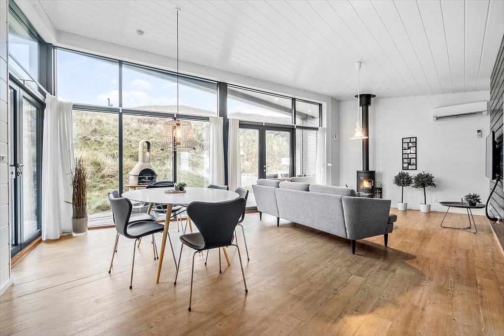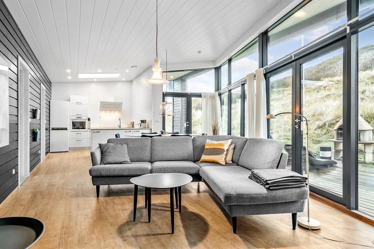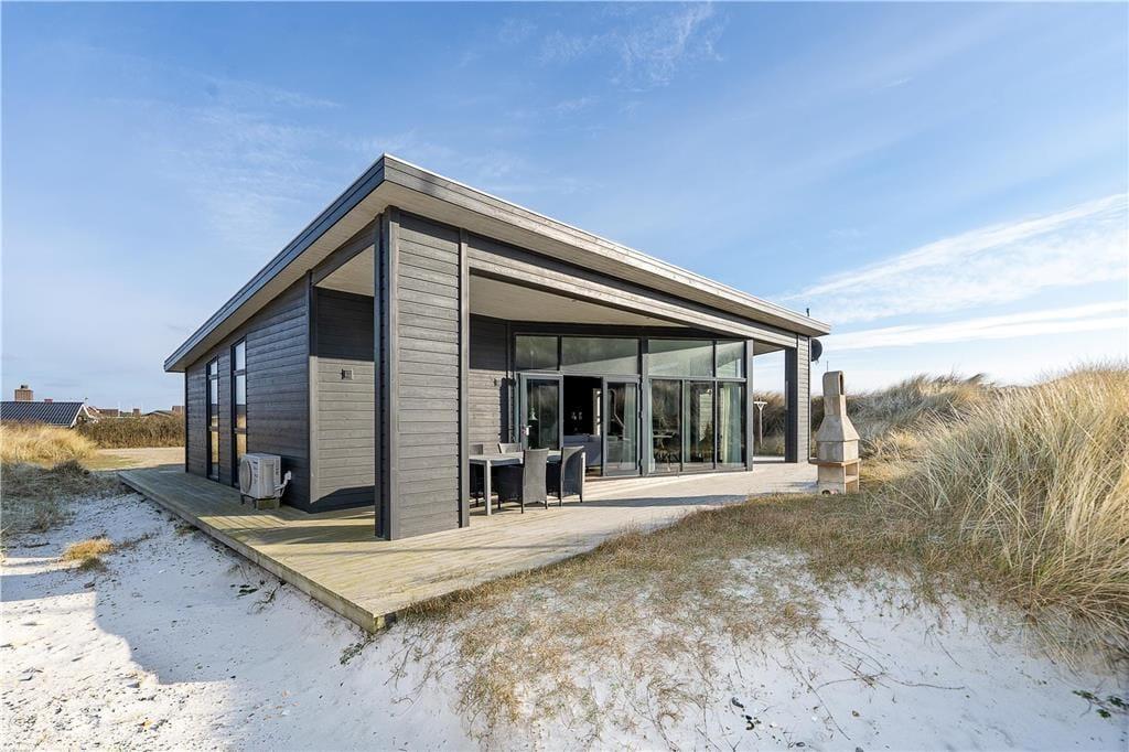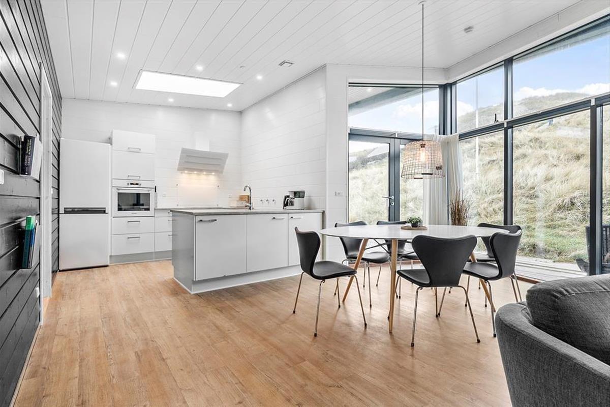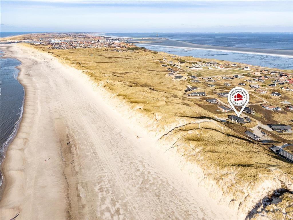 Auf der Düne hinter dem Ferienhaus eröffnet sich Ihnen nicht nur eine Panoramaaussicht über den Aargab Strand und die Nordsee, sondern auch ein Ausblick auf den Ringkøbing Fjord im Osten. Ihre Urlaubstage auf der schmalen Nehrung Holmsland Klit werden durch Aktivitäten im, am und auf dem Wasser geprägt. Sie können beispielsweise nach Herzenslust in der Nordsee baden, in Meer und Fjord angeln und mit dem Surfbrett, dem SUP-Board und dem Kajak in See stechen. Westwind Syd, einer der fantastischen Surfspots der Gegend, ist nach 500 Metern erreicht. Zwei Kilometer entfernt freut sich der Ortskern Hvide Sandes mit seinen interessanten Geschäften und den schönen Lokalitäten auf Ihren Besuch.