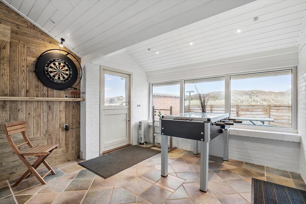 Dieses schöne Ferienhaus für acht Personen verfügt über einen Aktivitätsraum mit einem Tischkicker und einer Dartscheibe sowie über ein großes Badezimmer mit einem Whirlpool und einer Sauna. Es gibt 8 Betten in 3 Schlafzimmern und einem Nebengebäude sowie einer Schlafnische im Wohnzimmer. Im Freien erwarten Sie hervorragende Außenareale. 350 Meter trennen Sie von der Nordsee. Insgesamt bildet dieses Ferienhaus einen sehr schönen Rahmen für erholsame Urlaubstage auf Holmsland Klit.