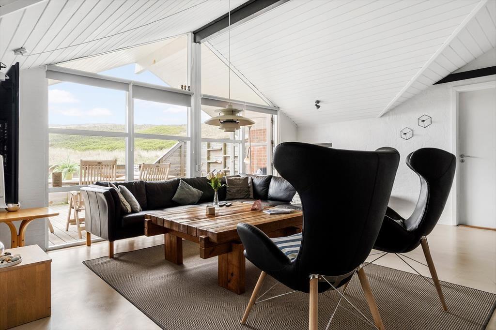 Das hügelige Dünengelände grenzt direkt an das Landschaftsschutzgebiet, das das Ferienhausgebiet von Argab Strand trennt, und Sie müssen nur den Wanderwegen in den Dünen folgen, um den schönsten Panoramablick über die Nordsee und Holmsland Klit zu genießen. Die schmale Landzunge liegt spektakulär zwischen dem Meer und dem Ringkøbing Fjord, und ungeachtet dessen, wo Sie sich hinbewegen, haben Sie das Gefühl, dicht am Wasser zu sein. Die Urlaubstage lassen sich hervorragend mit Surfen, Angeln, Baden und den herrlichsten Sonnenuntergängen am Strand zubringen, und falls Sie gerne Fisch essen, können Sie sich darauf freuen, bei den Fischhändlern und Räuchereien der Hafenstadt Hvide Sande groß einzukaufen.