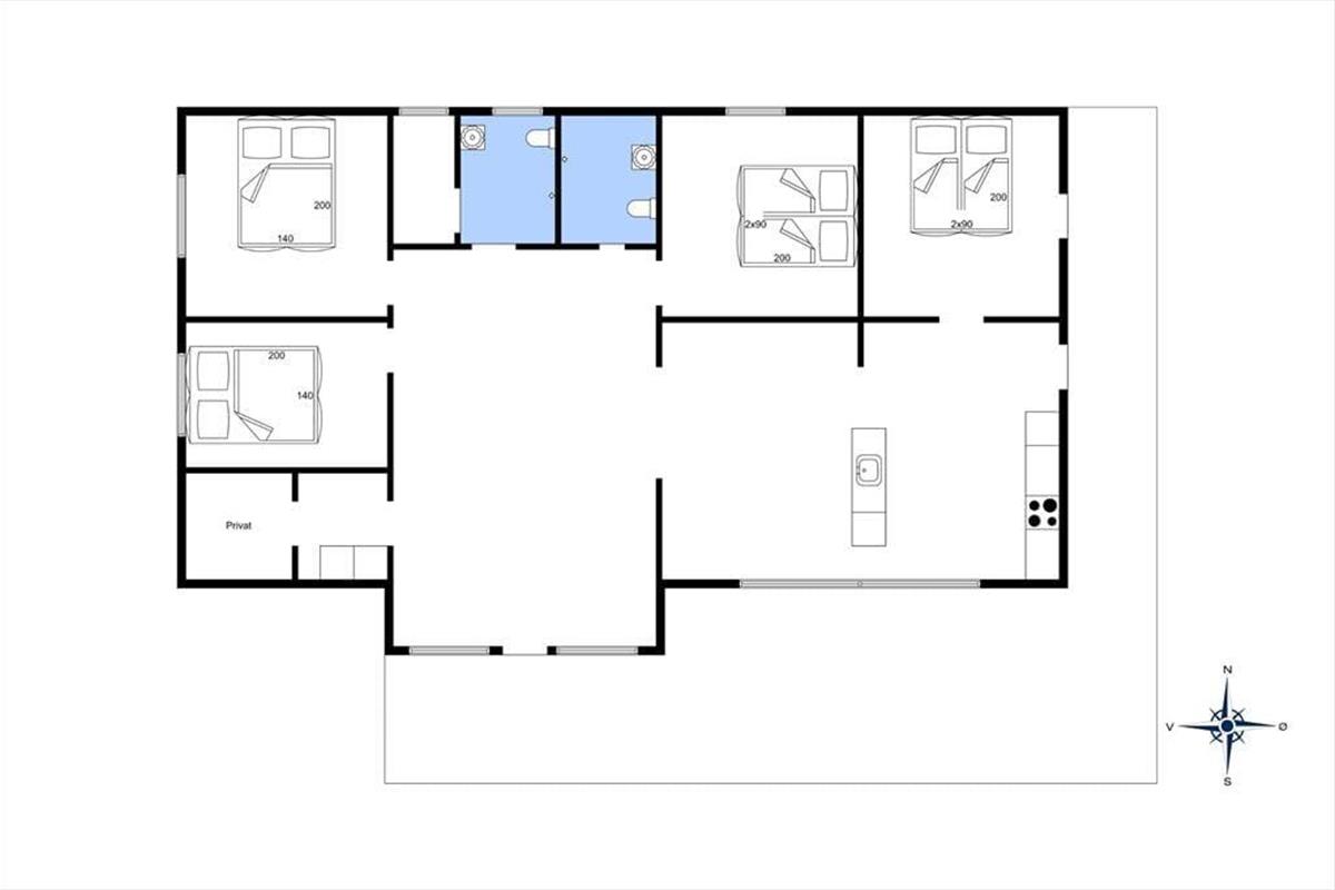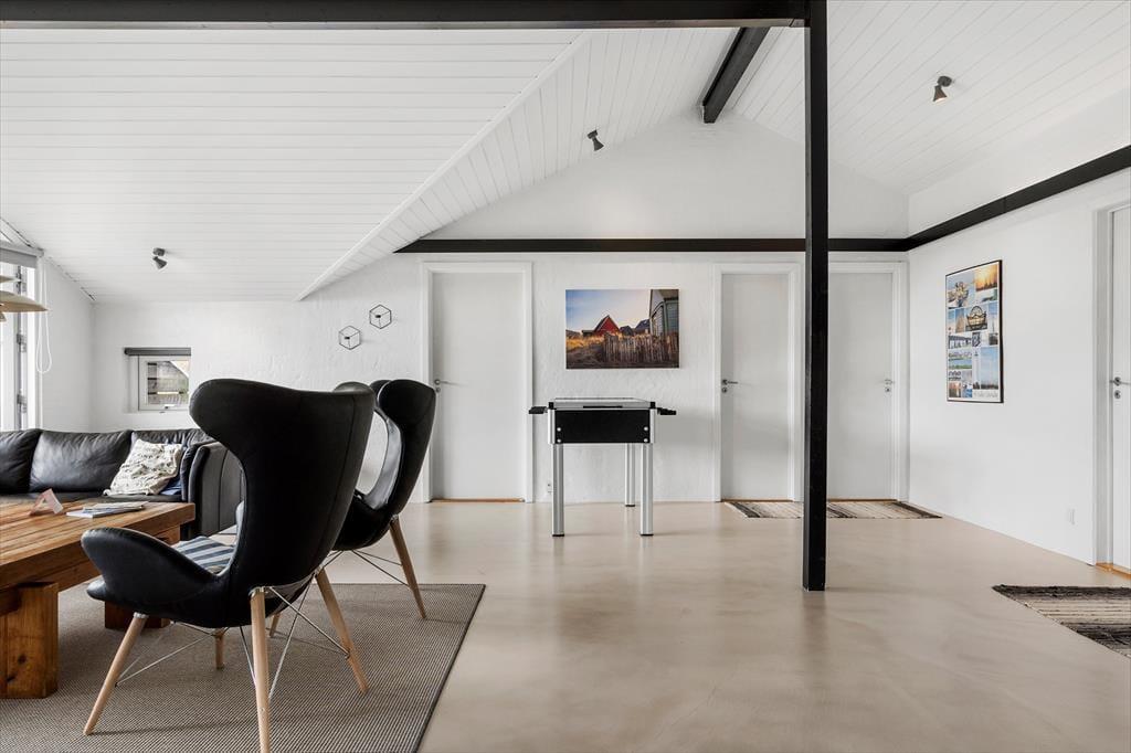 Innerhalb des Hauses können Sie sich auf 130 m² ausbreiten - und die vielen Quadratmeter sind gut ausgenutzt, sodass Sie das Haus gut und gerne mit acht Personen bewohnen können. Die vier Schlafzimmer sind gleichmäßig auf beide Enden des Ferienhauses verteilt, und mit zwei Schlafzimmern umgehen Sie es, für die morgendliche Dusche anzustehen. Von dem einen Badezimmer aus haben Sie auch Zugang zur Sauna - wenn Sie Entspannung und Selbstfürsorge brauchen, ist eine beschauliche Pause im Warmen das Mittel der Wahl.