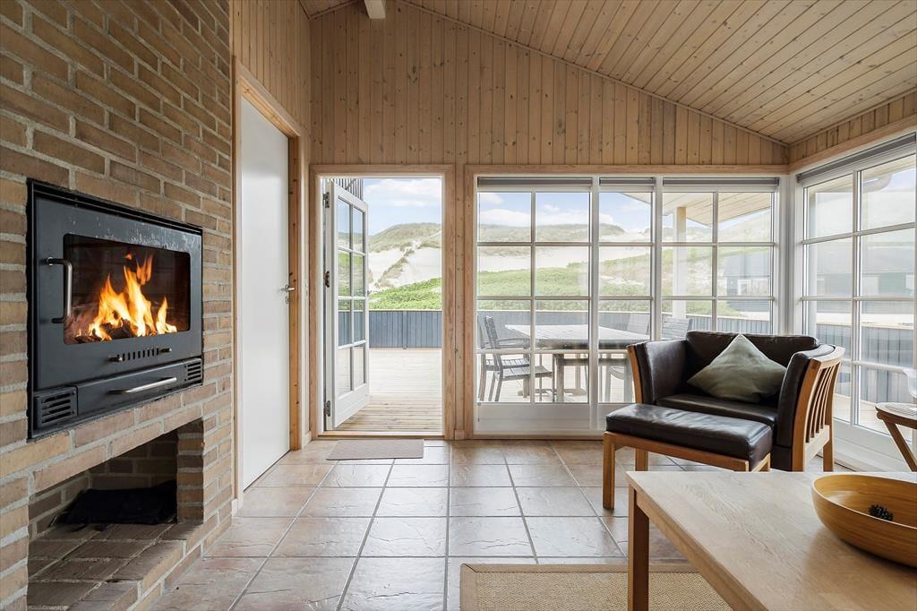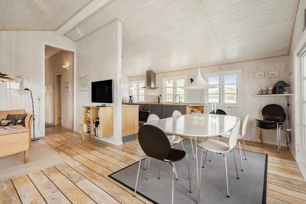 Das 120 m² große, schöne und gut eingerichtete Ferienhaus wurde im Jahr 2008 modernisiert und erweitert. Die Wohnatmosphäre ist hell und ansprechend. Durch die Fenster blicken Sie auf die Dünen, die sich hoch über der Natur des Ferienhausgebiets erheben. Die drei Schlafräume mit insgesamt sechs Schlafplätzen verfügen über gute Boxmatratzen. Zentral im Haus befinden sich zwei Badezimmer, von denen das eine mit einem Waschturm und das andere mit einer Sauna versehen ist. Das attraktive Aufenthaltsareal ist ebenfalls erwähnenswert. Beim Eingangsbereich steht Ihnen ein kleiner Büroarbeitsplatz zur Verfügung. Der große, einladende Küchen-, Wohn- und Essbereich liegt am nordöstlichen Ende des Hauses. Er verwöhnt mit einem Kaminofen, einem Flachbild-TV und vielem mehr und wird im Nu zum bevorzugten Sammelpunkt aller Mitreisenden avancieren.