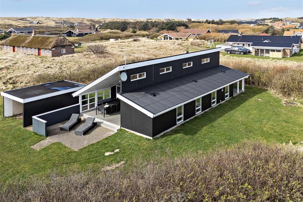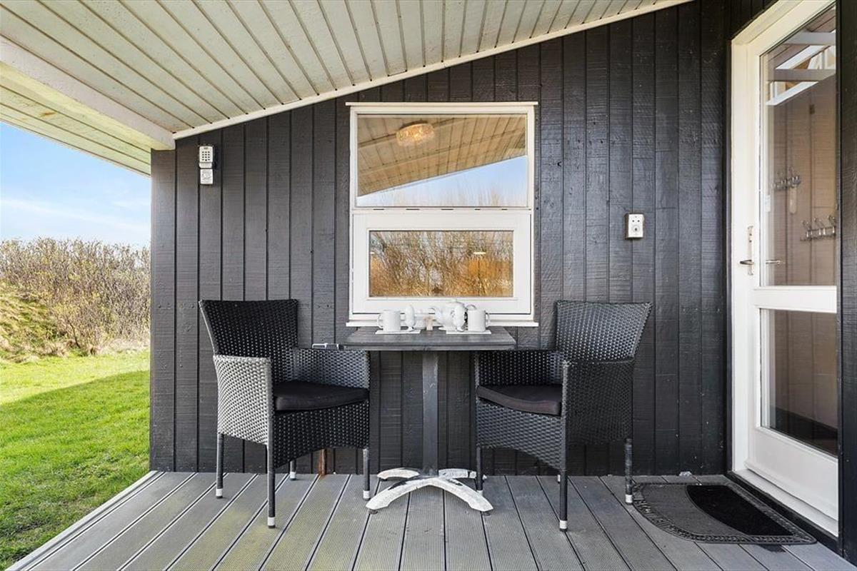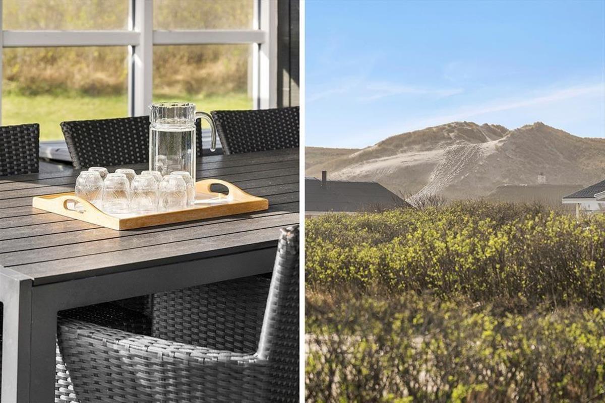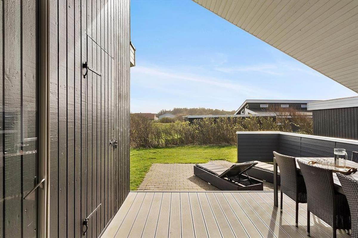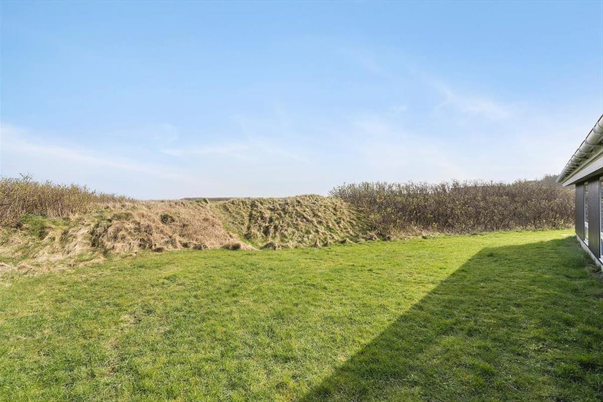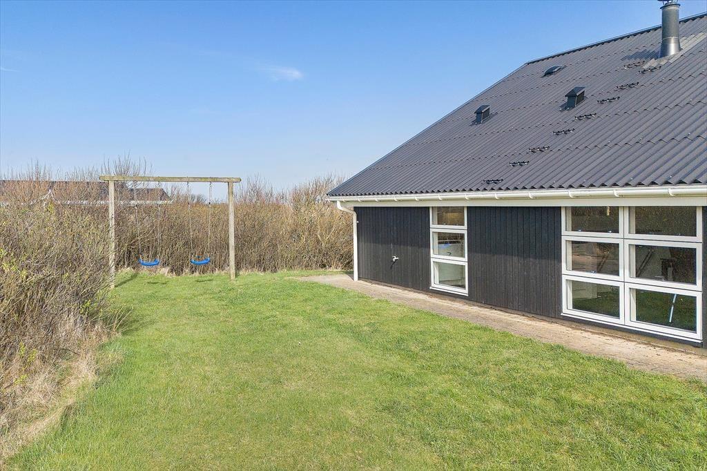 Wenn Sie von nichts anderem träumen, als sich zu entspannen und die frische Seeluft und die entspannte Atmosphäre von Holmsland Klit zu genießen, ist ein ruhiger Nachmittag auf der Terrasse genau das Richtige. Im Nordosten befindet sich eine überdachte Terrasse, und im Süden des Hauses breitet sich ein großer, teilweise überdachter Terrassenbereich aus. In der Nähe des Hauses gibt es eine Schaukel und einen Sandkasten, und im Carport kann das Auto abgestellt werden. Ein Erdwall schirmt das Grundstück nach Osten hin ab, so dass Sie völlig ungestört auf dem Naturgrundstück verweilen können - und wenn Sie auf die Spitze des Walls steigen, können Sie die schöne Aussicht auf Holmsland Klit und den Ringkøbing Fjord genießen.
