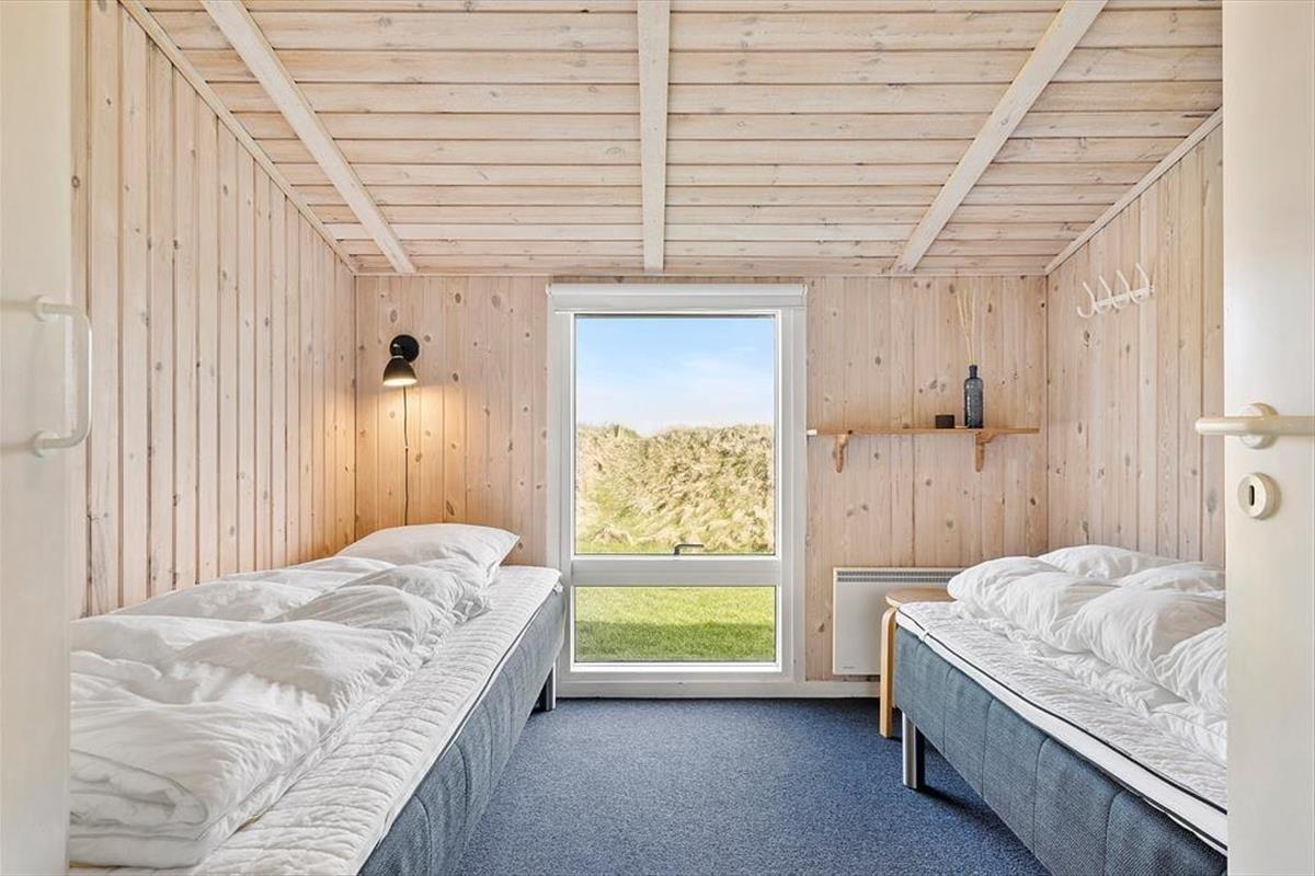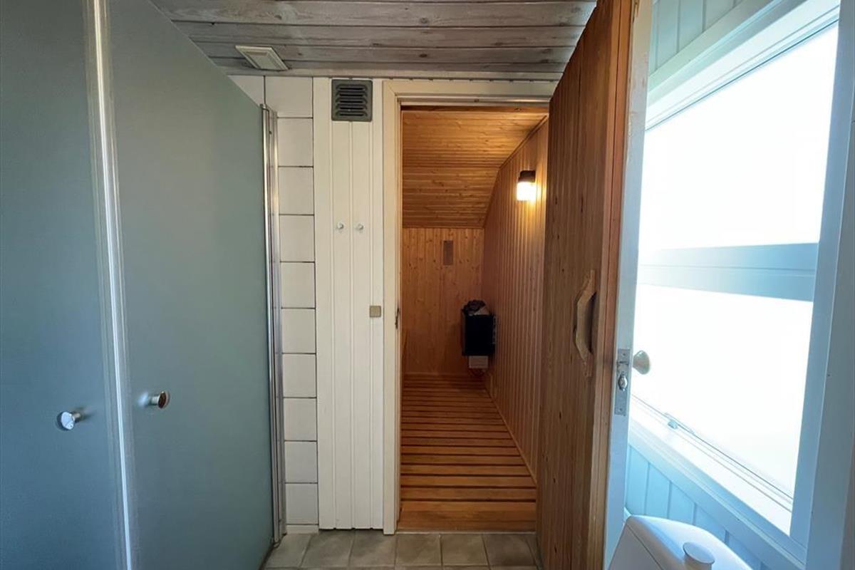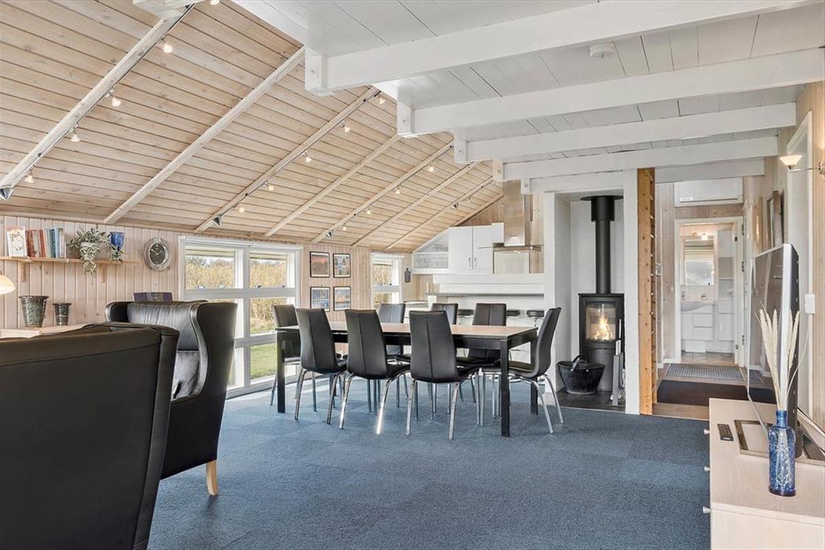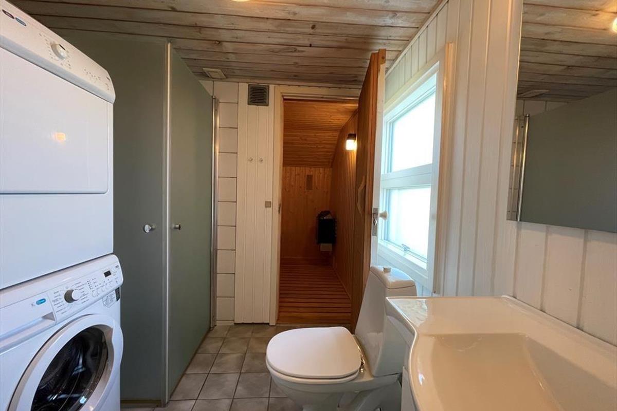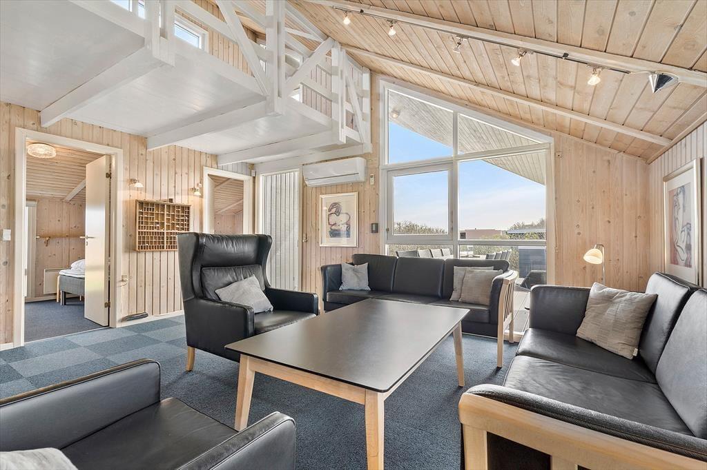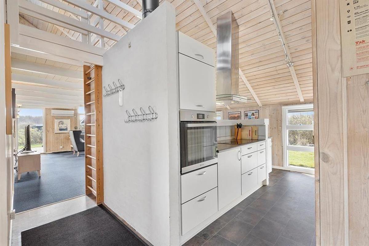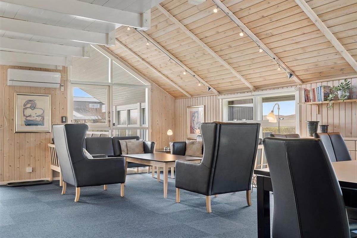 Wenn Sie von nichts anderem träumen, als sich zu entspannen und die frische Seeluft und die entspannte Atmosphäre von Holmsland Klit zu genießen, ist ein ruhiger Nachmittag auf der Terrasse genau das Richtige. Im Nordosten befindet sich eine überdachte Terrasse, und im Süden des Hauses breitet sich ein großer, teilweise überdachter Terrassenbereich aus. In der Nähe des Hauses gibt es eine Schaukel und einen Sandkasten, und im Carport kann das Auto abgestellt werden. Ein Erdwall schirmt das Grundstück nach Osten hin ab, so dass Sie völlig ungestört auf dem Naturgrundstück verweilen können - und wenn Sie auf die Spitze des Walls steigen, können Sie die schöne Aussicht auf Holmsland Klit und den Ringkøbing Fjord genießen.