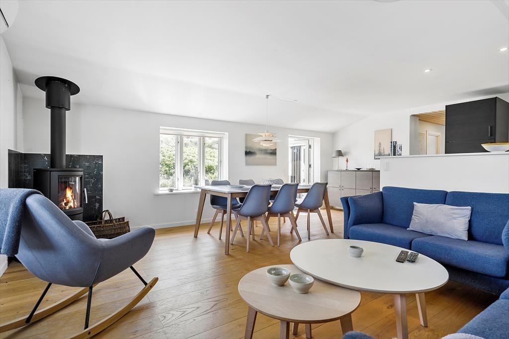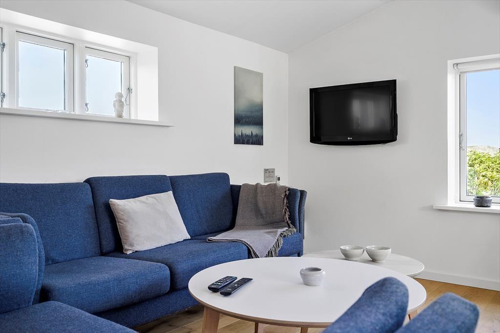 Das Ferienhaus liegt in der zweiten Häuserreihe vor dem Strand - in einer Sackgasse. Von Ihrem hügeligen Grundstück können Sie nahezu direkt dem Pfad hinauf auf die höchste Düne folgen, auf der sich Ihnen eine wunderschöne Aussicht über Holmsland Klits reizvolle Landschaft eröffnet. Auf der anderen Seite der Dünen gelangen Sie hinunter an den Strand. Die kurze Entfernung zu Nordsee und Ringkøbing Fjord bietet Anglern, Surfern, SUP-Boadern und anderen Wassersportlern beste Möglichkeiten zur Ausübung ihres Hobbys. Angler treffen in der näheren Umgebung auf mehrere Put & Take-Angelseen. Alternativ begeben sie sich in den wenige Kilometer entfernten Fischereihafenort Hvide Sande, der mit richtig guten Angelplätzen zu begeistern weiß. Falls Sie selber nicht angeln und dennoch gern Fisch essen, besuchen Sie einfach Hvide Sandes gute Fischhändler, Räuchereien und Restaurants.