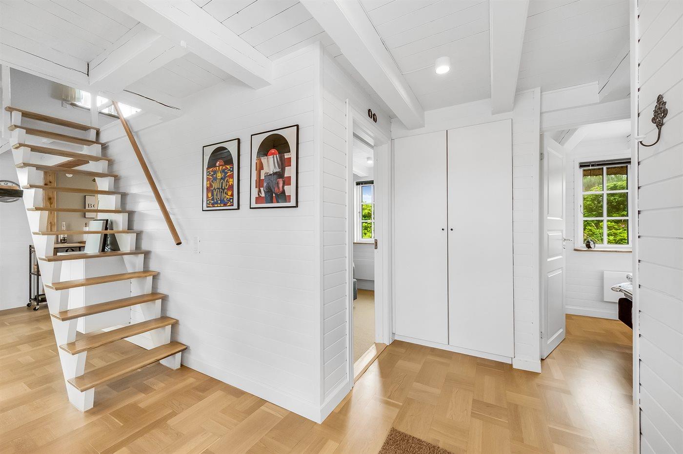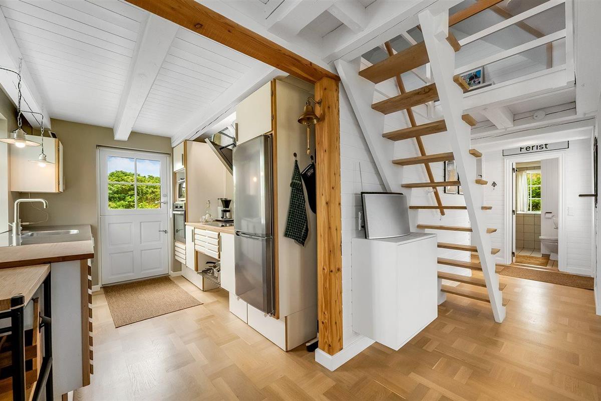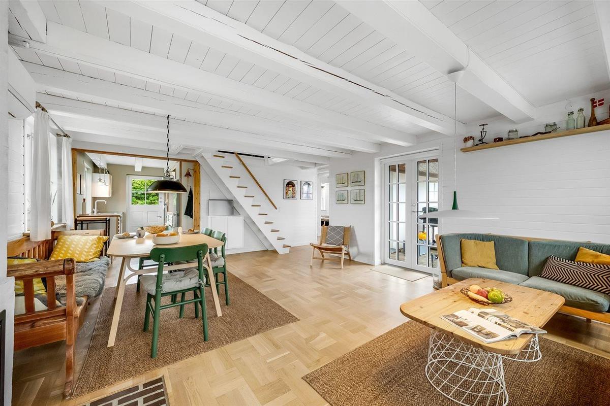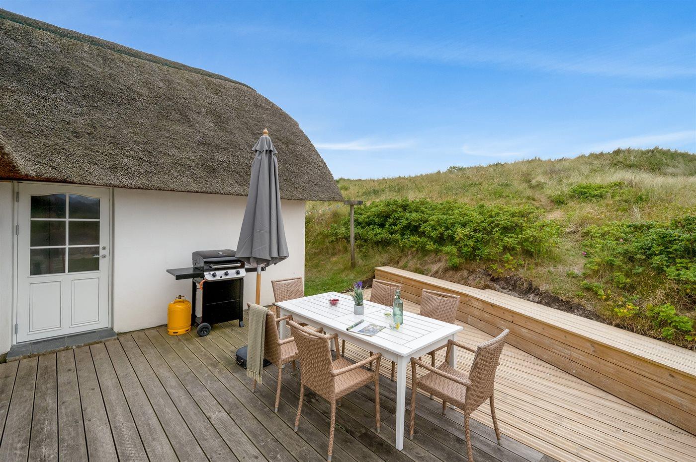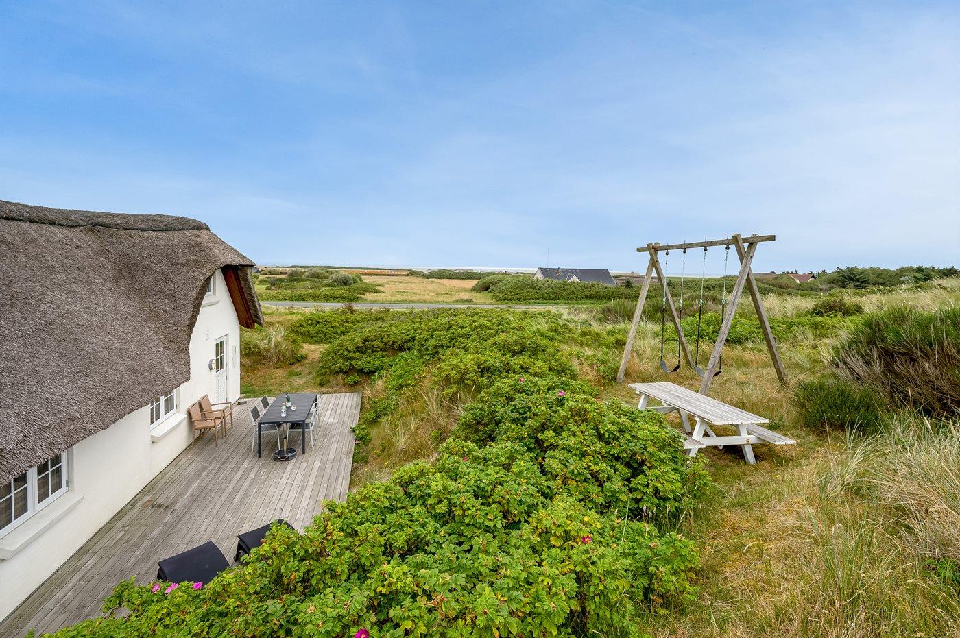 De vakantiewoning is gelegen op een 3300 m² groot natuural grond. Afstand tot de zee 300 m. Afstand tot de fjord 200 m. Afstand tot meer 300 m. Dichtstbijzijnde winkel 4500 m. Bij de vakantiewoning hoort 70 m² terras. Tafel barbecue. Parkeerplaats bij het huis.