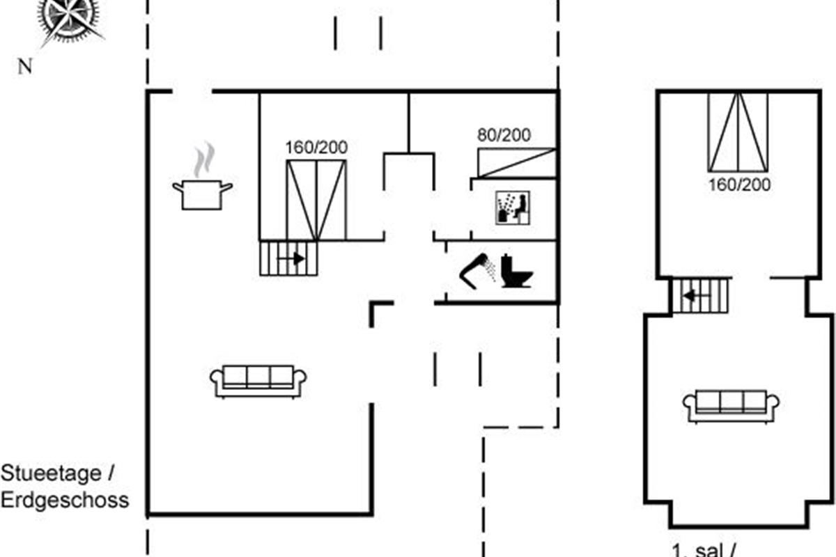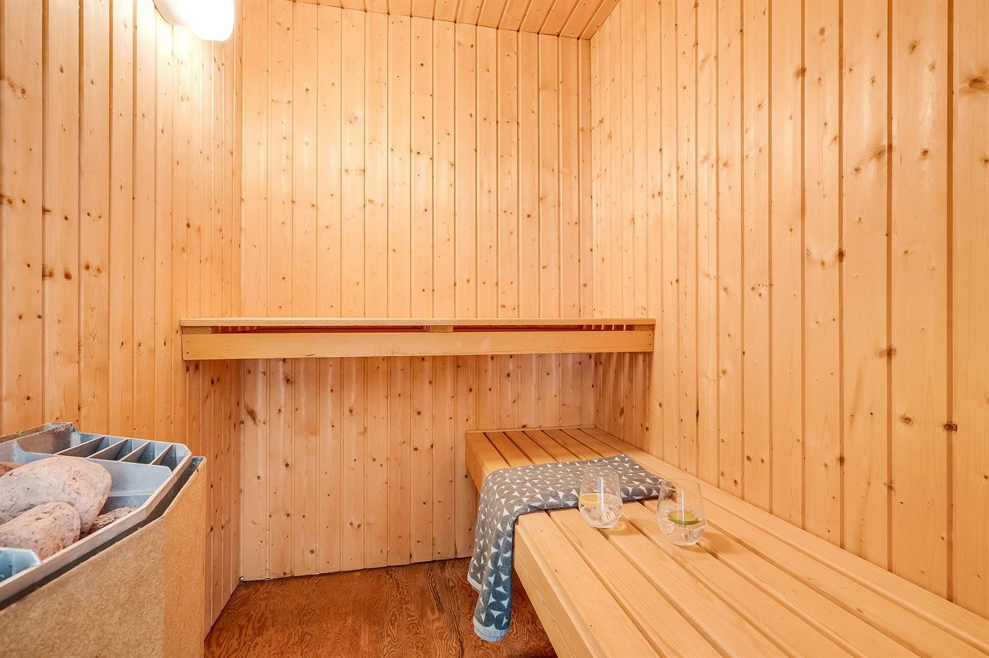 Er is 1 badkamer met douchehok en 1 toilet. De sauna biedt de gelegenheid tot ontspanning.