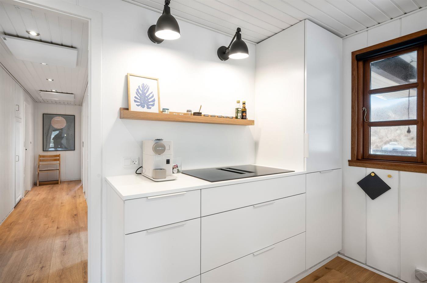 De keuken is uitgerust met koelkast Er is 4 inductiekookplaten, heteluchtoven, magnetron en vaatwasser.