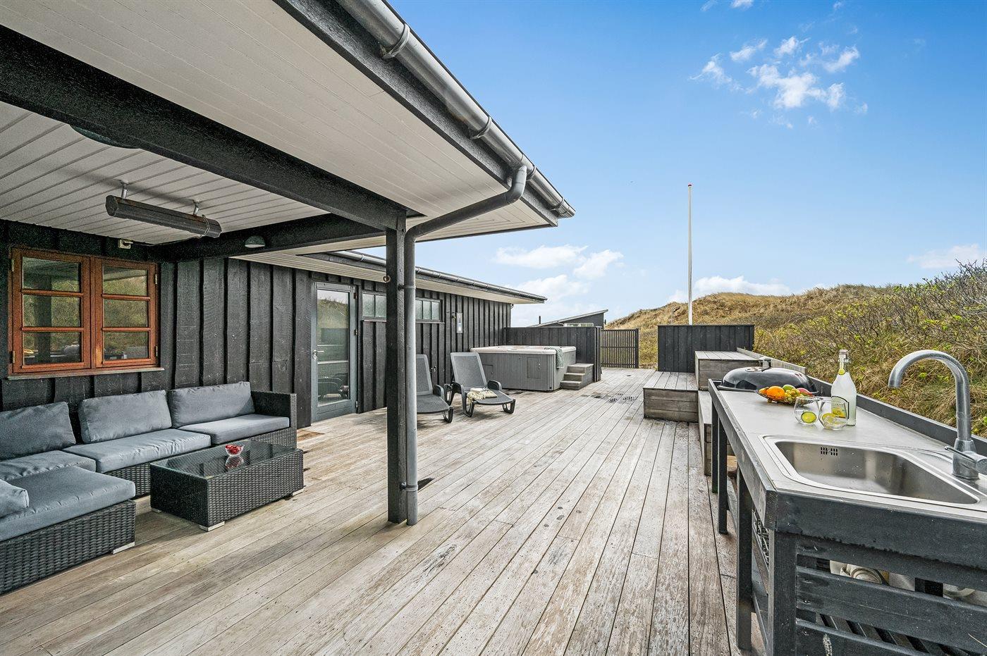 Volledig gerenoveerd vakantiehuis in Årgab met bubbelbad, buitenkeuken en zeezicht, perfect voor een ontspannen verblijf.