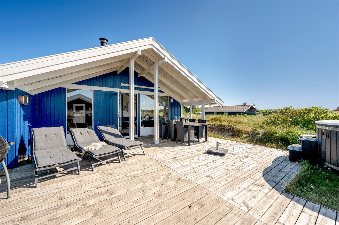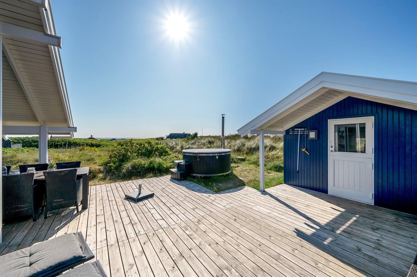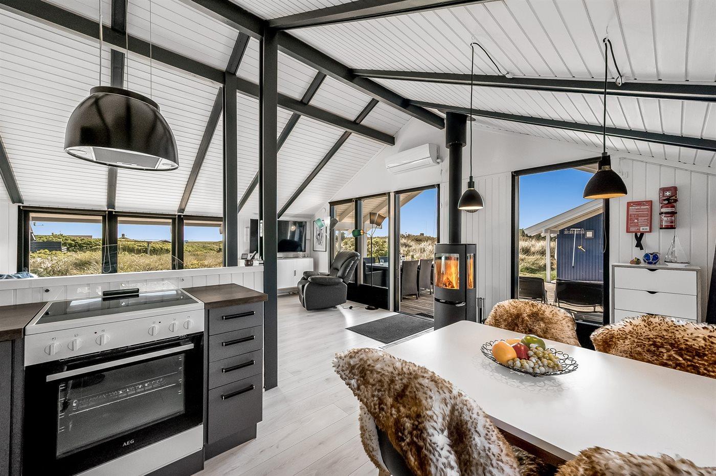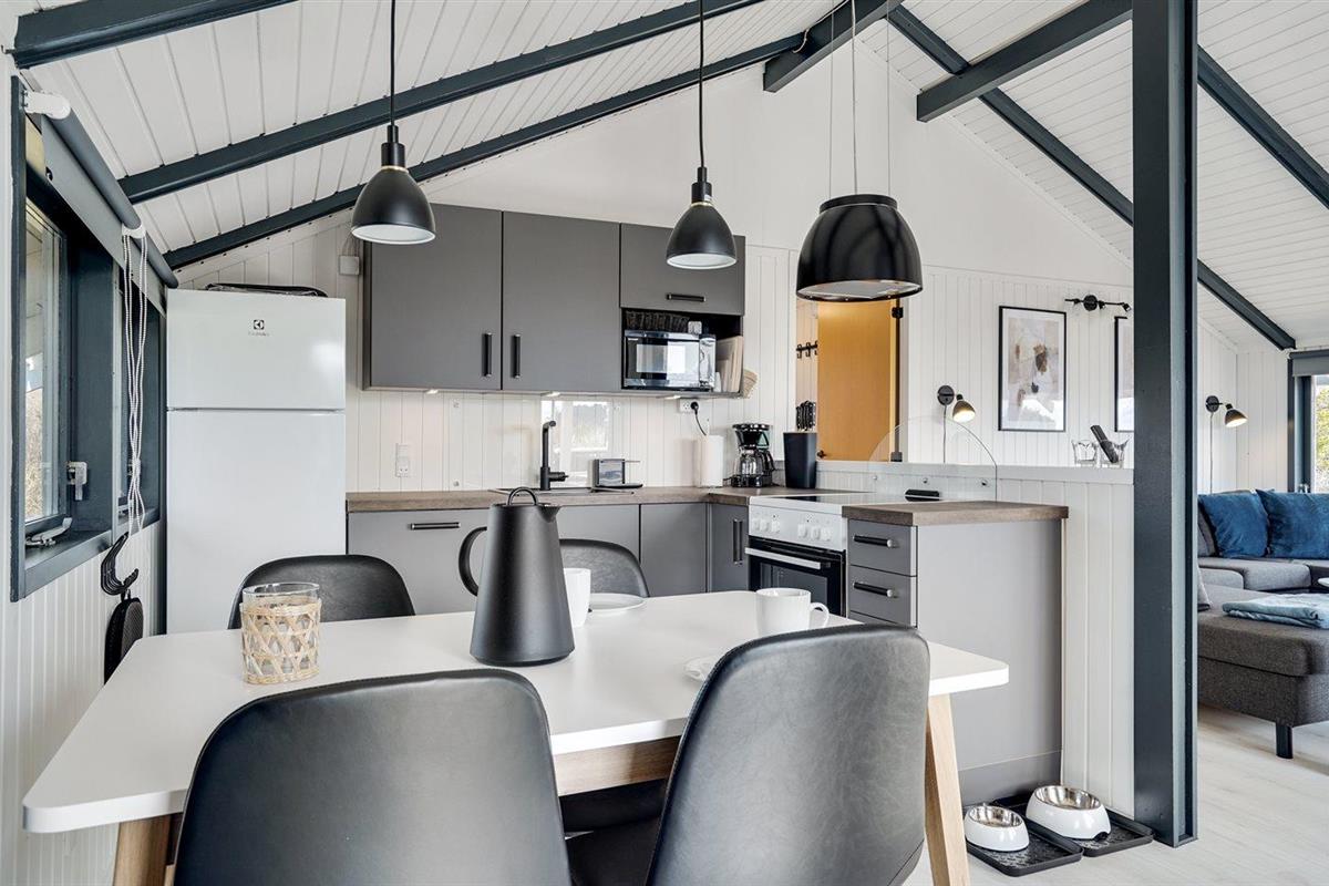 Modern vakantiehuis in Årgab, 250 m van zee, met hot tub en energiezuinige warmtepomp.