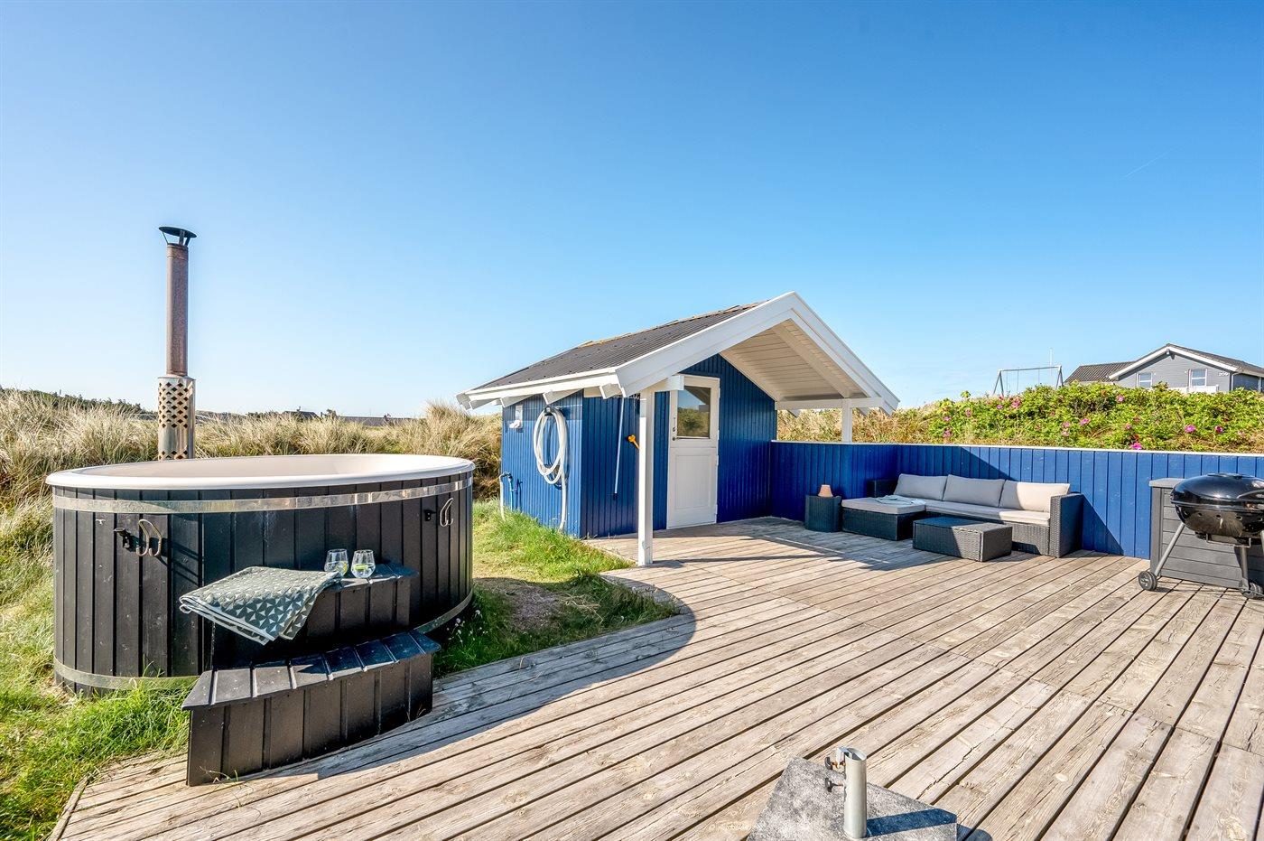 Het buiten hot tub biedt ontspanning aan 4 personen.