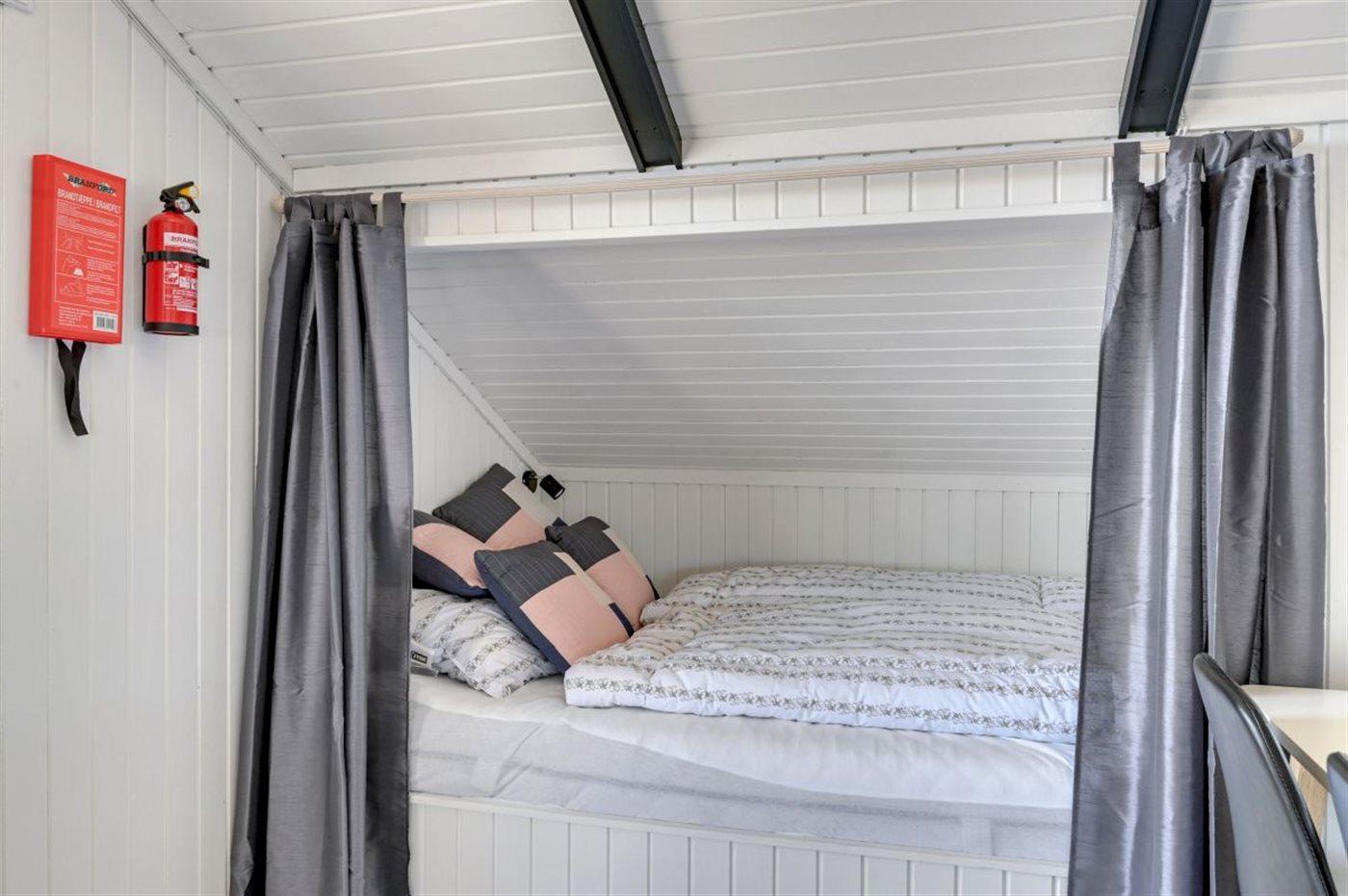 Er zijn in totaal 2 slaapkamers. De slaapplaatsen zijn als volgt verdeeld: 2 slaapplaatsen in tweepersoonsbed. 2 slaapplaatsen in stapelbed. 2 slaapplaatsen in alkoof. 2 van deze slaapplaatsen bevinden zich in de huiskamer. Verder is kinderbed ter beschikking.