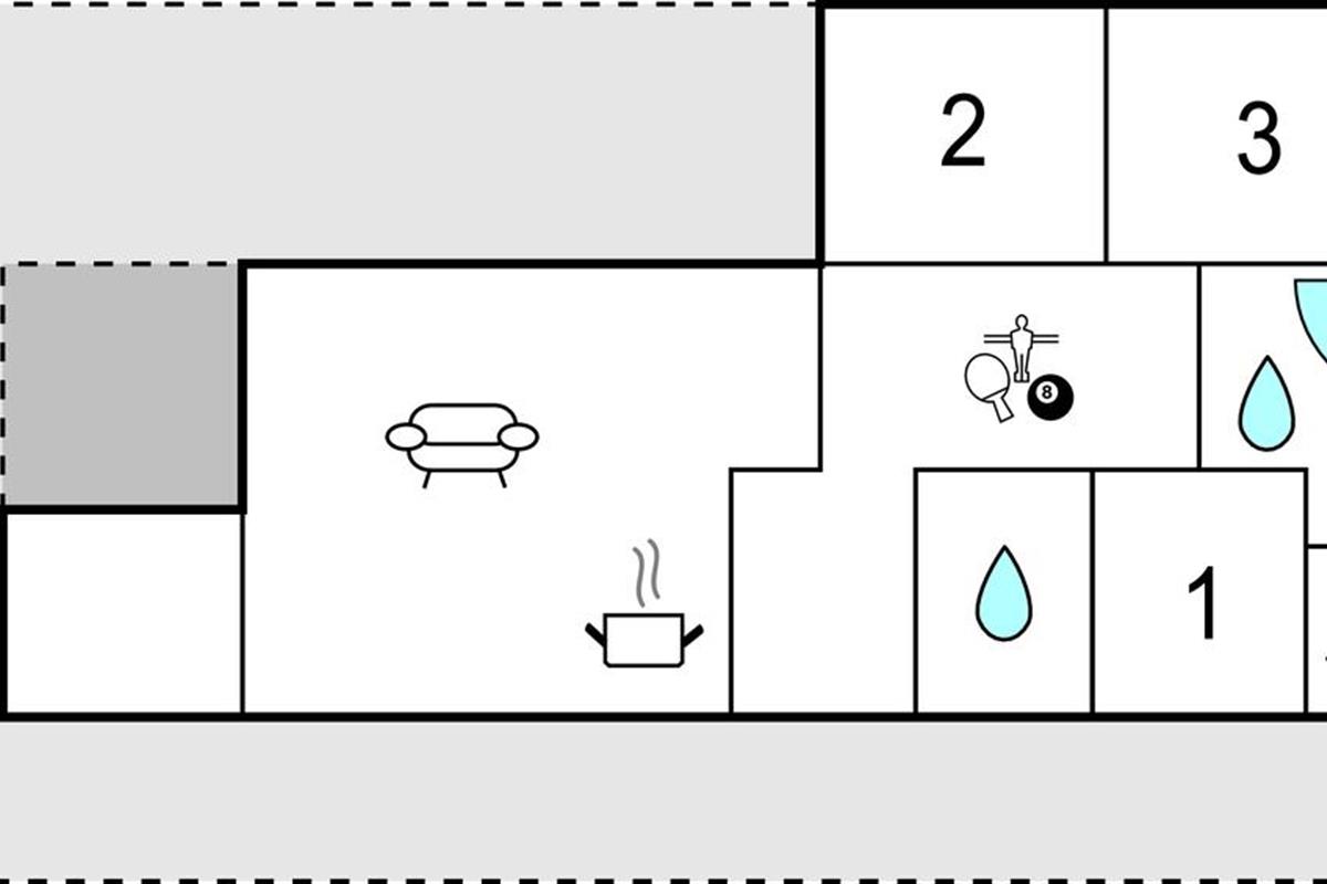 De 3 gezellige slaapkamers zijn uitgerust met 2 tweepersoonsbedden en 2 eenpersoonsbedden - ideaal voor een gezin. Een hoogtepunt van het huis is de activiteitenruimte, waar u vele gezellige avonden samen kunt doorbrengen. De whirlpool en de sauna nodigen uit tot fijne wellnessmomenten.