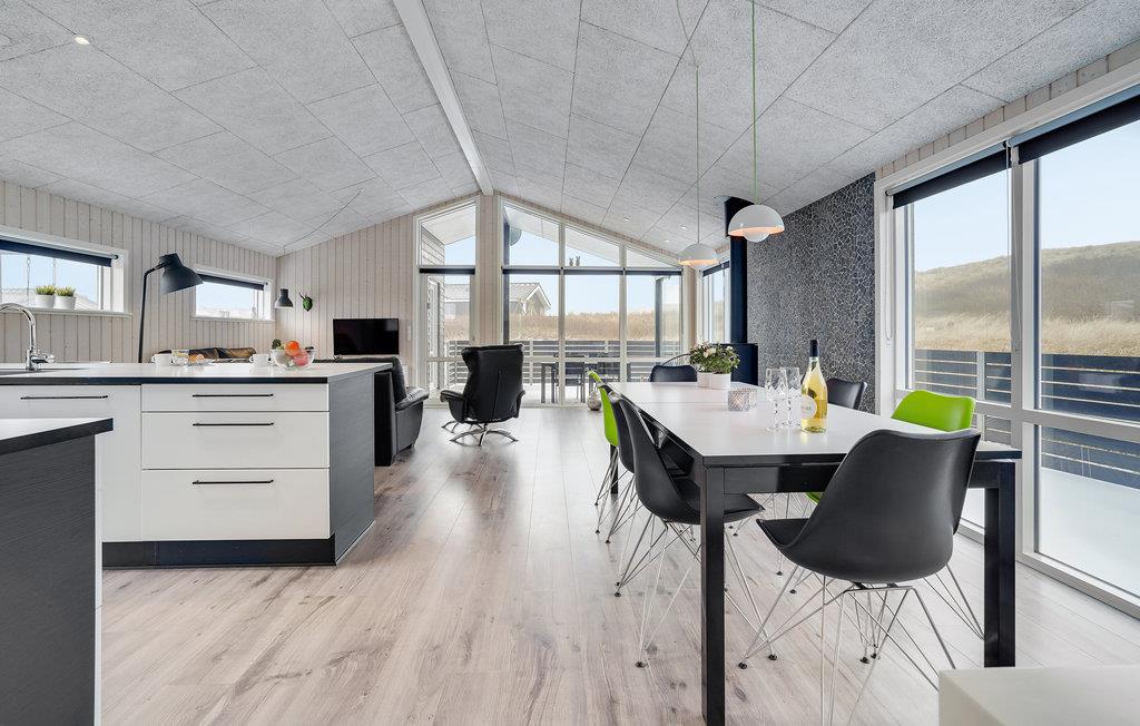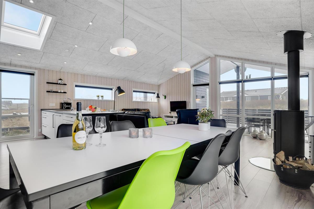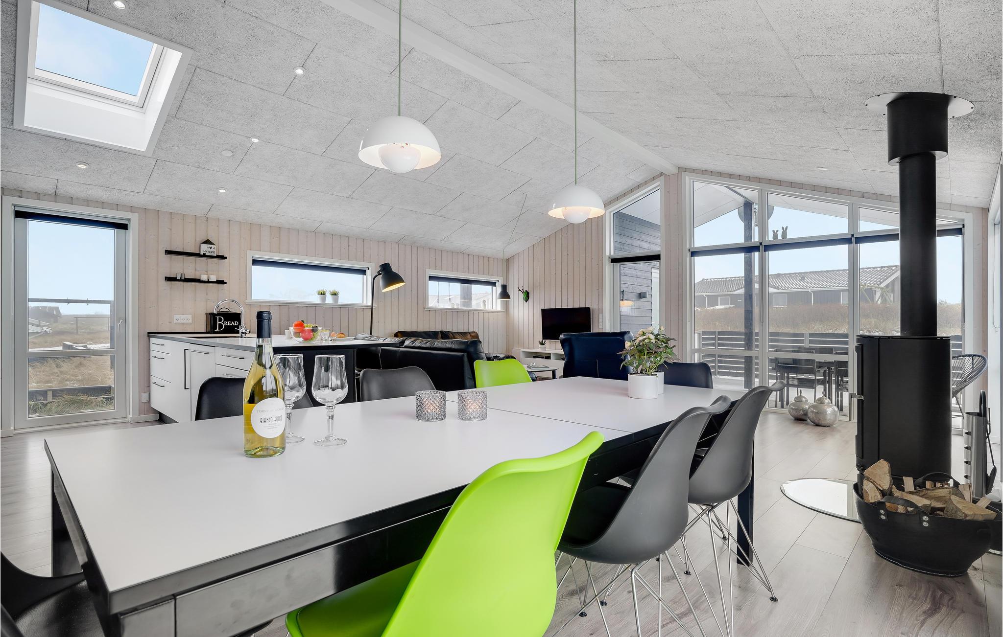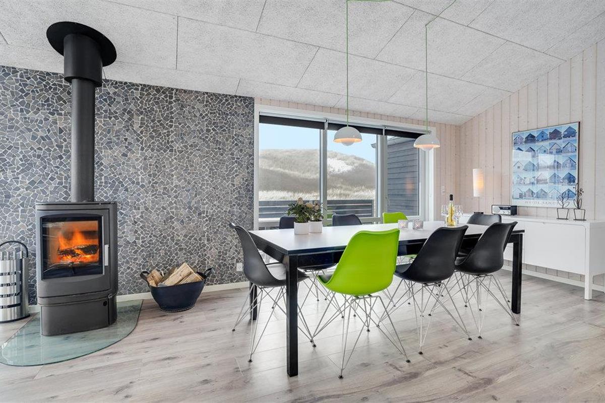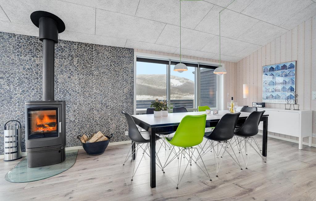 Dit uitnodigende vakantiehuis is ideaal voor een familievakantie aan de prachtige Noordzee in Denemarken en laat niets te wensen over. Het huis is idyllisch gelegen op een uitzichtvrij perceel in de duinen, op slechts 50 m van het zandstrand en de zee. Het hart van het huis is de prachtige woonkamer met open keuken en eethoek. Ontspan hier voor de open haard na een lange wandeling aan de Noordzee of bereid samen heerlijke maaltijden in de goed uitgeruste keuken.