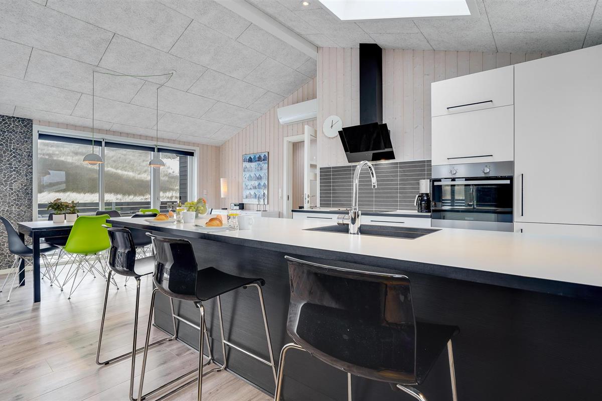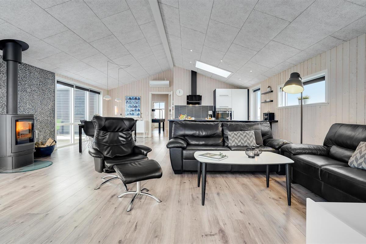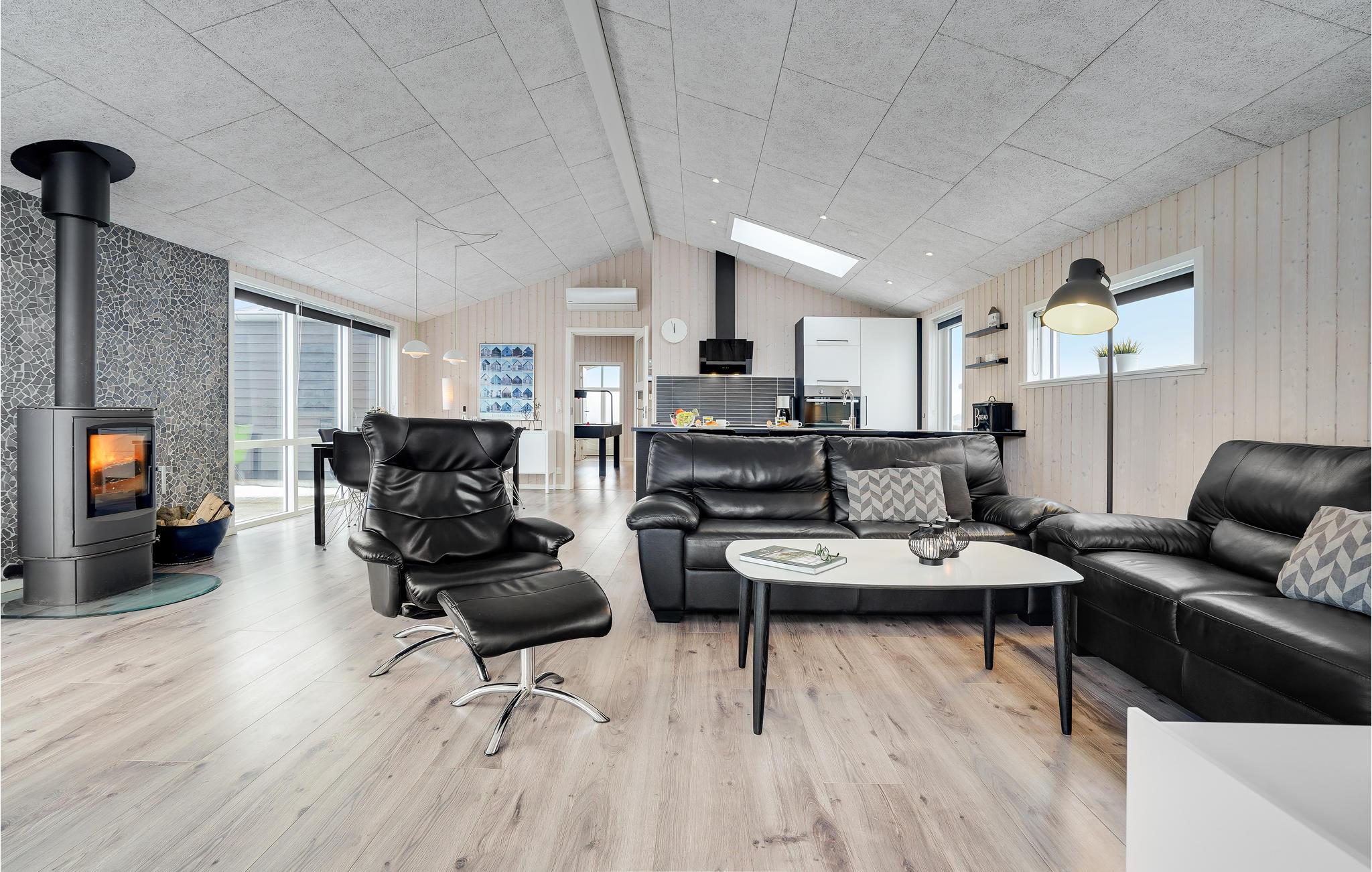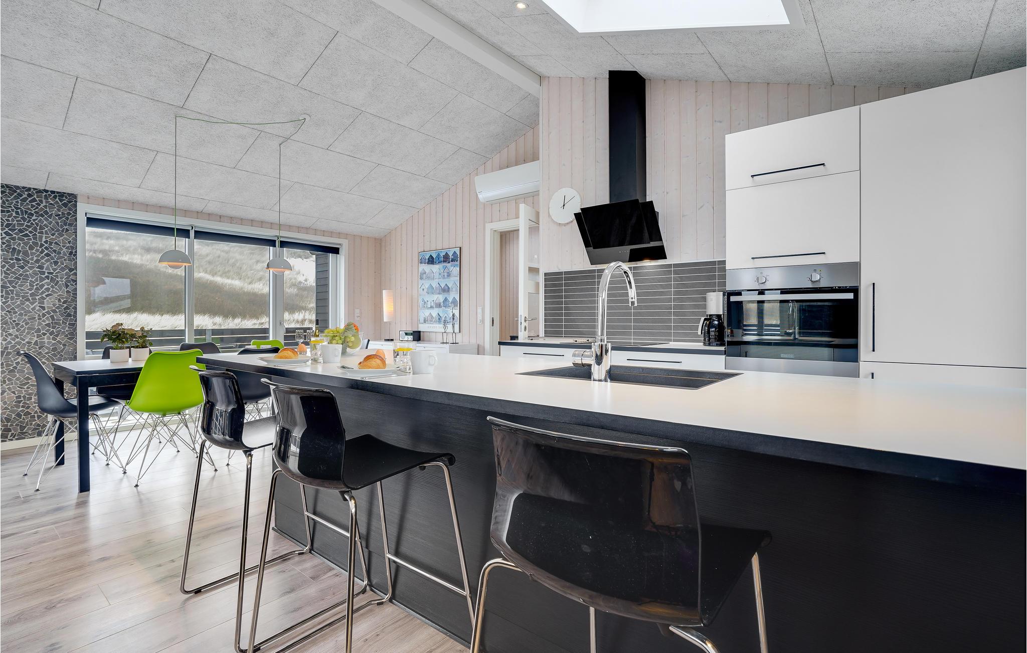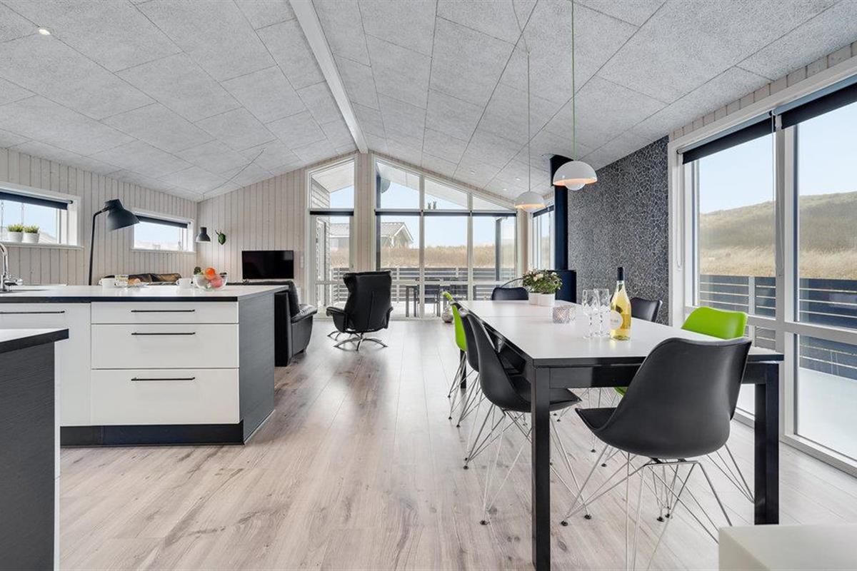 Dit uitnodigende vakantiehuis is ideaal voor een familievakantie aan de prachtige Noordzee in Denemarken en laat niets te wensen over. Het huis is idyllisch gelegen op een uitzichtvrij perceel in de duinen, op slechts 50 m van het zandstrand en de zee. Het hart van het huis is de prachtige woonkamer met open keuken en eethoek. Ontspan hier voor de open haard na een lange wandeling aan de Noordzee of bereid samen heerlijke maaltijden in de goed uitgeruste keuken.