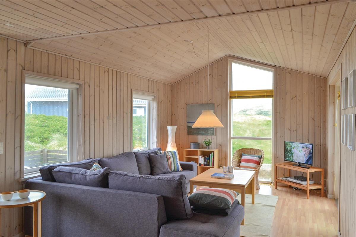 Een zeer mooi en gezellig vakantiehuis op een groot natuurgrondstuk in Årgab, tussen Ringkøbing Fjord en de Noordzee. Slechts 100 m van de Noordzee. De leefruimte is mooi en goed ingericht. Als u de vissershaven in Hvide Sande bezoekt, kunt u kiezen uit verschillende winkels en restaurants. Vissen is zeker succesvol vanaf de sluis. In Hvide Sande is het Fiskeriets Hus, een aquarium met een museum.