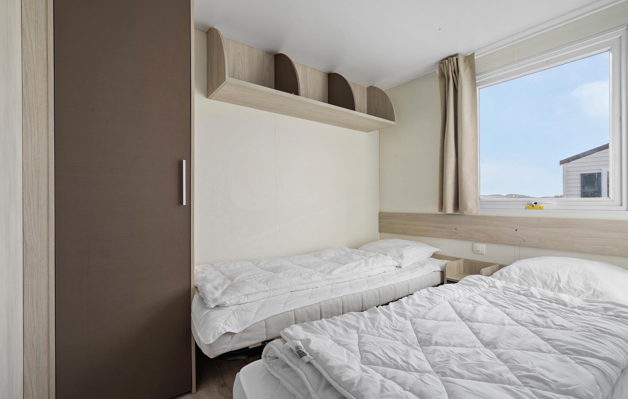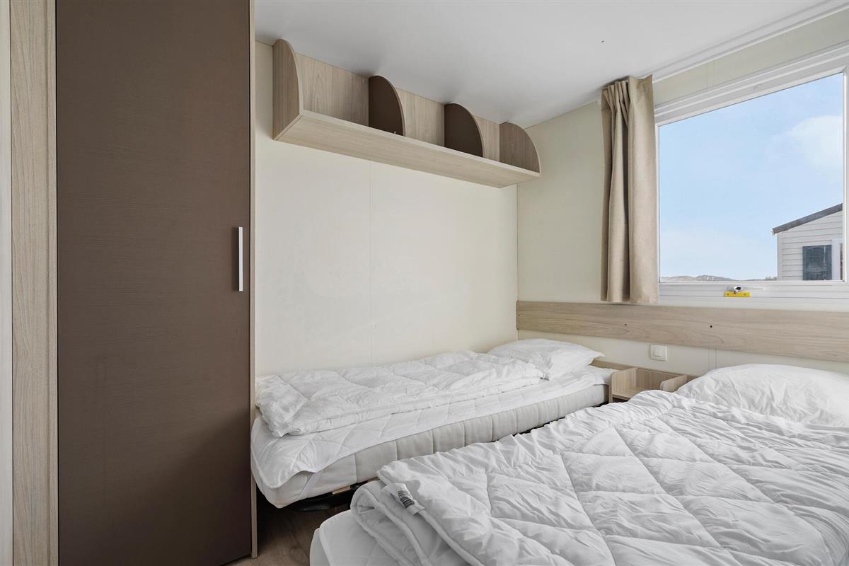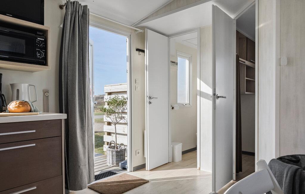Hier hoor je de zee overal op het terrein ruisen, want deze huisjes worden slechts door de duinen gescheiden van de woeste golven, waardoor je een ongelooflijk uitzicht hebt over de witte zandstranden, de Noordzee aan de ene kant en het Ringkøbing Fjord aan de andere kant. Er zijn hier de hele dag veel gratis activiteiten, ook voor kinderen, die blijvende vriendschappen kunnen sluiten die de hele vakantie meegaan. Op de goed uitgeruste camping kunt u ook uitstekend surfen, fietsen en zwemmen in zee. U kunt ook gratis gebruik maken van het prachtige 1.000 m² grote avonturenbad, dat zich in één gebouw bevindt en dus in alle weersomstandigheden een glijbaan, sauna, stoombad en whirlpool biedt, dus vergeet uw zwemkleding niet.