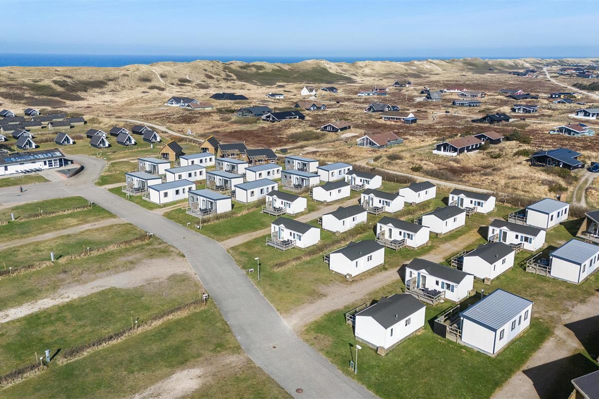 Hier hoor je de zee overal op het terrein ruisen, want deze huisjes worden slechts door de duinen gescheiden van de woeste golven, waardoor je een ongelooflijk uitzicht hebt over de witte zandstranden, de Noordzee aan de ene kant en het Ringkøbing Fjord aan de andere kant. Er zijn hier de hele dag veel gratis activiteiten, ook voor kinderen, die blijvende vriendschappen kunnen sluiten die de hele vakantie meegaan. Op de goed uitgeruste camping kunt u ook uitstekend surfen, fietsen en zwemmen in zee. U kunt ook gratis gebruik maken van het prachtige 1.000 m² grote avonturenbad, dat zich in één gebouw bevindt en dus in alle weersomstandigheden een glijbaan, sauna, stoombad en whirlpool biedt, dus vergeet uw zwemkleding niet.