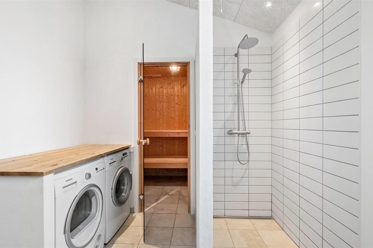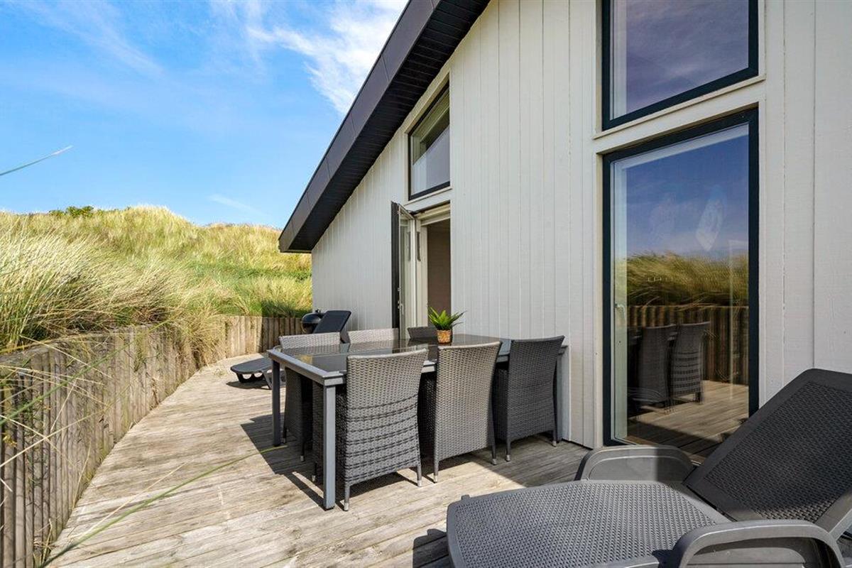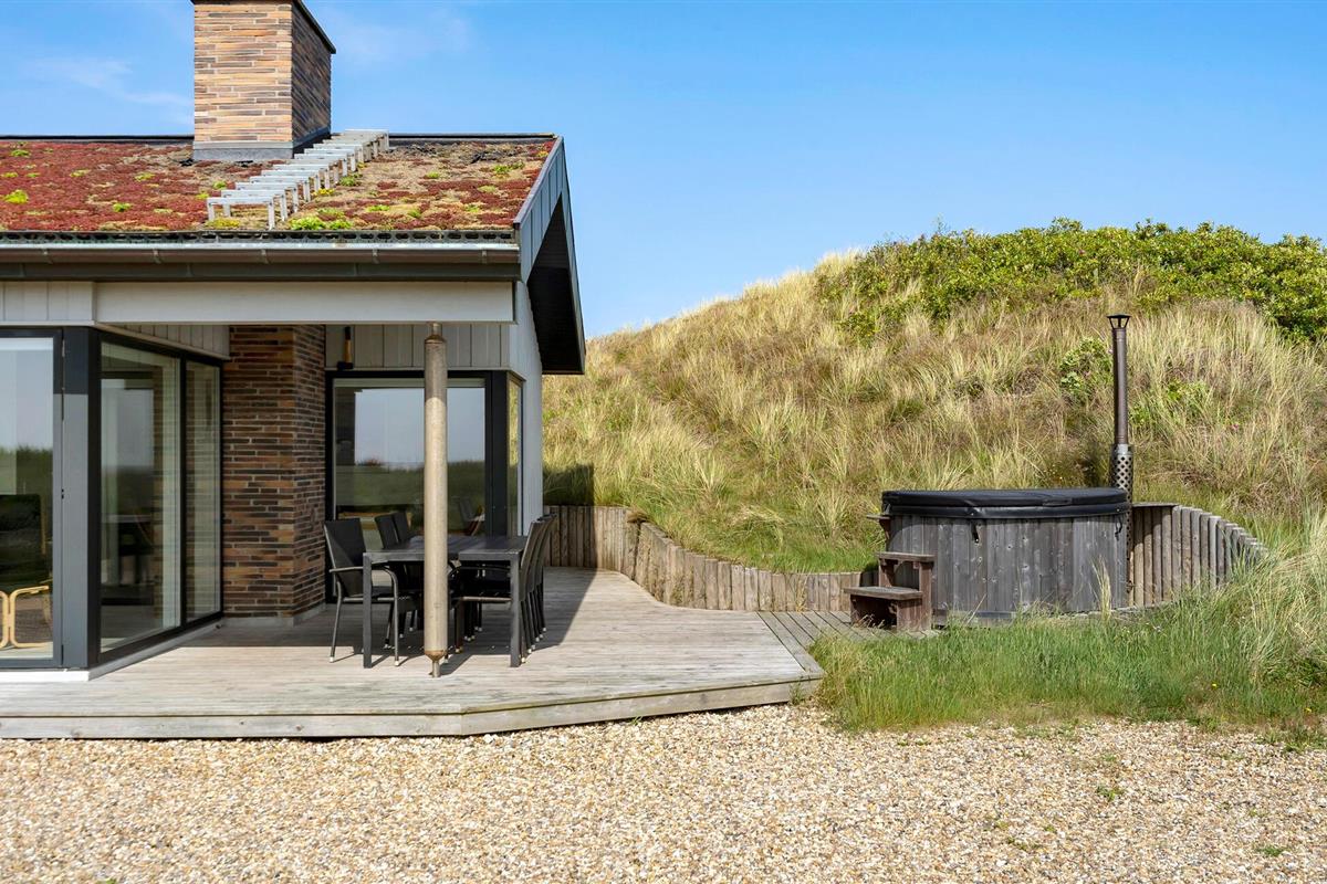 Breng tijd door op het houten terras met tuinmeubilair en ligstoelen. Neem plaats voor een al fresco ontbijt of ontspan in het houten Finse bad, dat harmonieus opgaat in het duinlandschap.