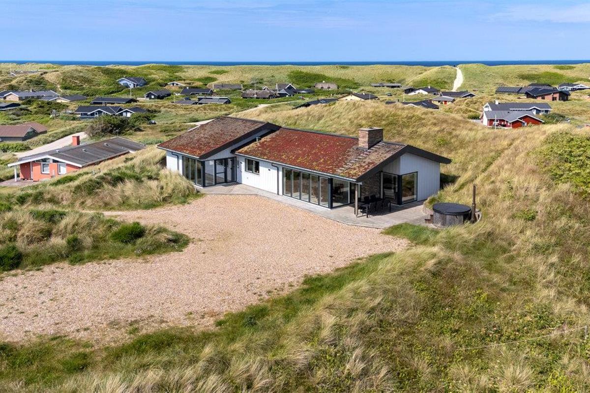 Ervaar rust en comfort in dit modern vakantiehuis met uitzicht op de duinen en de Noordzee in Årgab, Denemarken.