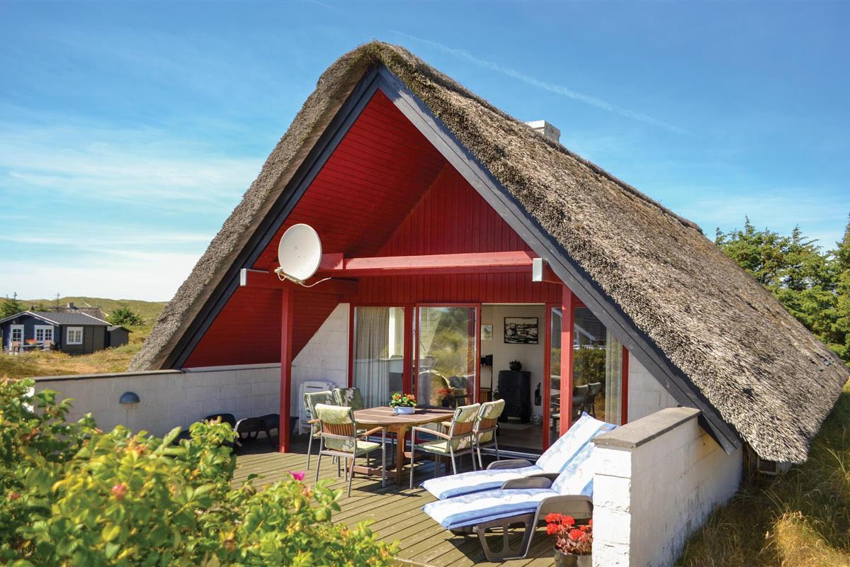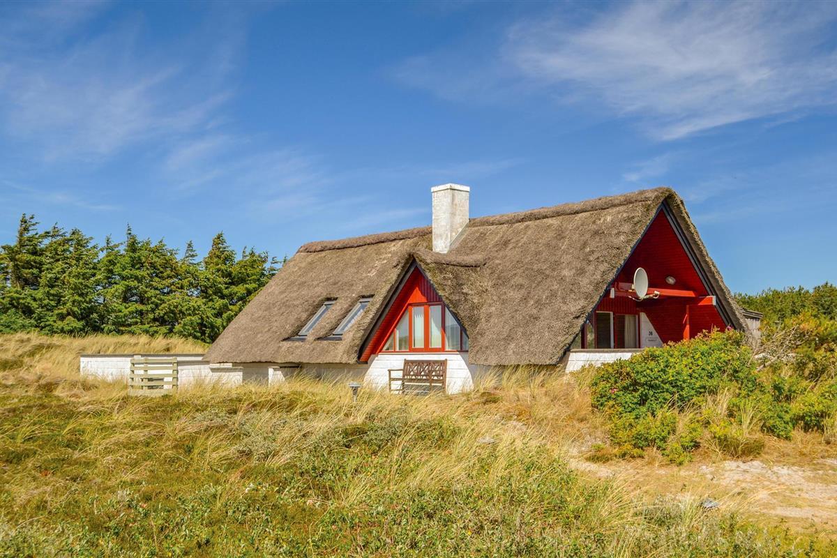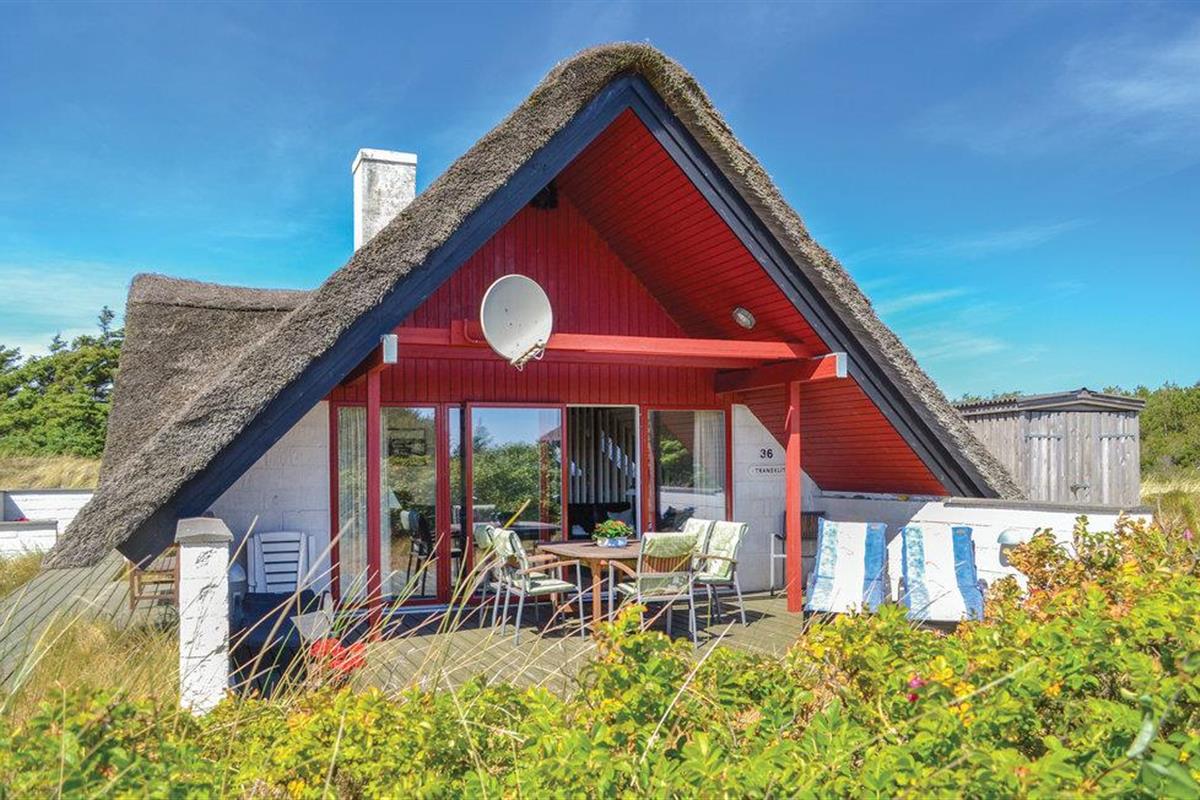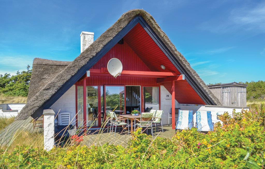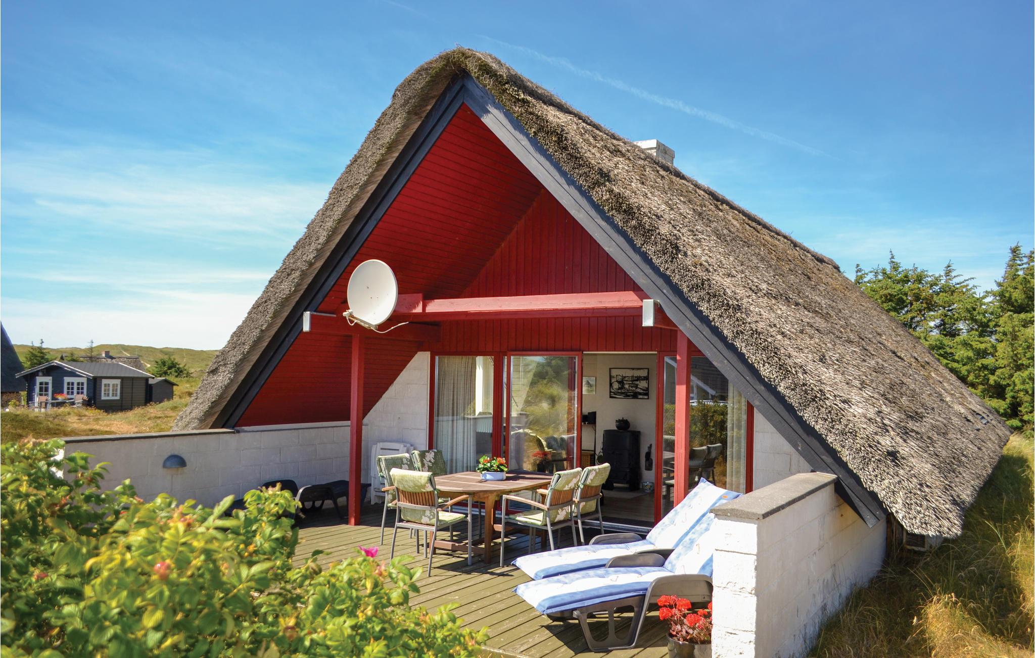 Authentiek rietgedekt vakantiehuis in Årgab met uitzicht op duinen, open haard en terras, vlak bij de Noordzee en surfcentrum.