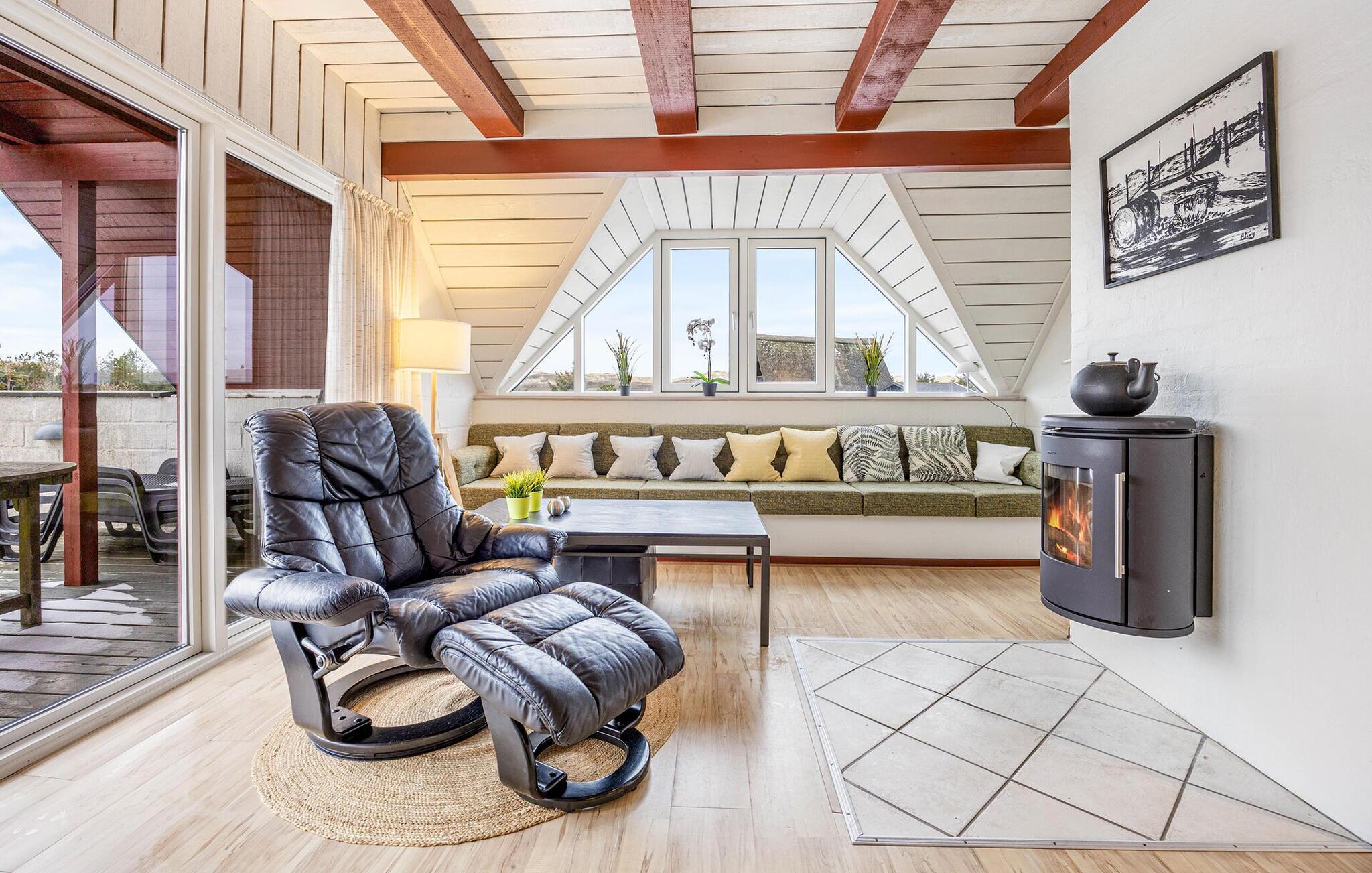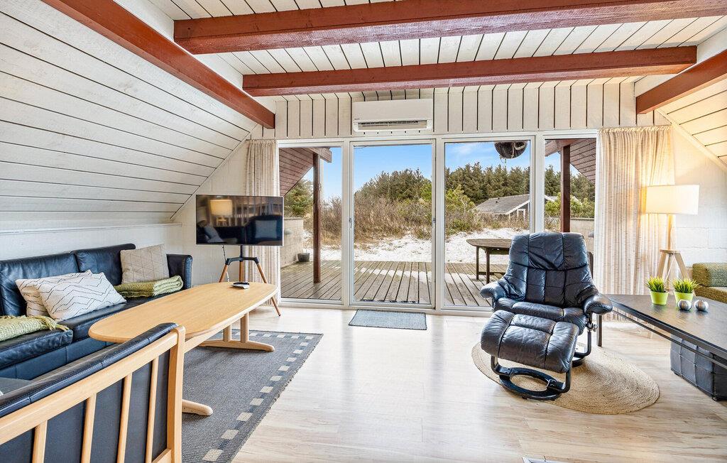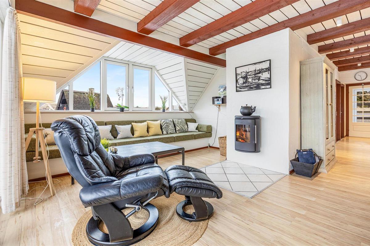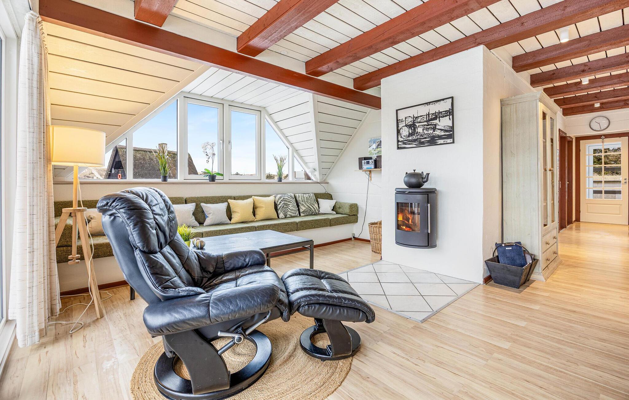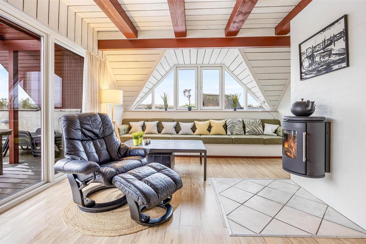 Authentiek rietgedekt vakantiehuis in Årgab met uitzicht op duinen, open haard en terras, vlak bij de Noordzee en surfcentrum.