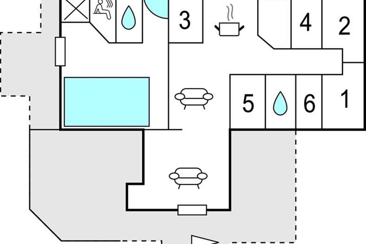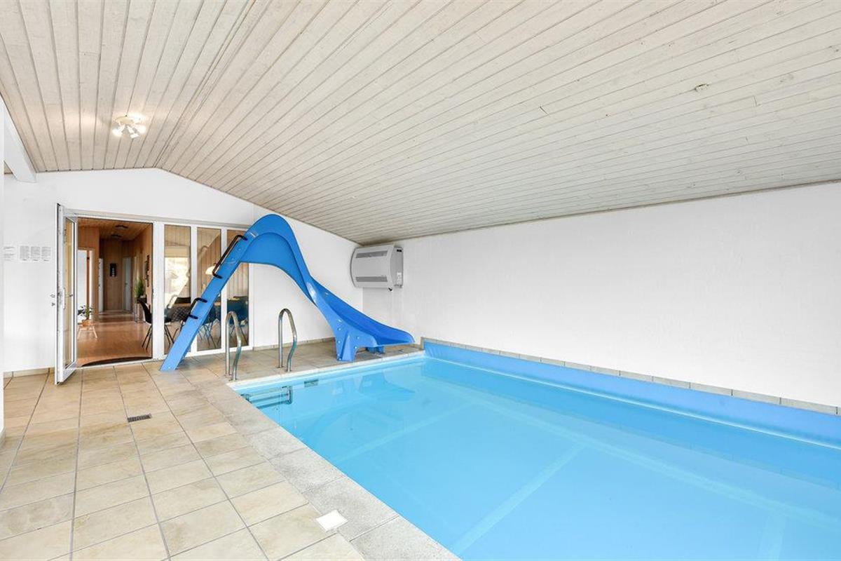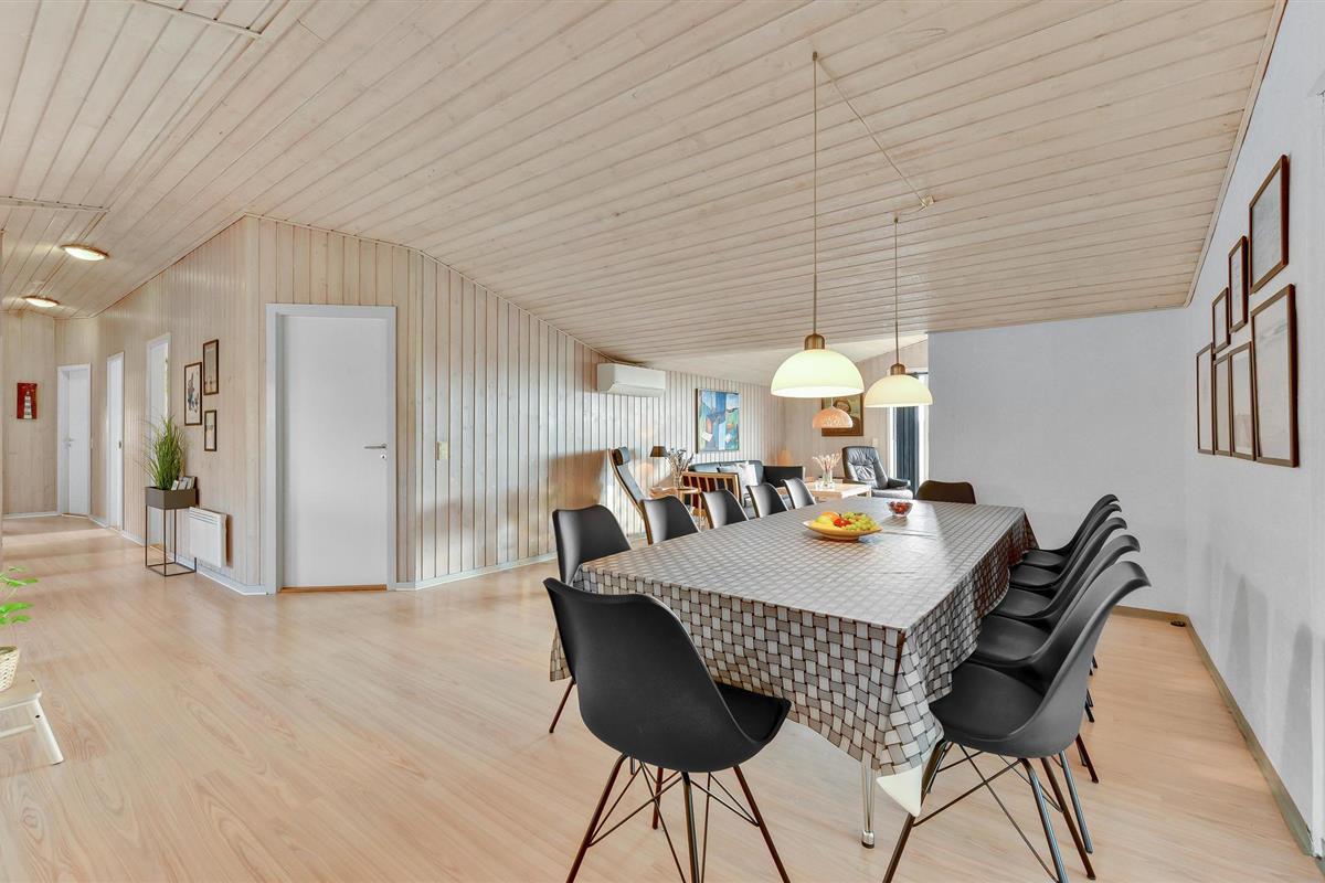Het huis is goed onderhouden en biedt ruimte voor het grote gezin tot 12 personen. Vanuit de eetkamer heeft u zicht op het zwembad met glijbaan en tegenstroomsysteem. Vanuit de woning kunt u in de verte het fjord zien liggen. De gezellige alkoof in de woonkamer nodigt u uit om te ontspannen met een goed boek en na een lange wandeling kunt u opwarmen in de sauna van het huis.