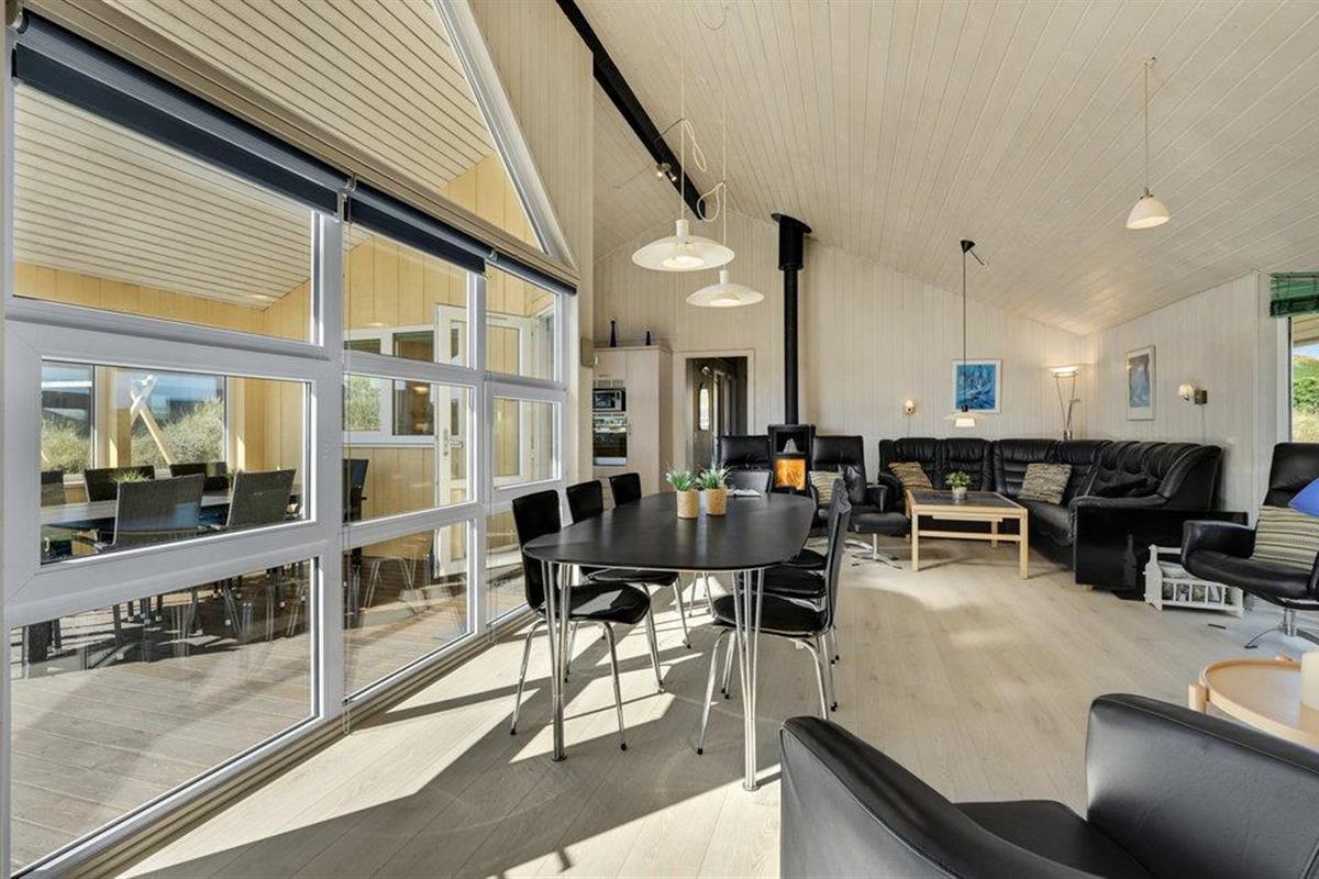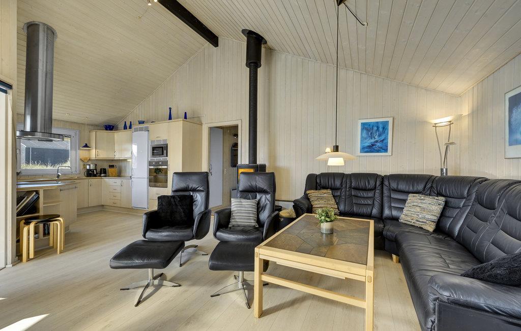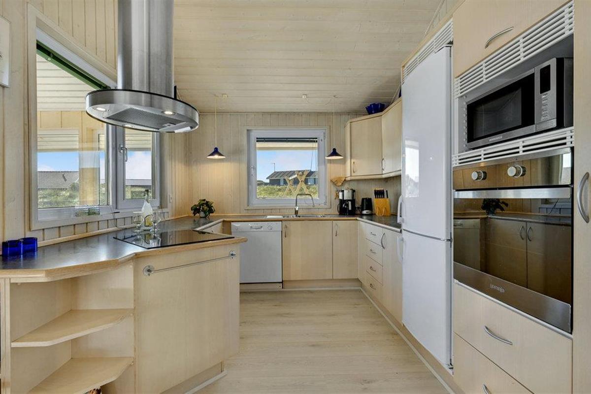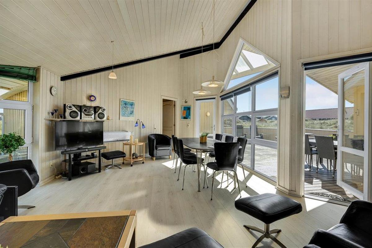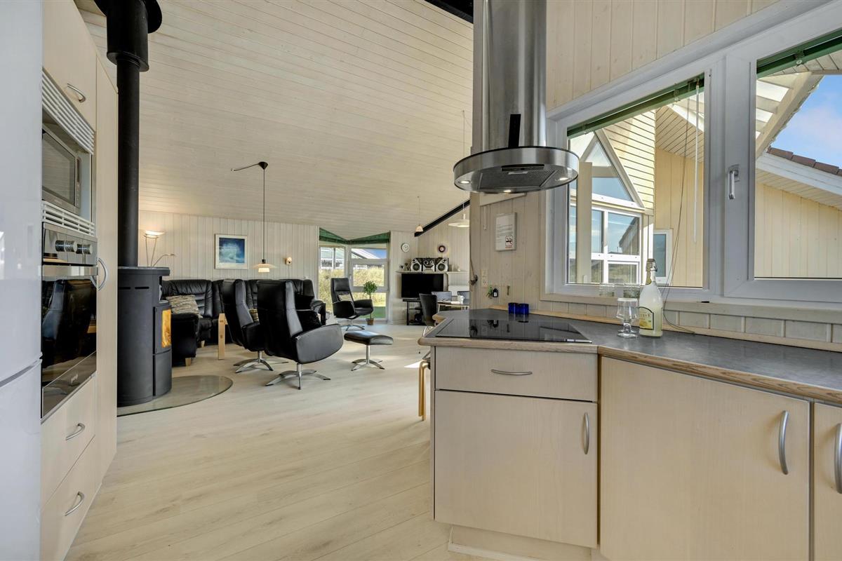 Dit aantrekkelijke houten huis is uiterst sfeervol ingericht en ideaal voor twee gezinnen. Het is verdeeld in twee delen, elk met een ingang, twee slaapkamers en een complete badkamer. In het midden van het huis bevindt zich de woonkamer en de keuken. Als u de slaapzolder meerekent, is het huis geschikt voor 10 personen. Alles is tot in de puntjes doordacht en de goed onderhouden uitrusting omvat bijvoorbeeld een 4-persoons whirlpool en een sauna. In de keuken dragen veel moderne huishoudelijke apparaten bij aan een ontspannen vakantie. Het huis ligt op een natuurgrondstuk niet ver van de Noordzee, waar u in elk seizoen prachtige wandelingen kunt maken. Slechts een paar honderd meter verderop is een geweldig surfgebied. Veel Deense zenders op de TV.