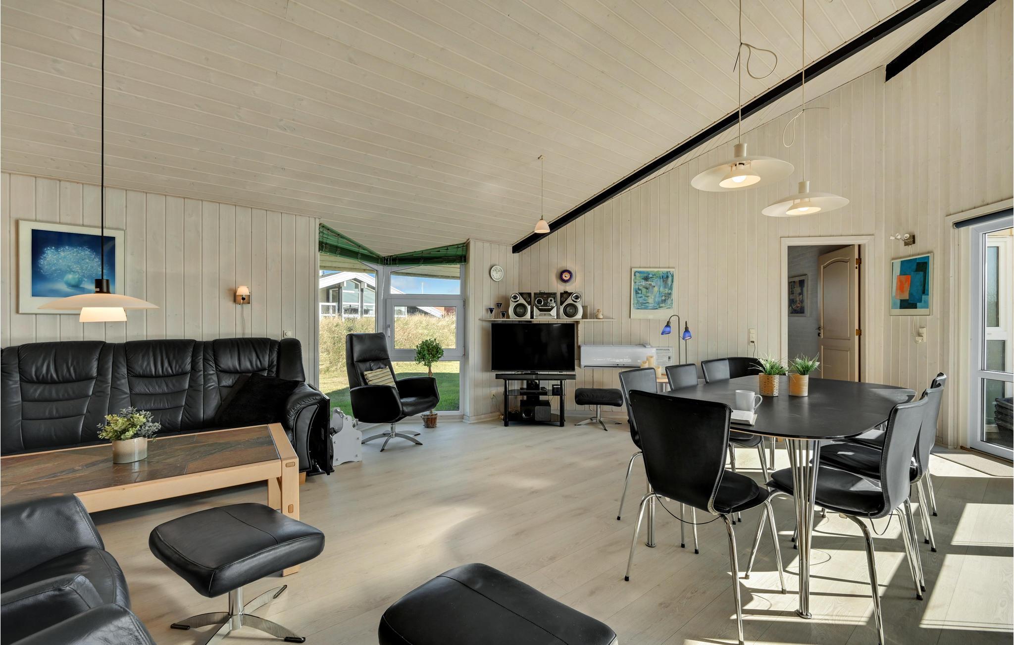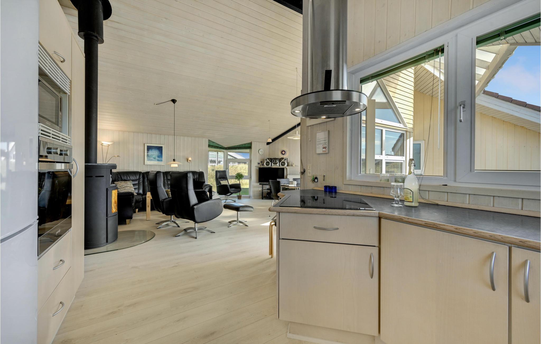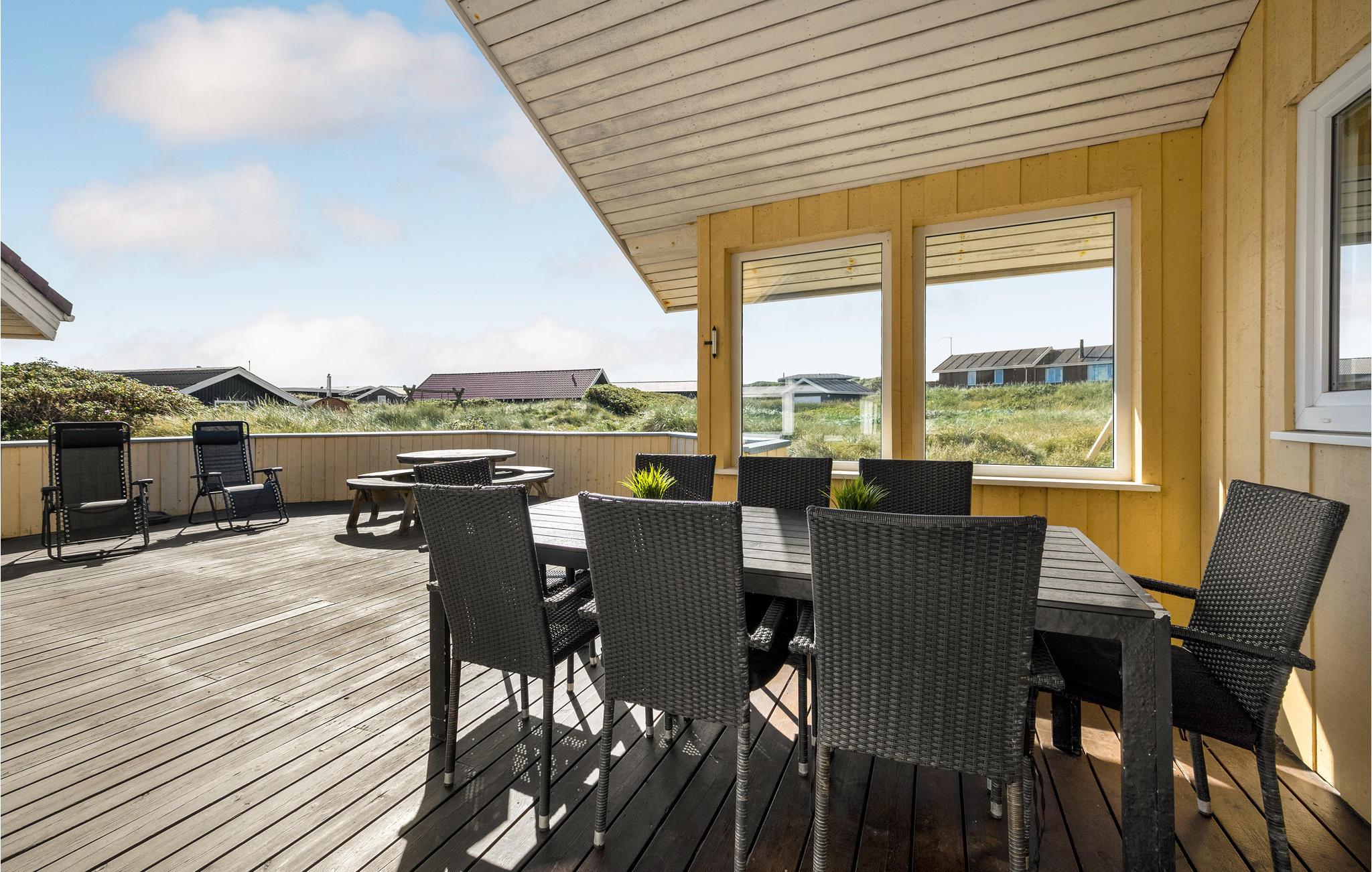 Dit aantrekkelijke houten huis is uiterst sfeervol ingericht en ideaal voor twee gezinnen. Het is verdeeld in twee delen, elk met een ingang, twee slaapkamers en een complete badkamer. In het midden van het huis bevindt zich de woonkamer en de keuken. Als u de slaapzolder meerekent, is het huis geschikt voor 10 personen. Alles is tot in de puntjes doordacht en de goed onderhouden uitrusting omvat bijvoorbeeld een 4-persoons whirlpool en een sauna. In de keuken dragen veel moderne huishoudelijke apparaten bij aan een ontspannen vakantie. Het huis ligt op een natuurgrondstuk niet ver van de Noordzee, waar u in elk seizoen prachtige wandelingen kunt maken. Slechts een paar honderd meter verderop is een geweldig surfgebied. Veel Deense zenders op de TV.