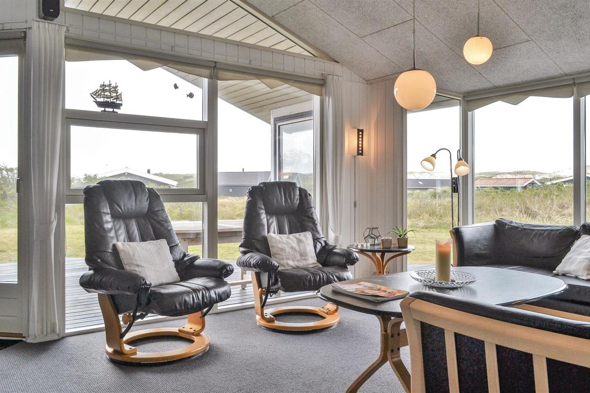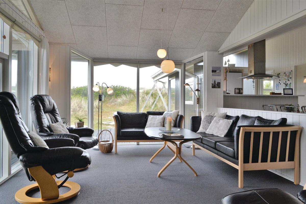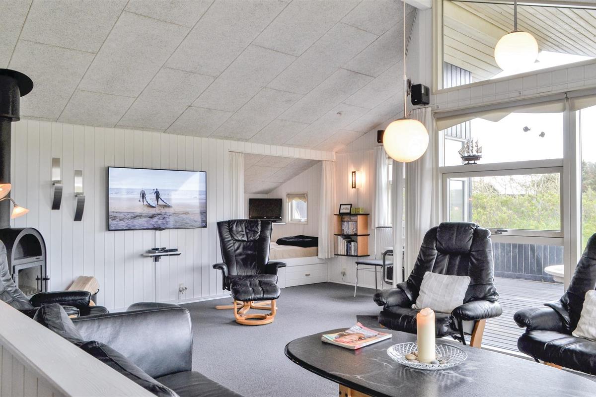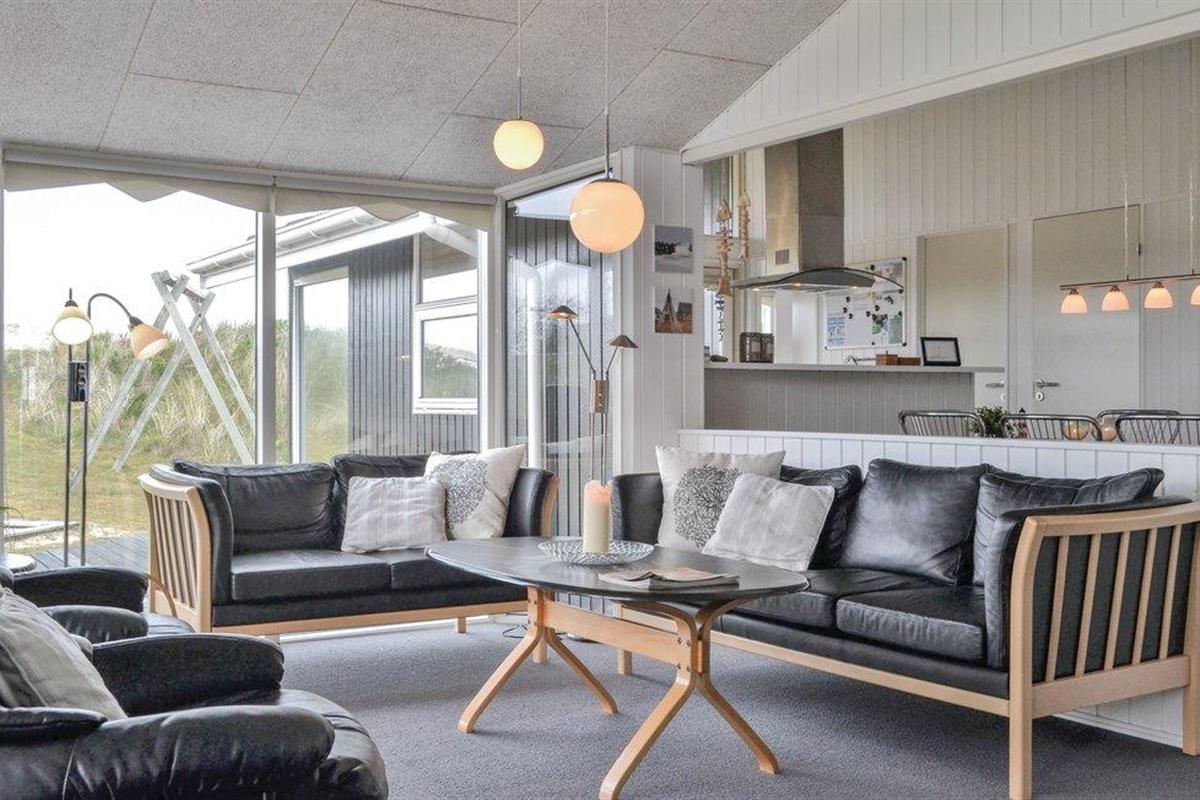 Dit prachtige, modern ingerichte houten luxe huis ligt op een licht heuvelachtig duingrondstuk. Vanuit de woonkamer heeft u een prachtig panoramisch uitzicht over het duingebied tot aan het water. Bij het huis is een terras van ca. 50 m² met tuinmeubelen en ligstoelen, dat op zonnige dagen gebruikt kan worden. Surfstrand - ook voor beginners - is slechts een paar kilometer verderop, put en take meer is een kilometer verderop, of wat dacht u van een wandeling langs het witte zandstrand van de Noordzee naar het vissersstadje Hvide Sande? Gratis toegang tot het Huis van de Visserij.