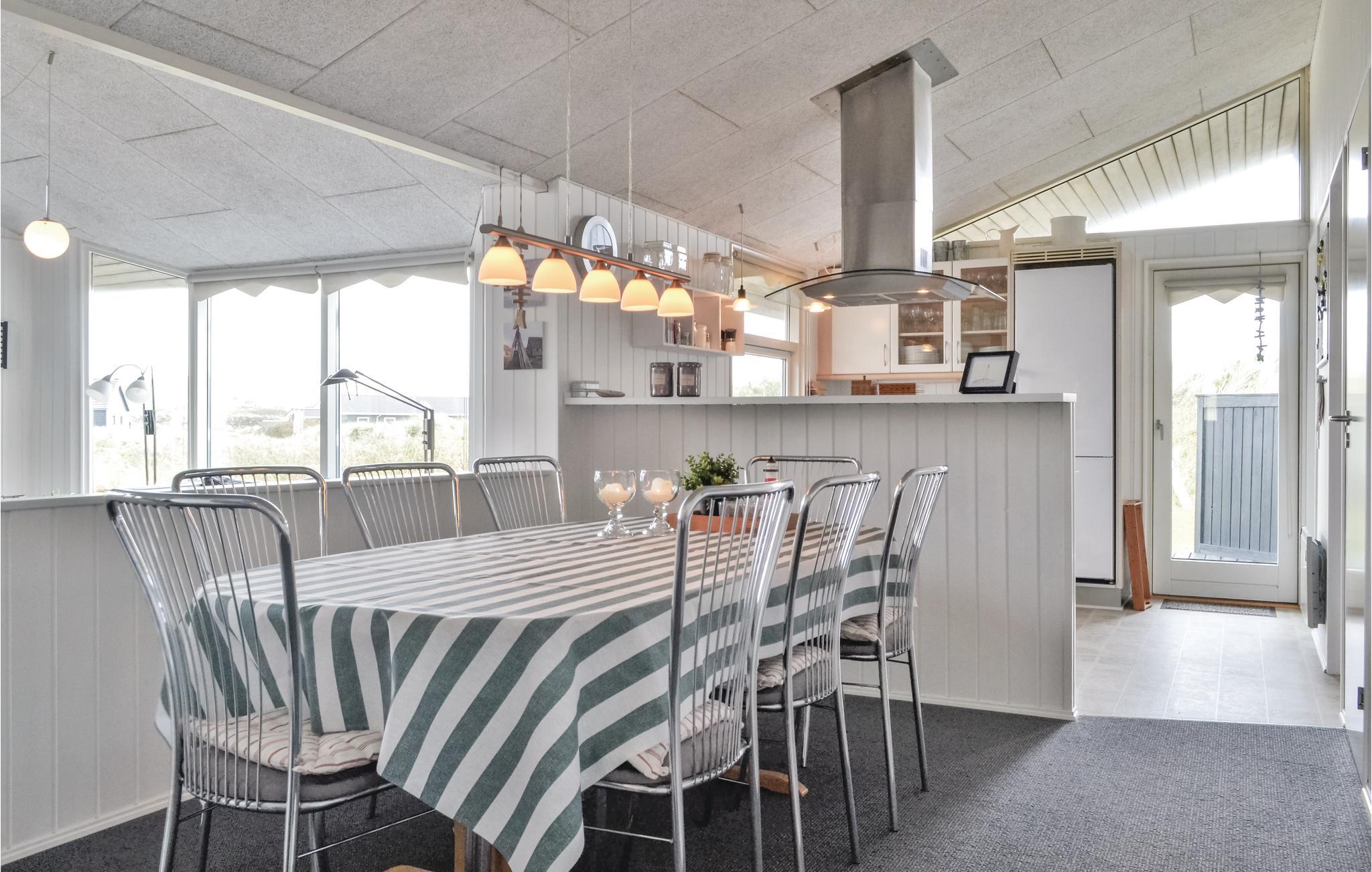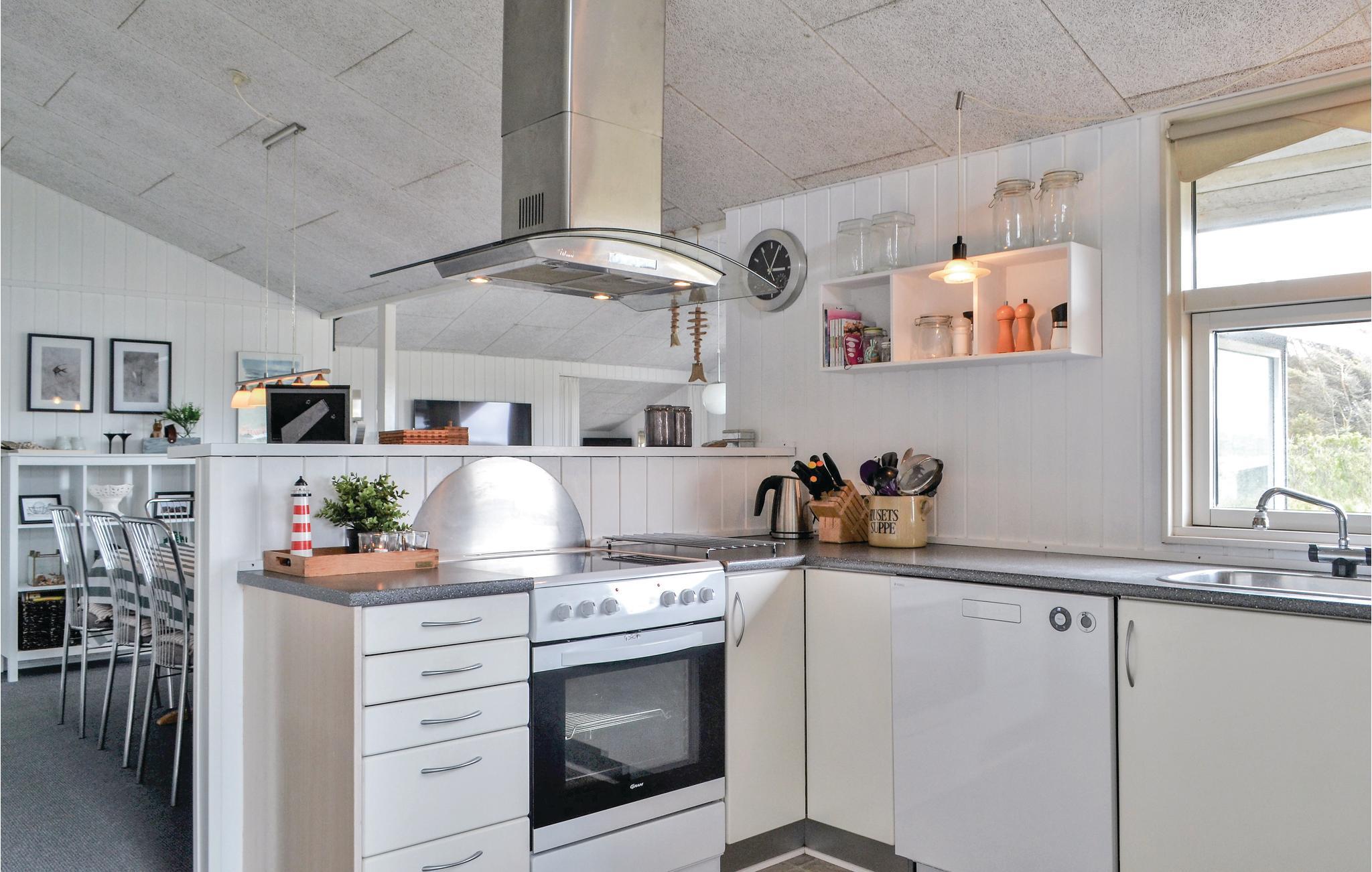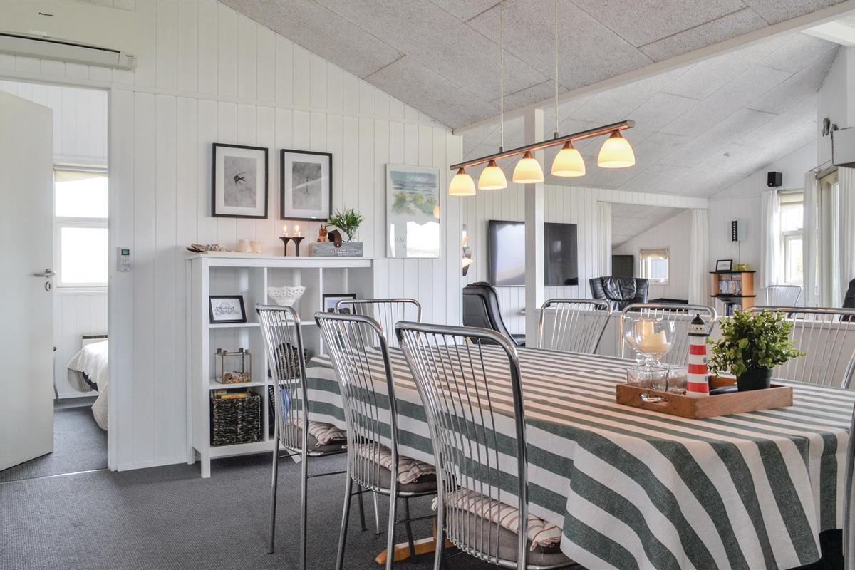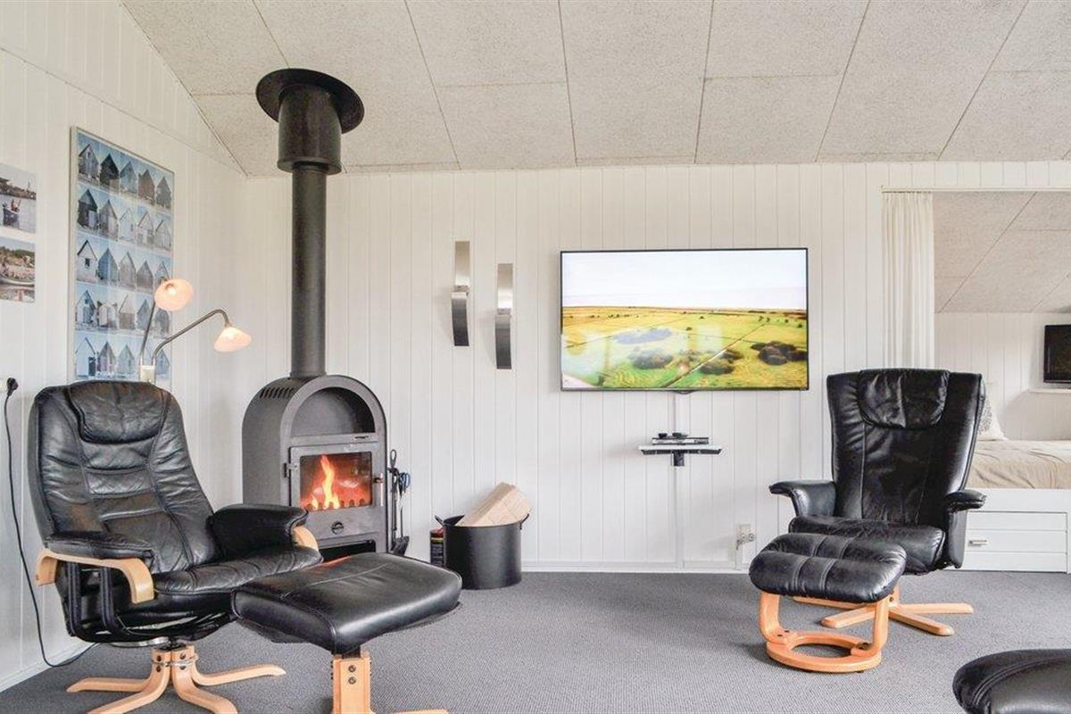 Dit prachtige, modern ingerichte houten luxe huis ligt op een licht heuvelachtig duingrondstuk. Vanuit de woonkamer heeft u een prachtig panoramisch uitzicht over het duingebied tot aan het water. Bij het huis is een terras van ca. 50 m² met tuinmeubelen en ligstoelen, dat op zonnige dagen gebruikt kan worden. Surfstrand - ook voor beginners - is slechts een paar kilometer verderop, put en take meer is een kilometer verderop, of wat dacht u van een wandeling langs het witte zandstrand van de Noordzee naar het vissersstadje Hvide Sande? Gratis toegang tot het Huis van de Visserij.