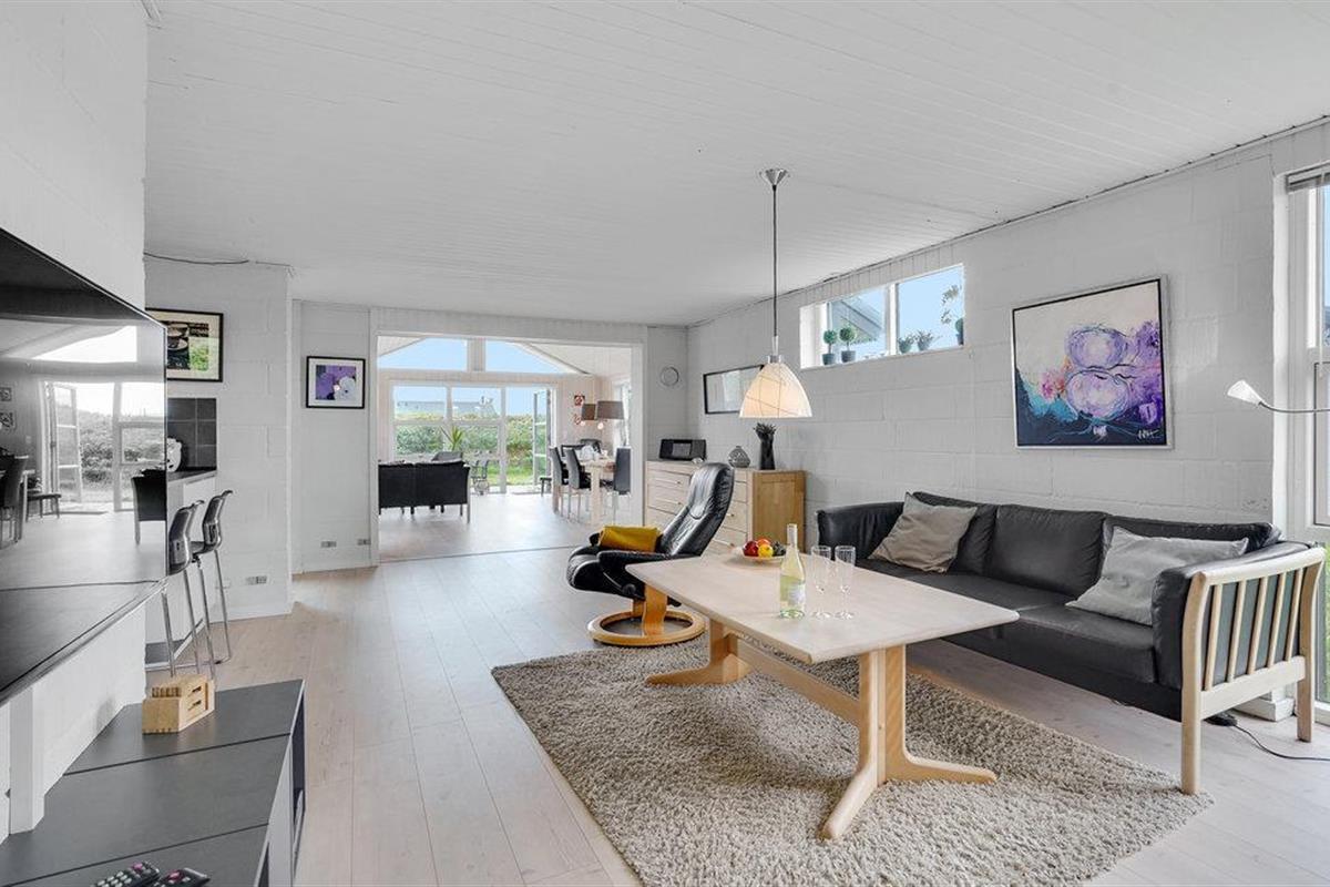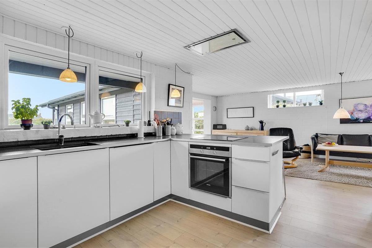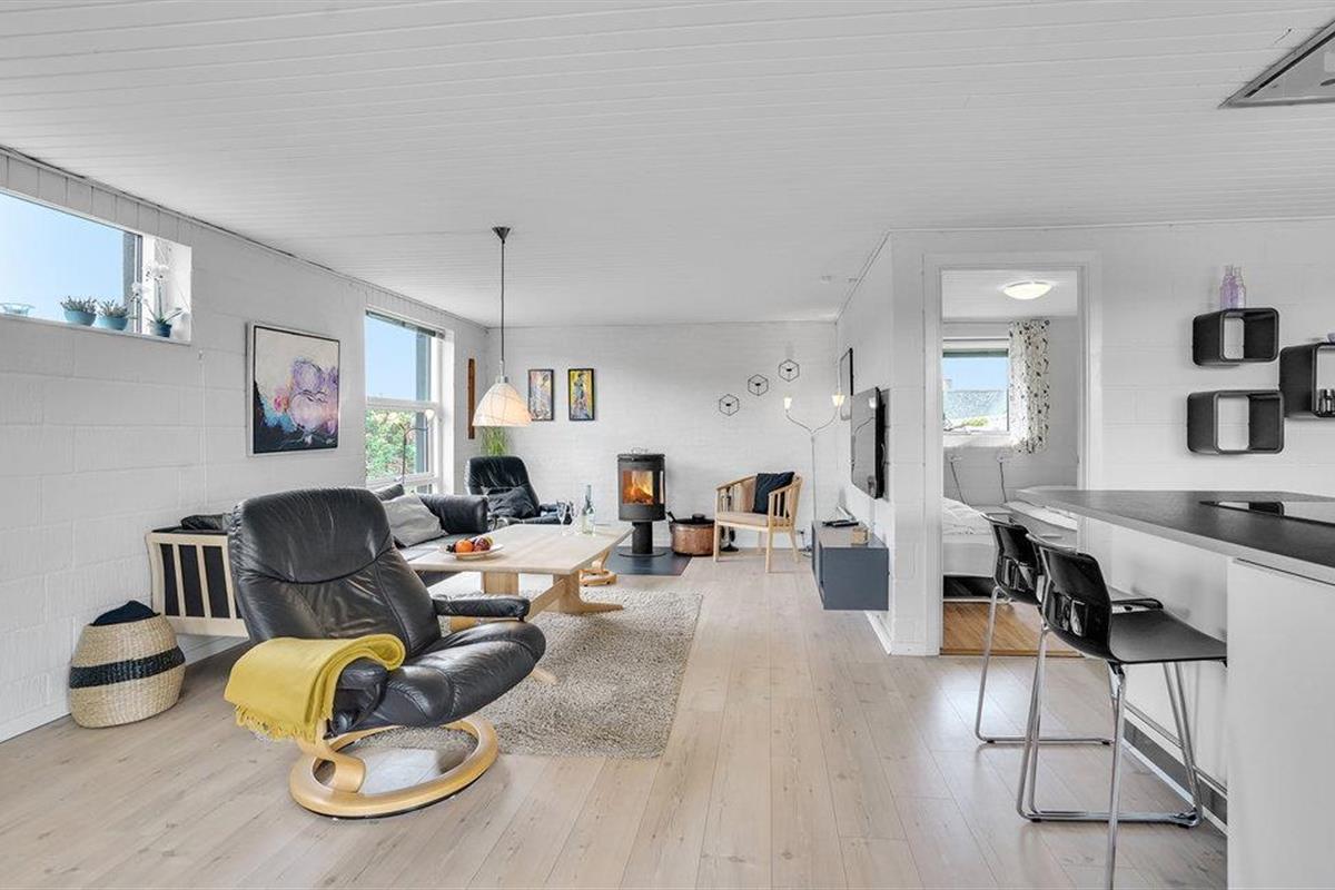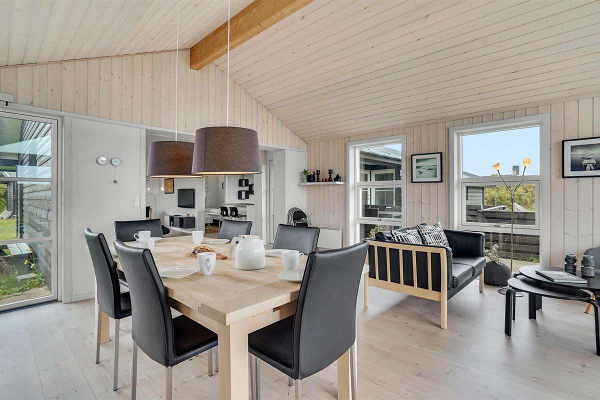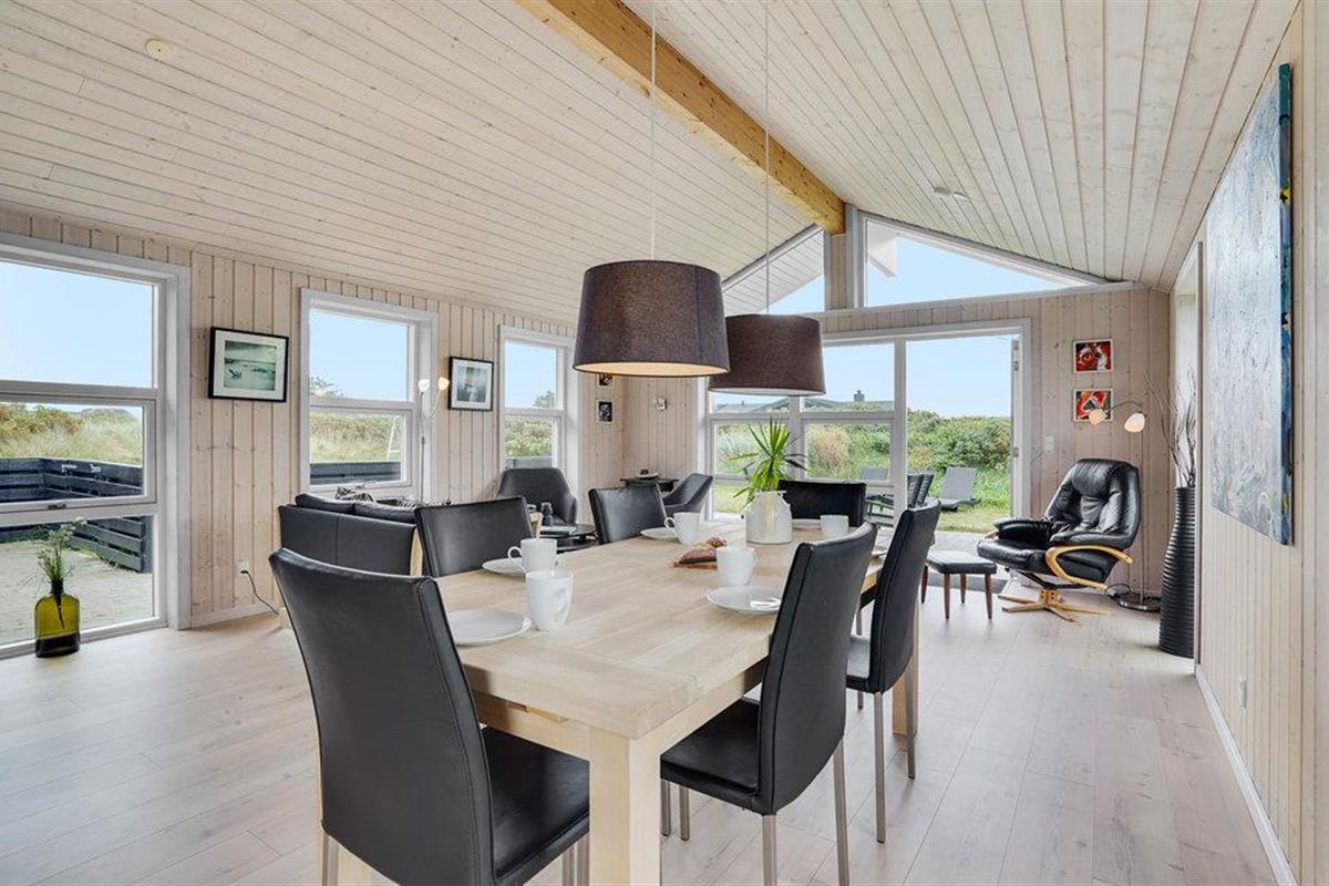 Je gezellige vakantiehuis bij het strand van Årgab ligt in een van de populairste gebieden op Holmsland Klit, op korte afstand van het vissersplaatsje Hvide Sande, Ringkøbing Fjord en de Noordzee met zijn hoge duinen, frisse golven en brede, witte zandstrand. De open en smaakvol ingerichte woonkamer weerspiegelt de geest van de vakantie: nabijheid en saamhorigheid. De vele ramen en het lichtgekleurde hout creëren een lichte en rustgevende sfeer.