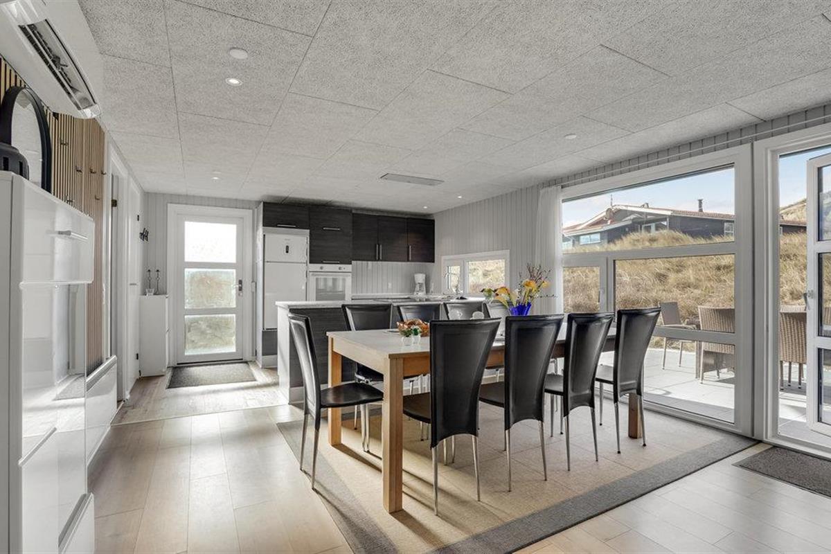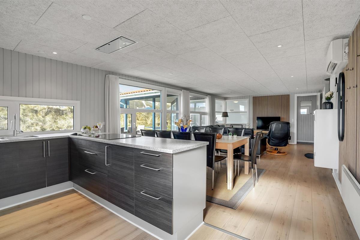 Dit goed uitgeruste vakantiehuis ligt op slechts 100 m van een van de beste badstranden aan de Noordzeekust. Hvide Sande en zijn vele attracties liggen op korte afstand van dit vakantiehuis. U woont op een duingrondstuk van 1300 m². Het huis heeft een open woon- en keukengedeelte, van waaruit u toegang heeft tot het terras. U vindt hier veel ruimte, en het is ook een geweldige plek om buiten te dineren. Vier goede slaapkamers en twee badkamers zorgen ervoor dat u zich thuis voelt. Eén badkamer heeft een sauna. Het zwembad van 14 m² zorgt voor verfrissing en afwisseling. Het perfecte huis om te ontspannen voor het hele gezin.