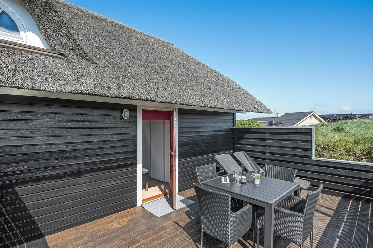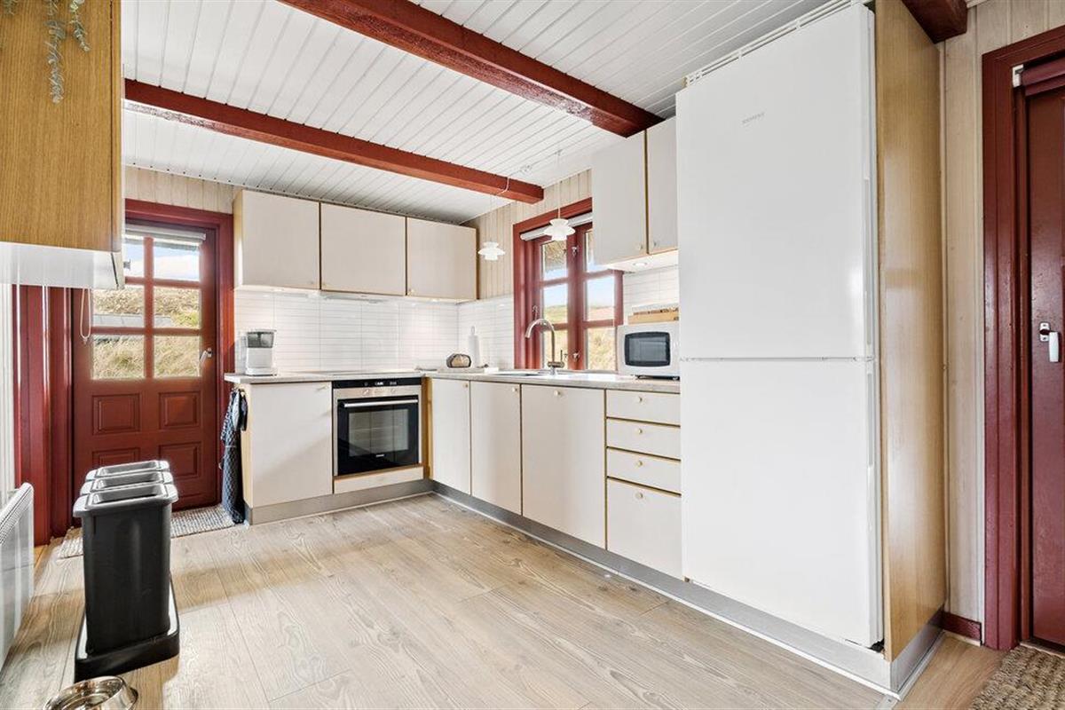 Dit gezellige vakantiehuis wacht op u in het populaire recreatiegebied Årgab - dicht bij de Noordzee. Een prachtig strand op een paar minuten lopen, duinen, zon en wind verwelkomen u. Ervaar deze unieke natuur tussen zee en fjord, waar de lucht nog zuiver is. Overal vindt u prachtige stranden en betoverende uitzichten. In het nabijgelegen Hvide Sande kunt u wandelen, musea bezoeken en lekker eten. Bij de sluis kunt u goed vissen. Ringkøbing Fjord is iets speciaals voor de zwemmers onder u.