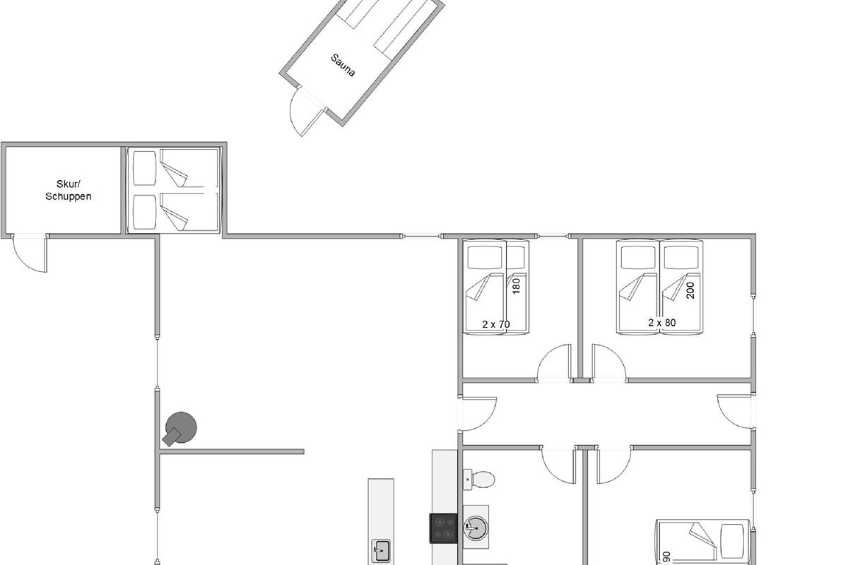 Three comfortably furnished bedrooms ensure a peaceful night's rest. The bathroom features underfloor heating for cosy warm feet in the morning. During the colder seasons, an energy-efficient heat pump provides economical heating.