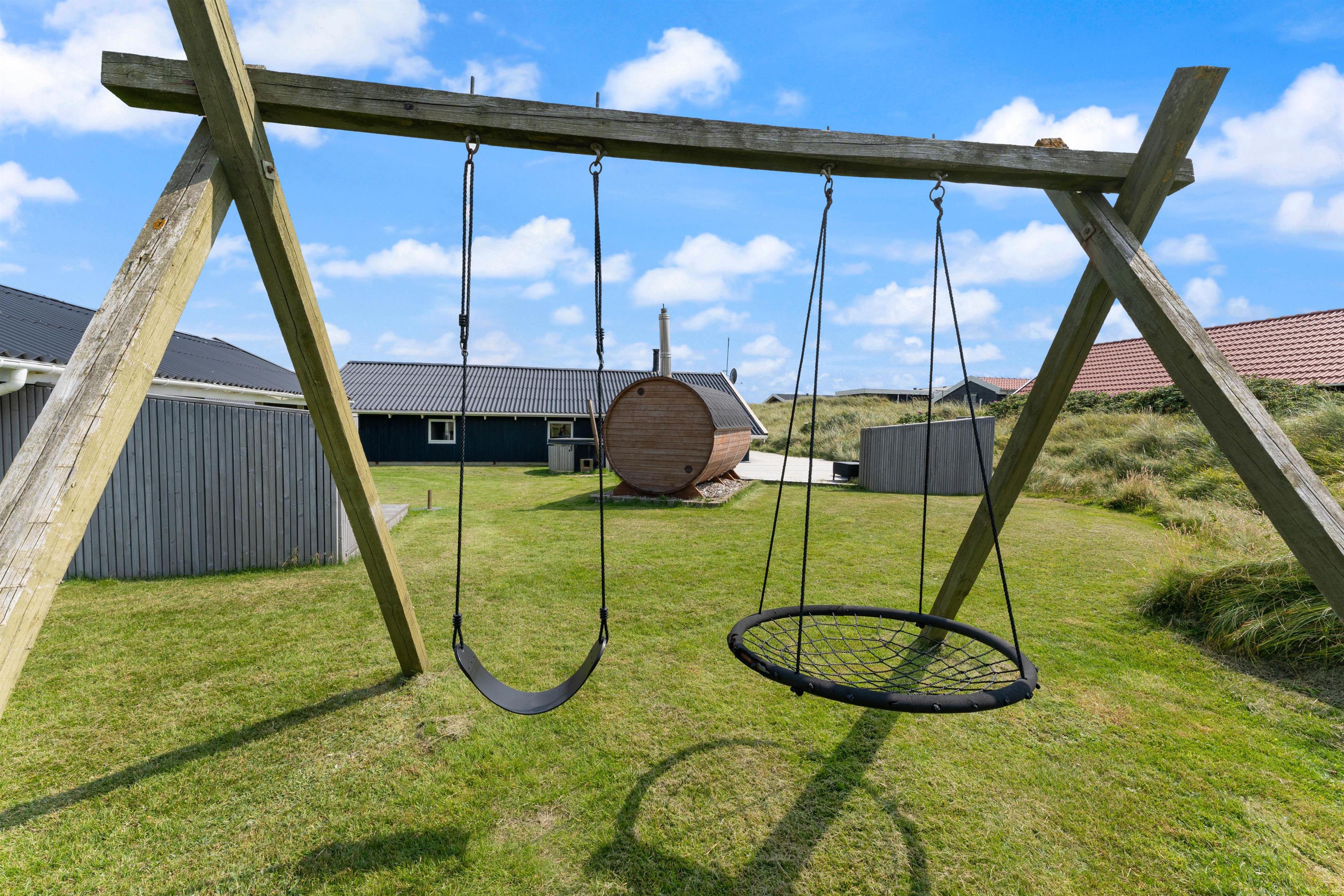 For a delightful barbecue evening, comfortable garden furniture and a barbecue await on the partially covered and sheltered terrace. Sun loungers are available for soaking up the sunshine, while children can play with dogs in the large garden, complete with swing.