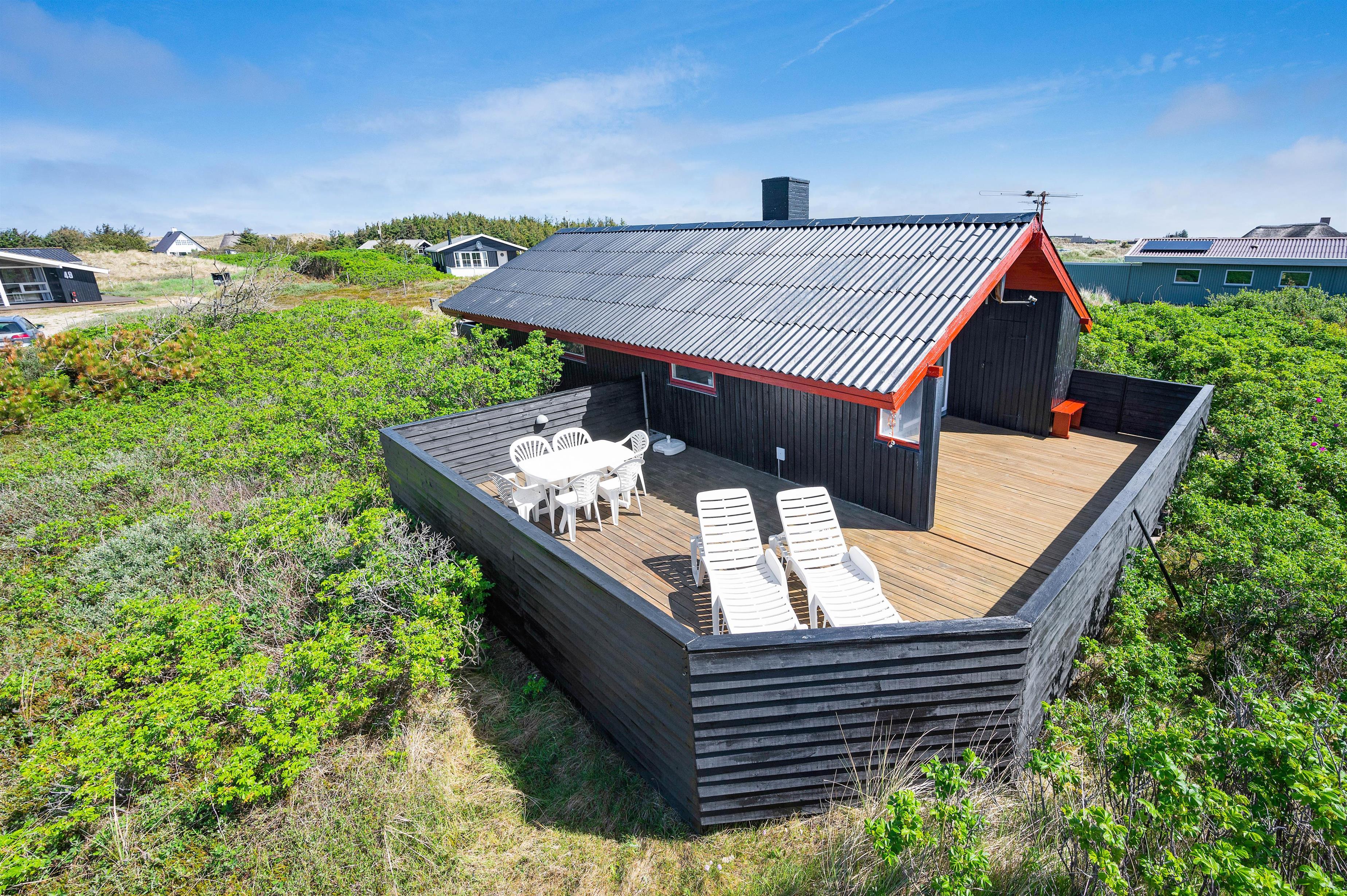 Dreaming of relaxing days in beautiful natural surroundings with your loved ones? Then this cosy and well-maintained holiday home is the perfect choice. The holiday home enjoys a beautiful, secluded position on natural grounds close to the fine sandy beach of Årgab, just a few kilometres south of Hvide Sande.