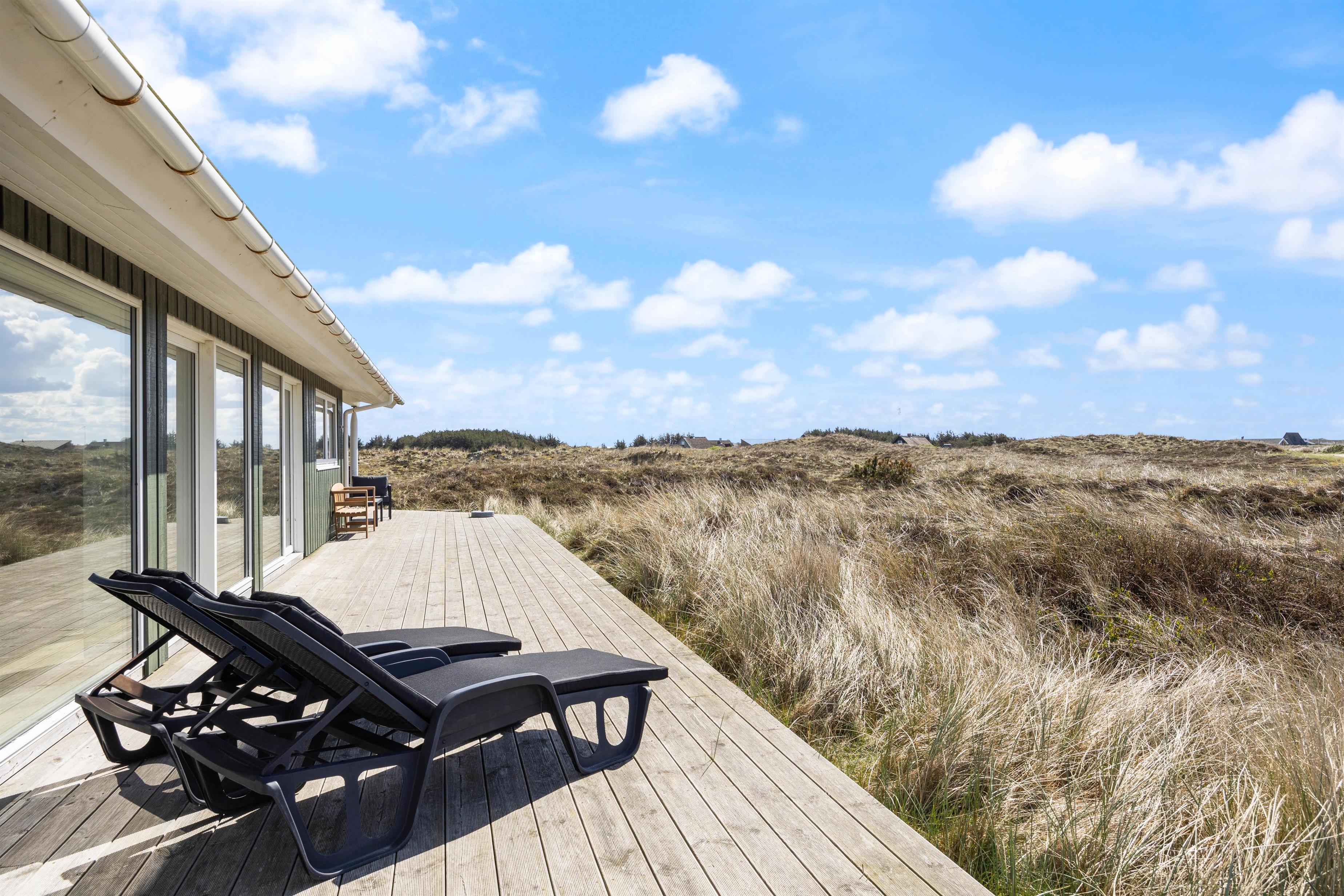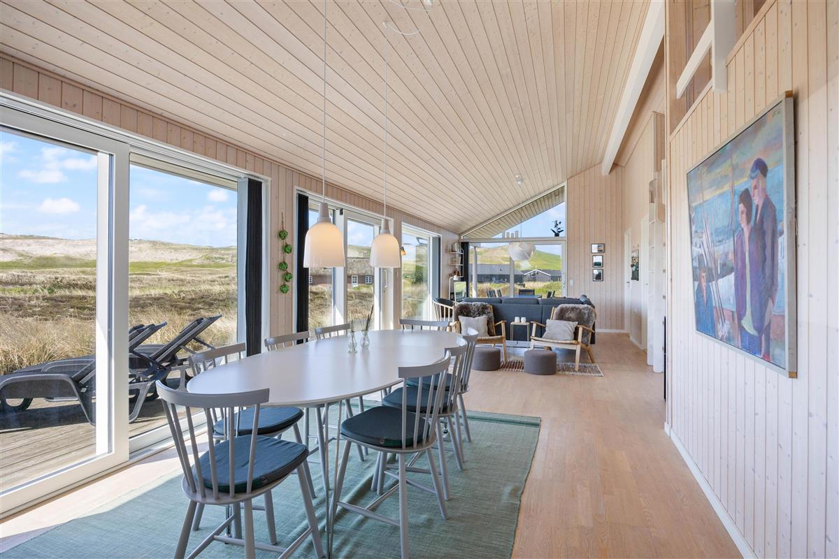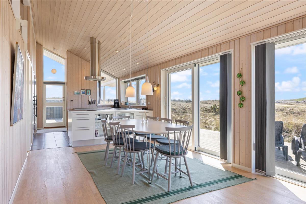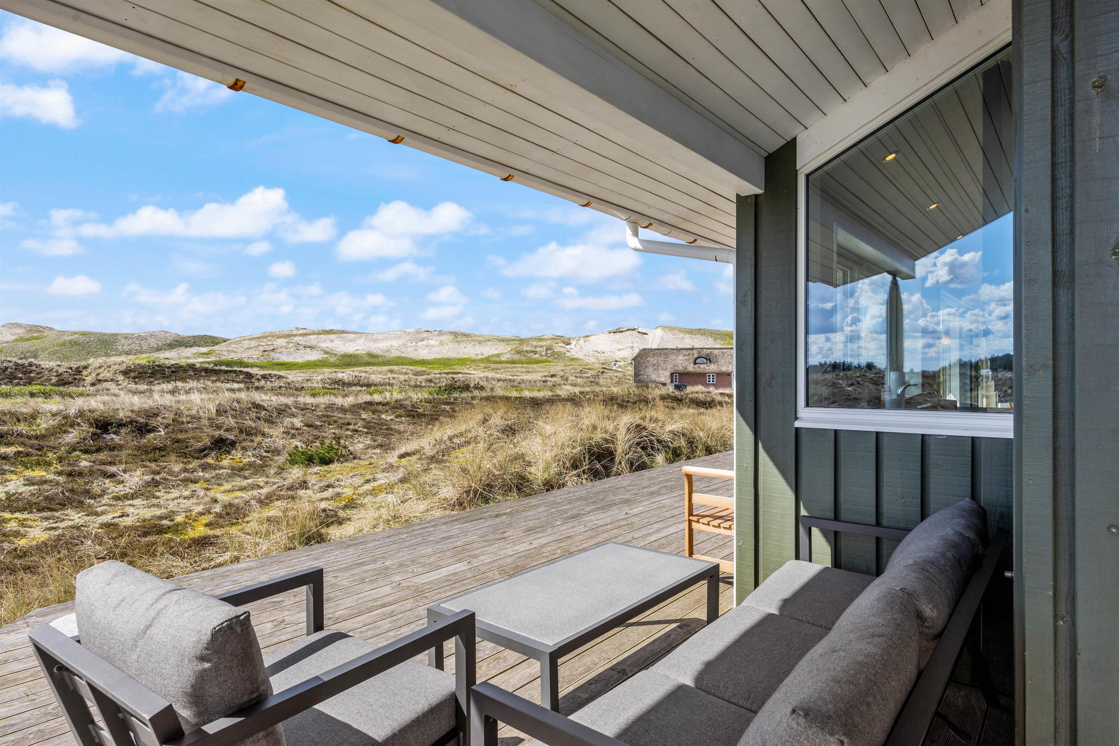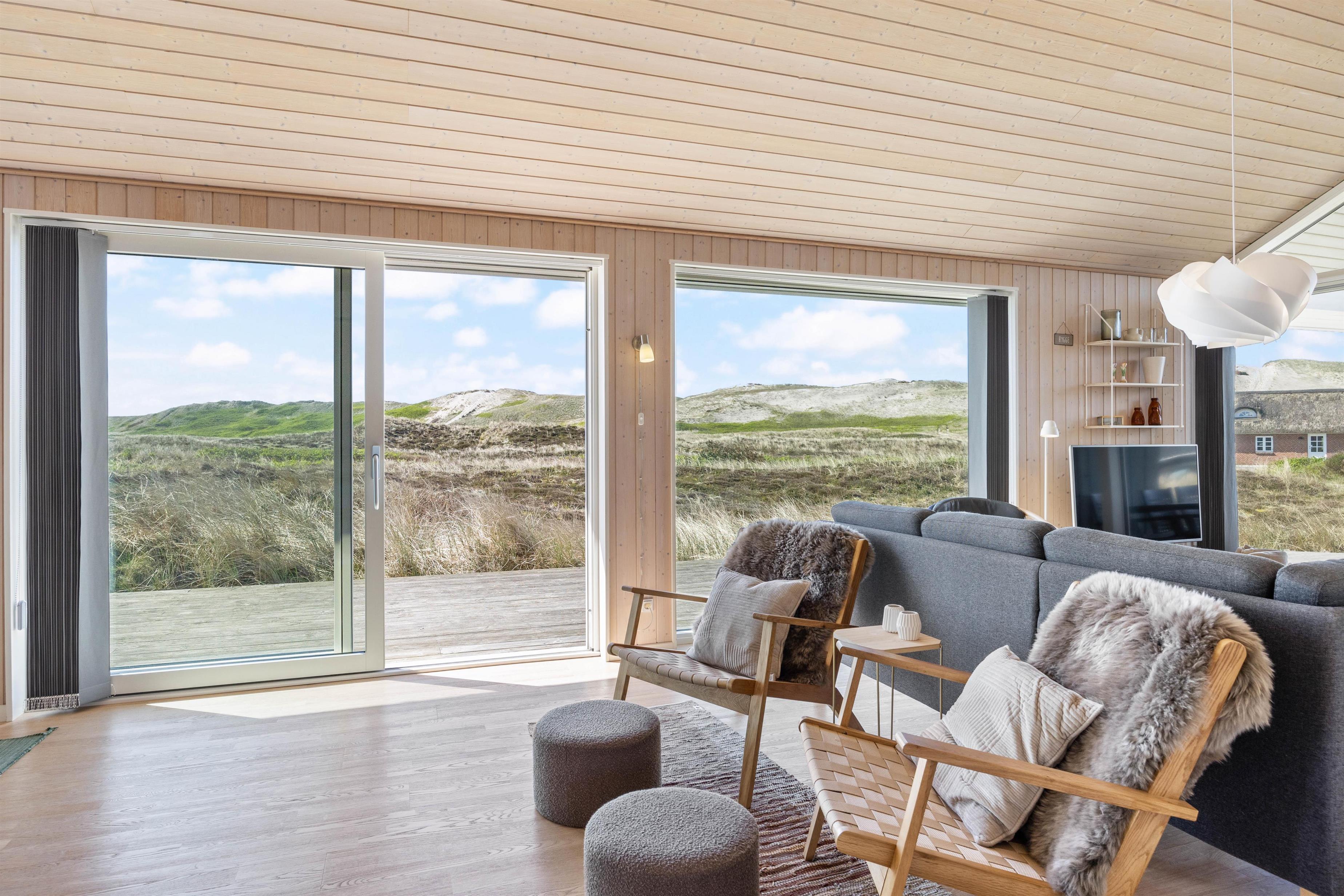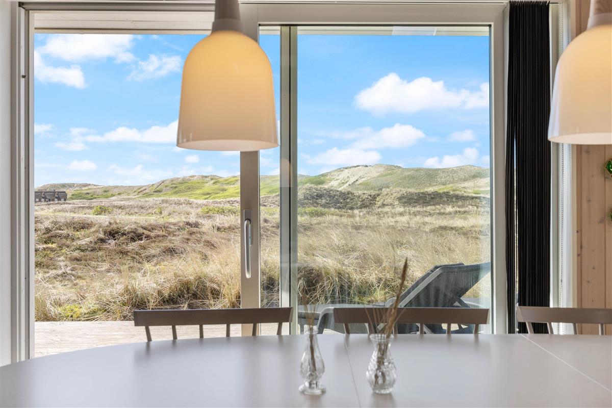 Large glass frontages in the living and dining area offer sweeping views. The magnificent panoramic outlook lets you experience nature's beauty and watch the ever-changing sky. The quiet, unspoilt holiday region of Årgab is ideal for switching off and relaxing. The beach is just 150 metres away, perfect for spontaneous beach visits. For a change of pace, the vibrant town of Hvide Sande, with its inviting shops and restaurants, is only about 2.5 miles (4 km) away.