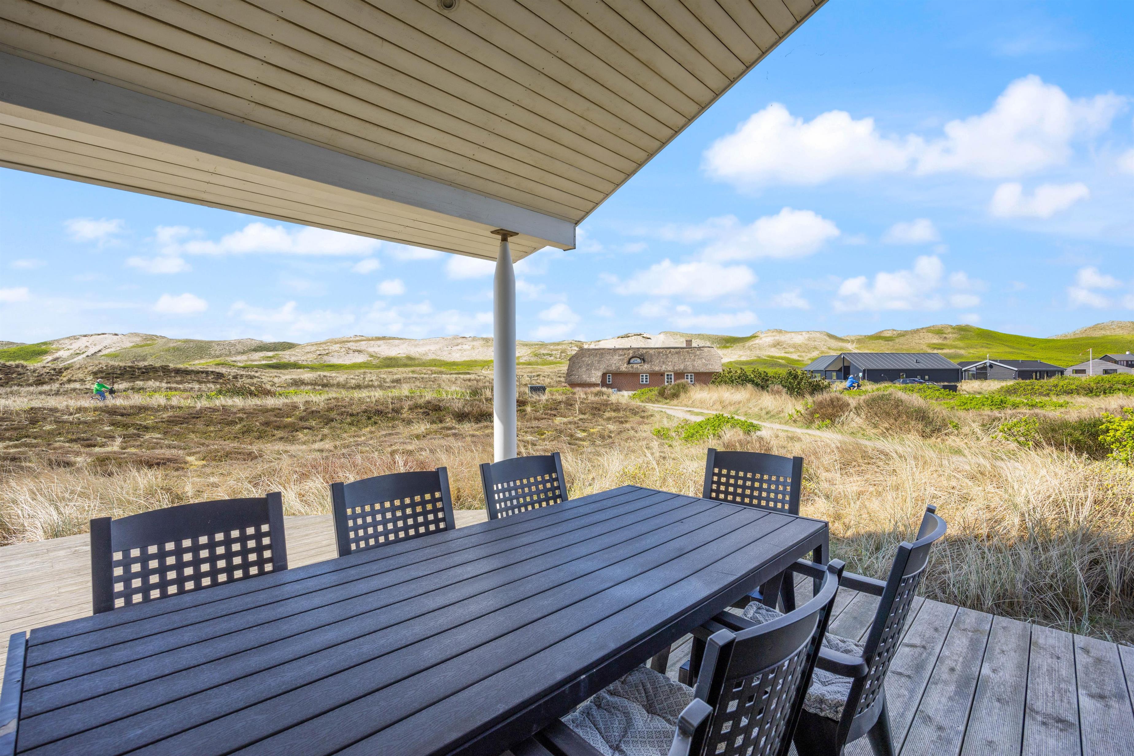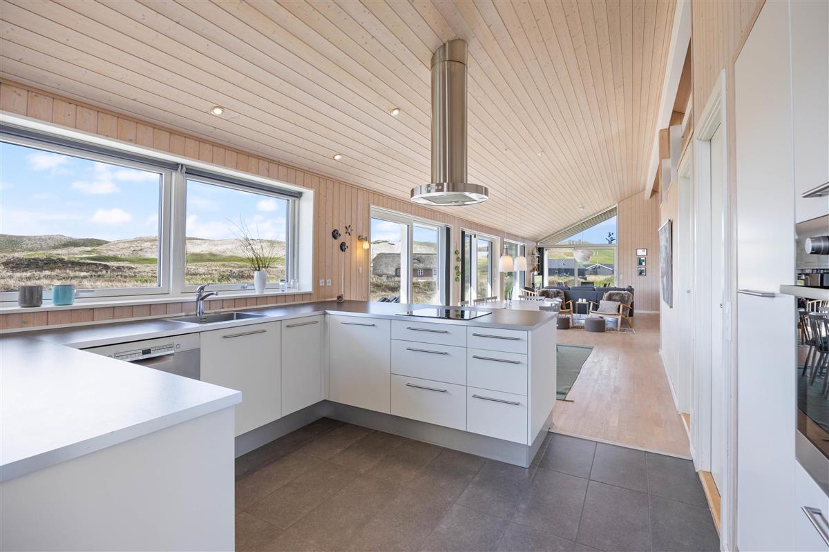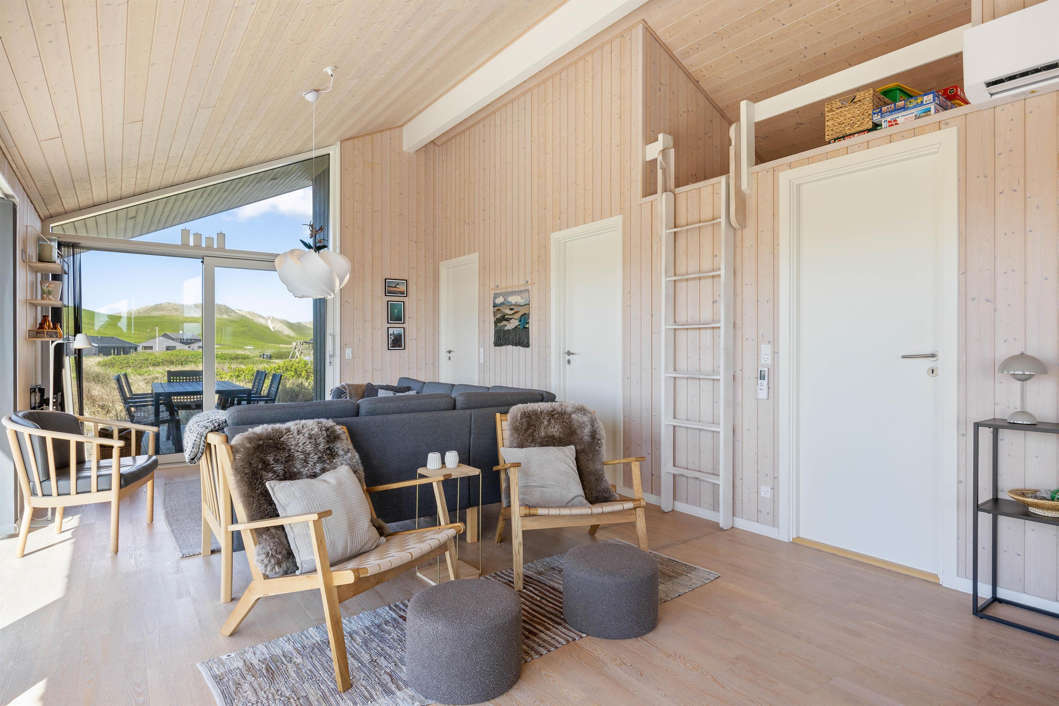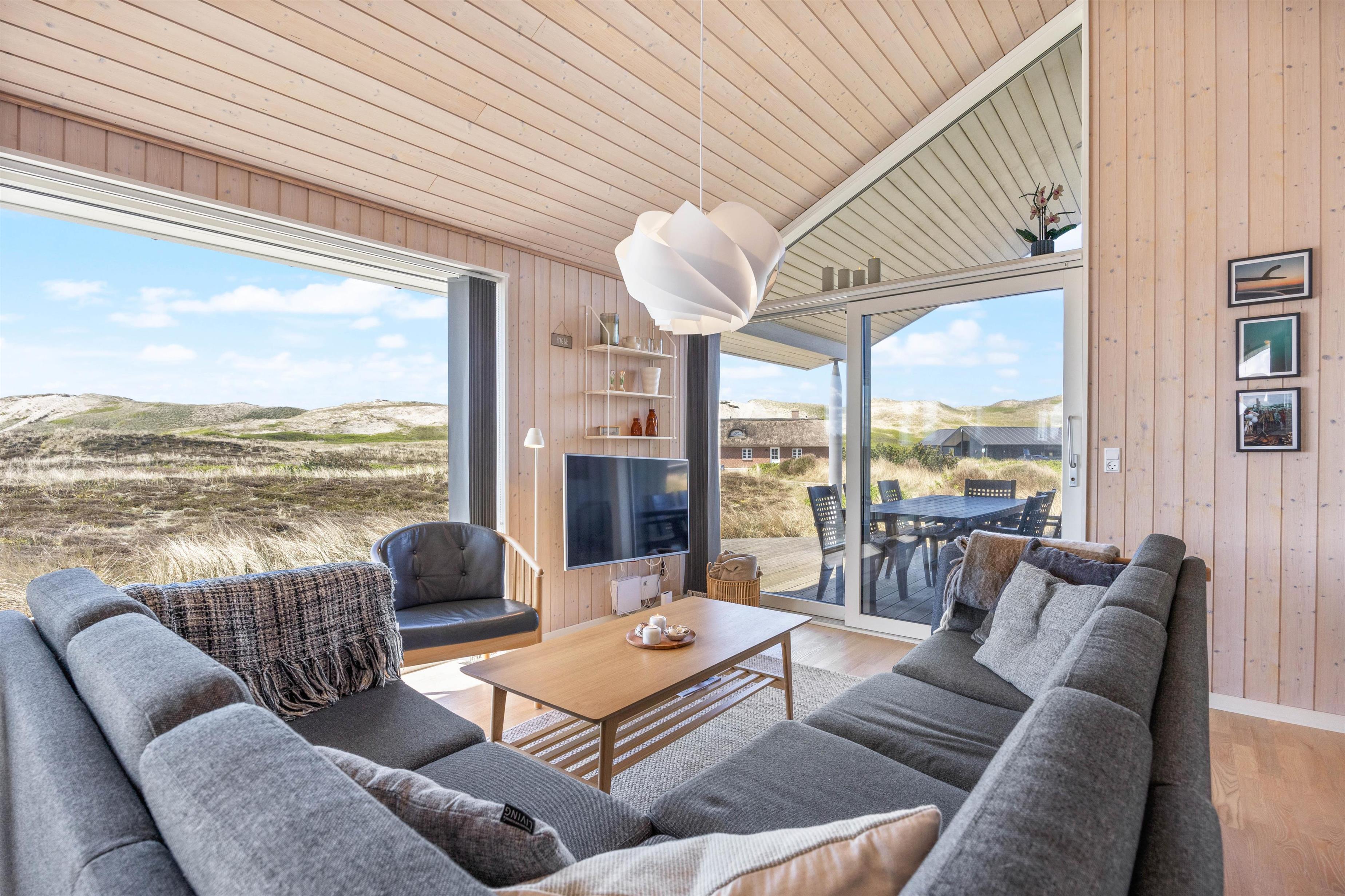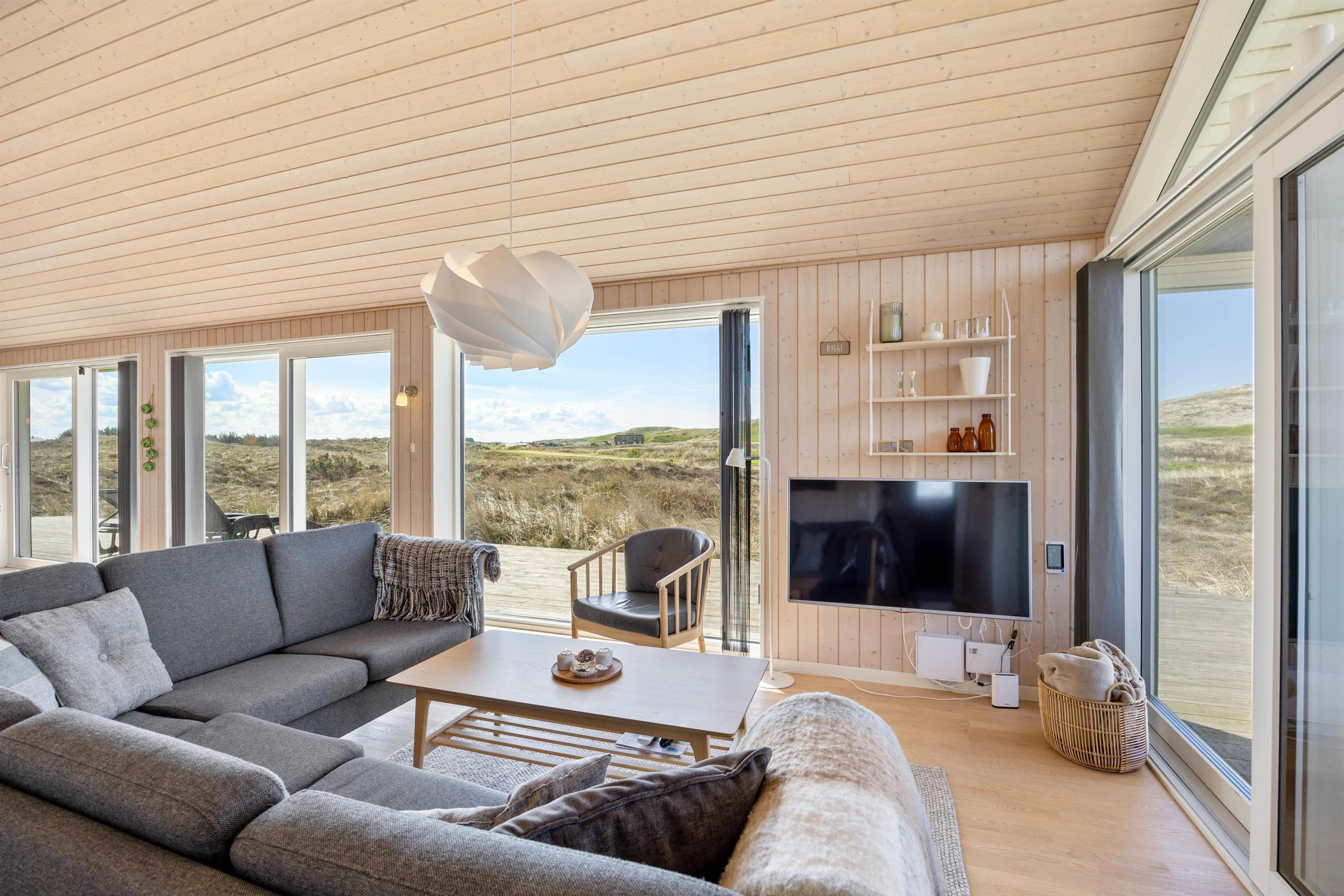 Large glass frontages in the living and dining area offer sweeping views. The magnificent panoramic outlook lets you experience nature's beauty and watch the ever-changing sky. The quiet, unspoilt holiday region of Årgab is ideal for switching off and relaxing. The beach is just 150 metres away, perfect for spontaneous beach visits. For a change of pace, the vibrant town of Hvide Sande, with its inviting shops and restaurants, is only about 2.5 miles (4 km) away.
