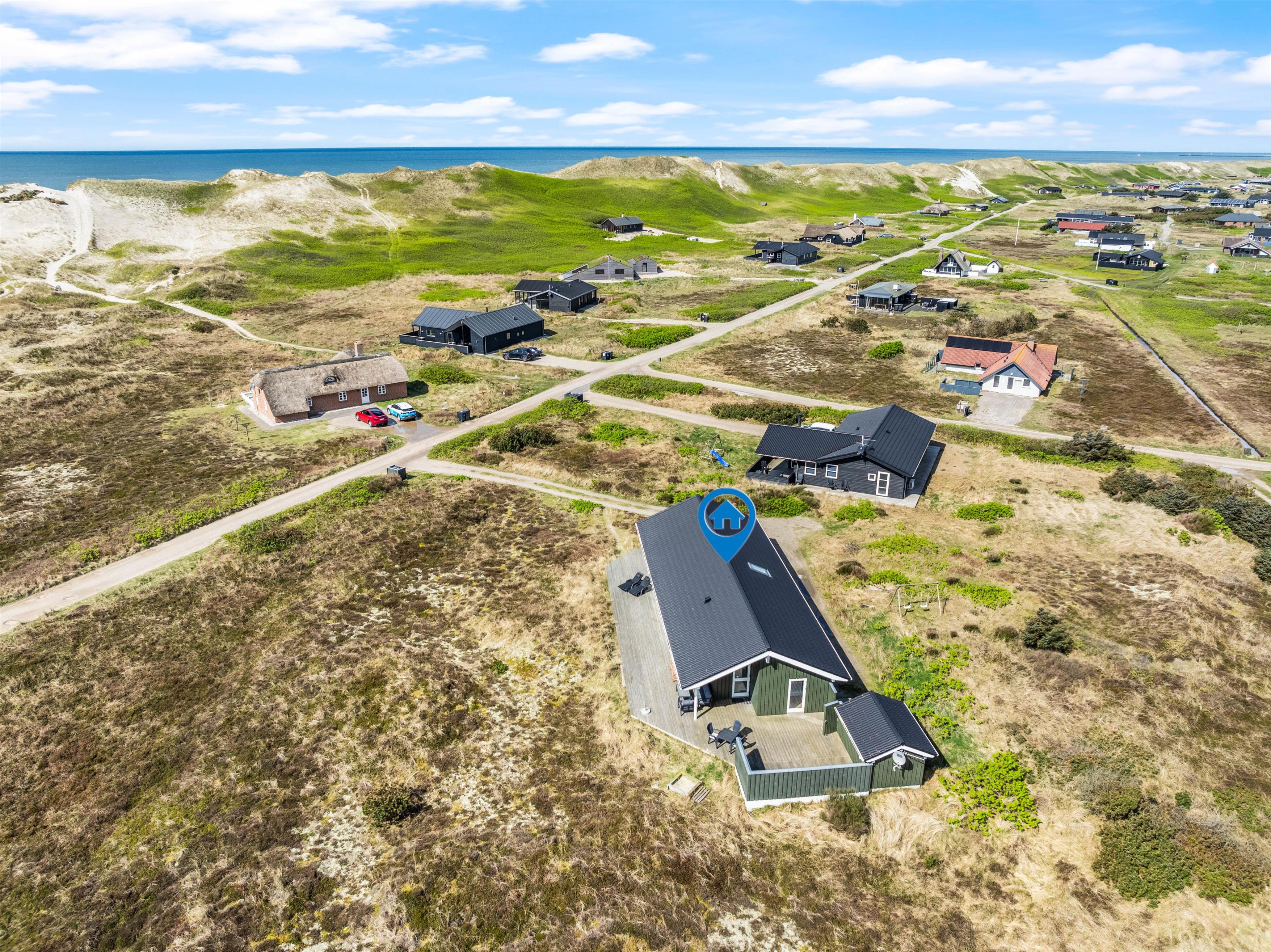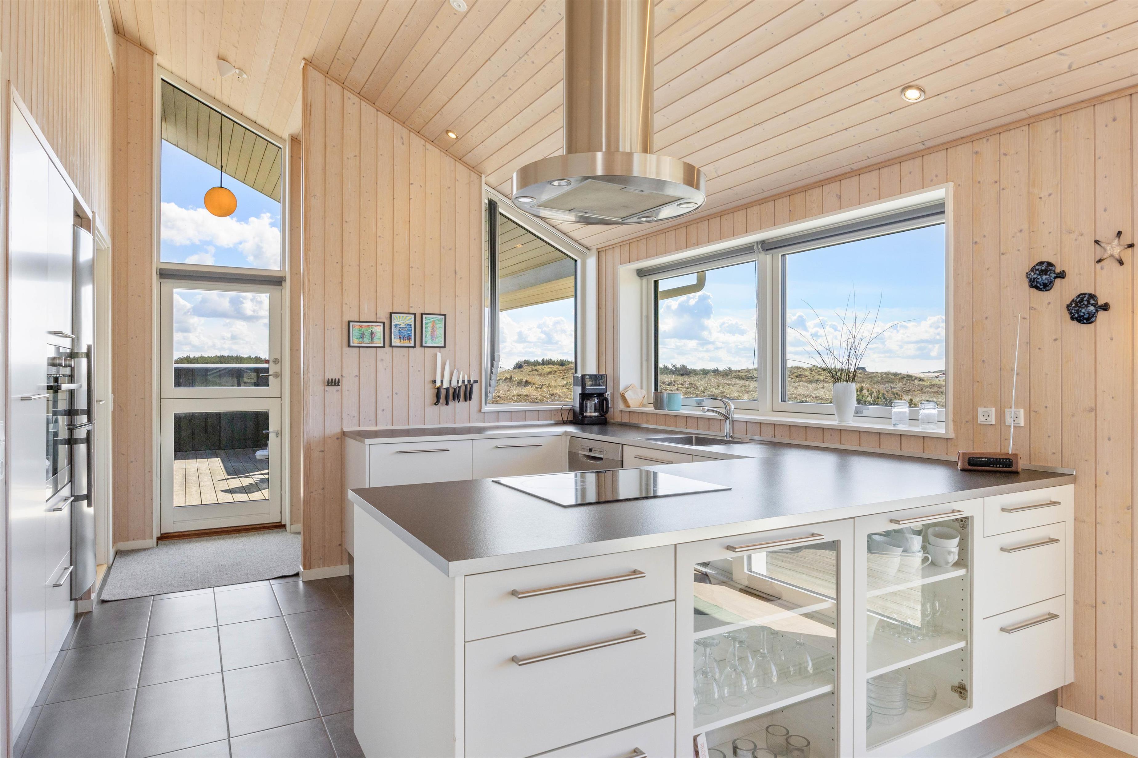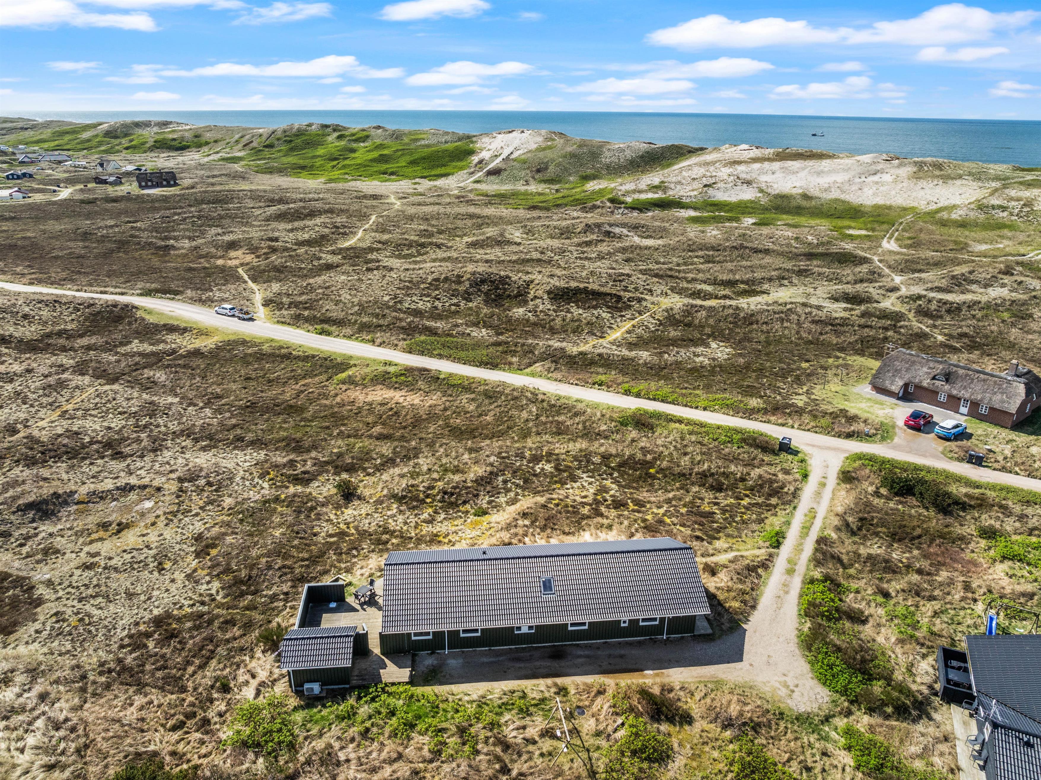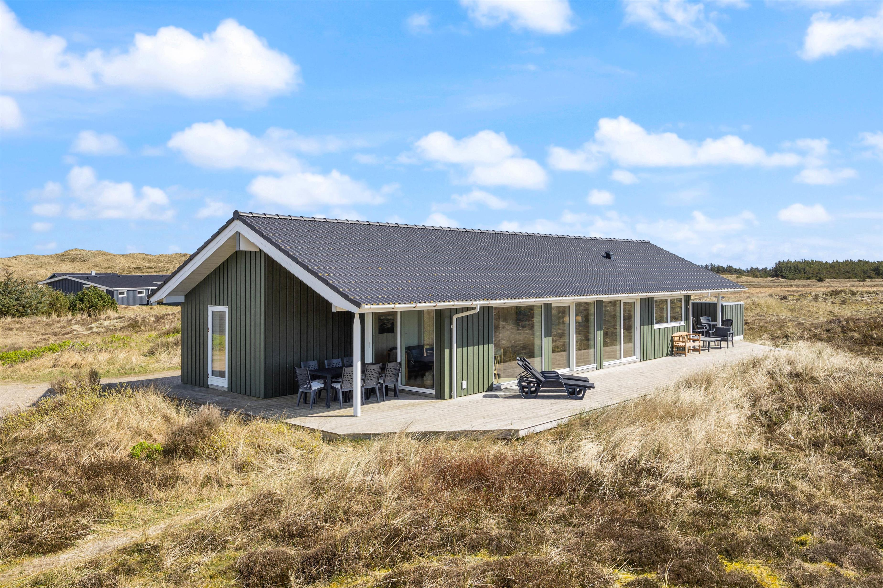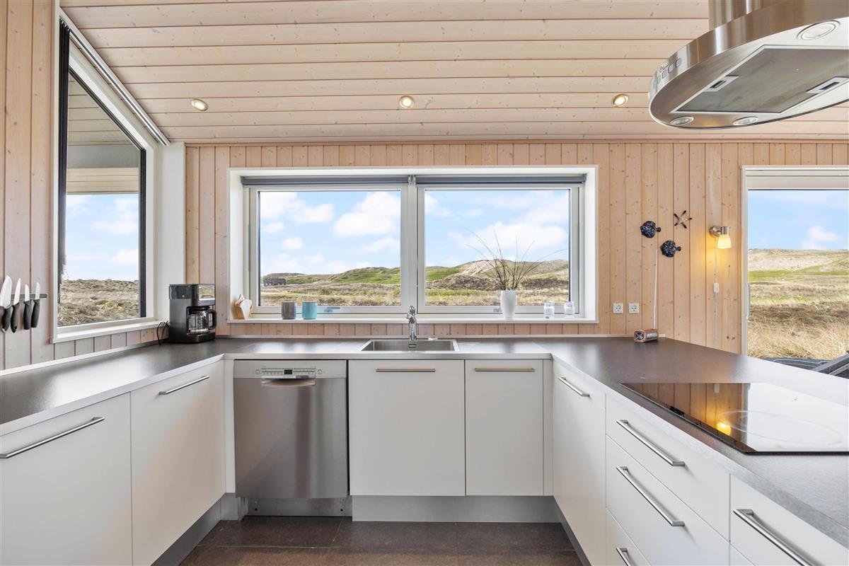 Large glass frontages in the living and dining area offer sweeping views. The magnificent panoramic outlook lets you experience nature's beauty and watch the ever-changing sky. The quiet, unspoilt holiday region of Årgab is ideal for switching off and relaxing. The beach is just 150 metres away, perfect for spontaneous beach visits. For a change of pace, the vibrant town of Hvide Sande, with its inviting shops and restaurants, is only about 2.5 miles (4 km) away.