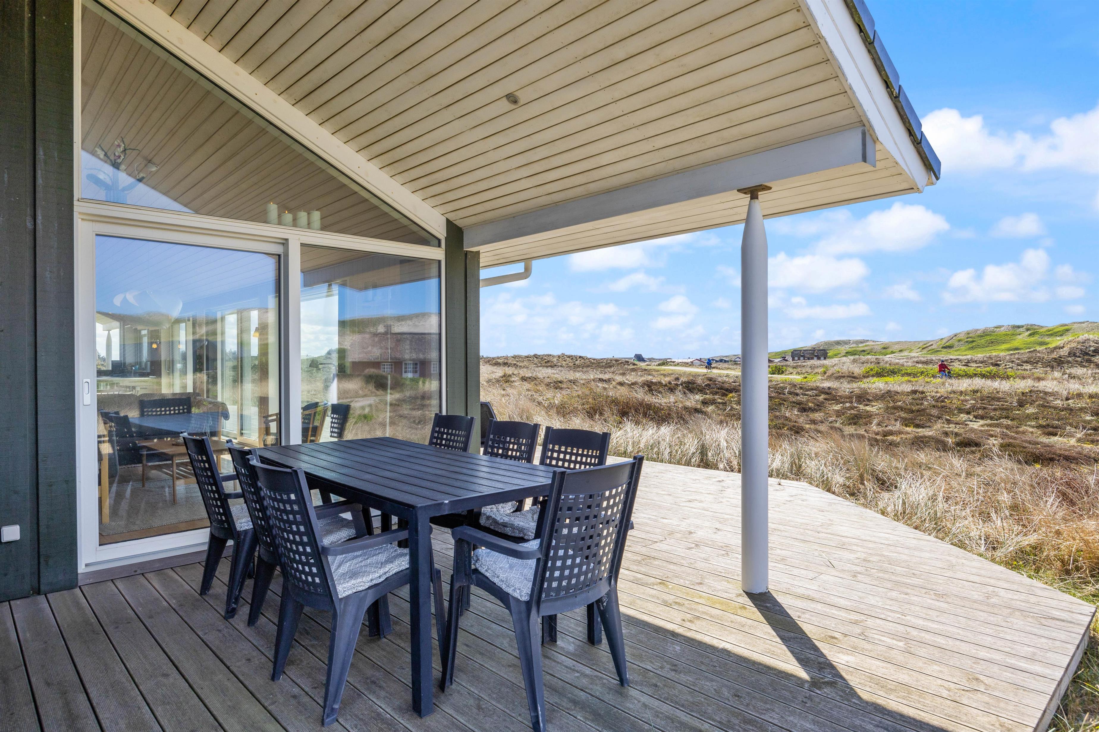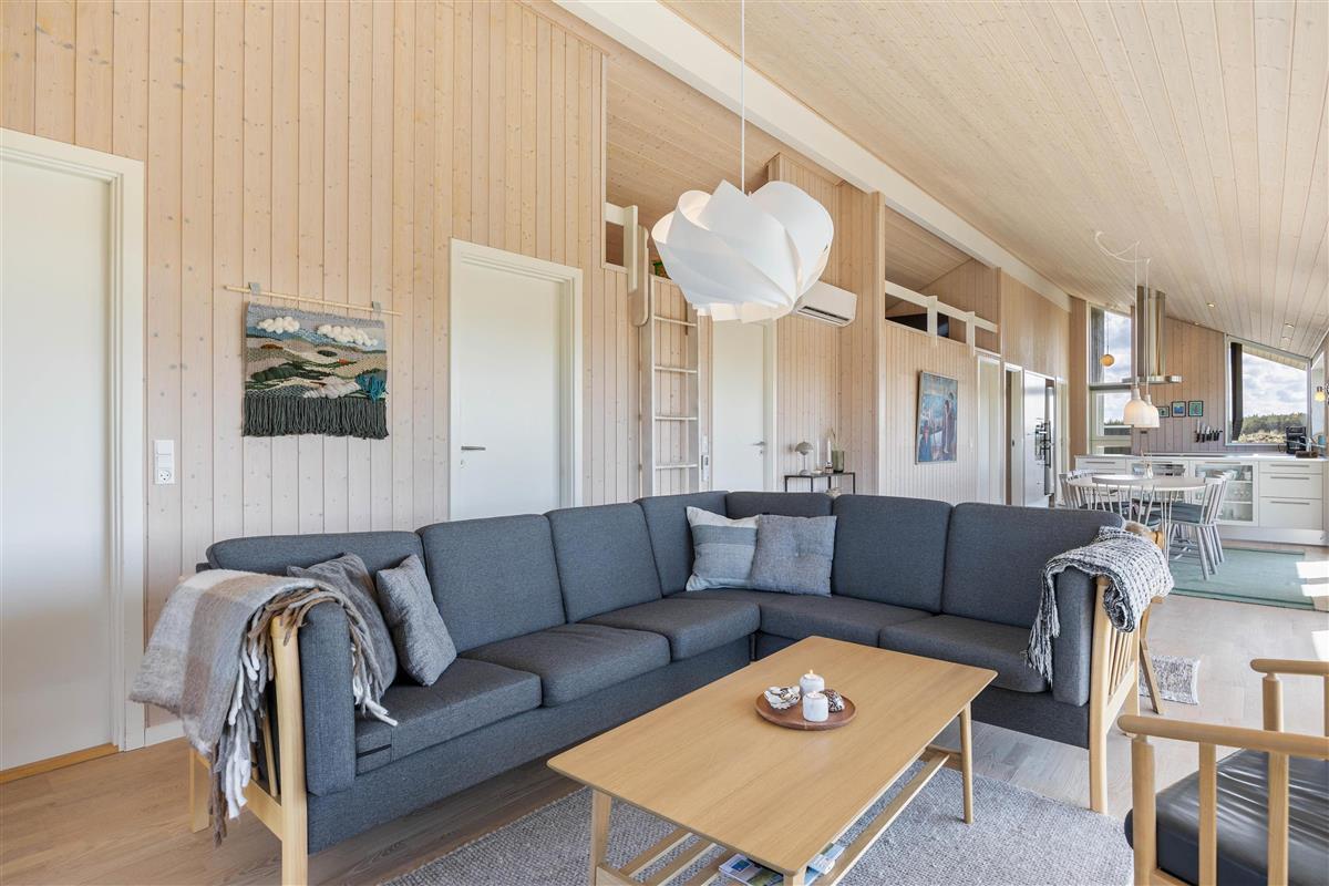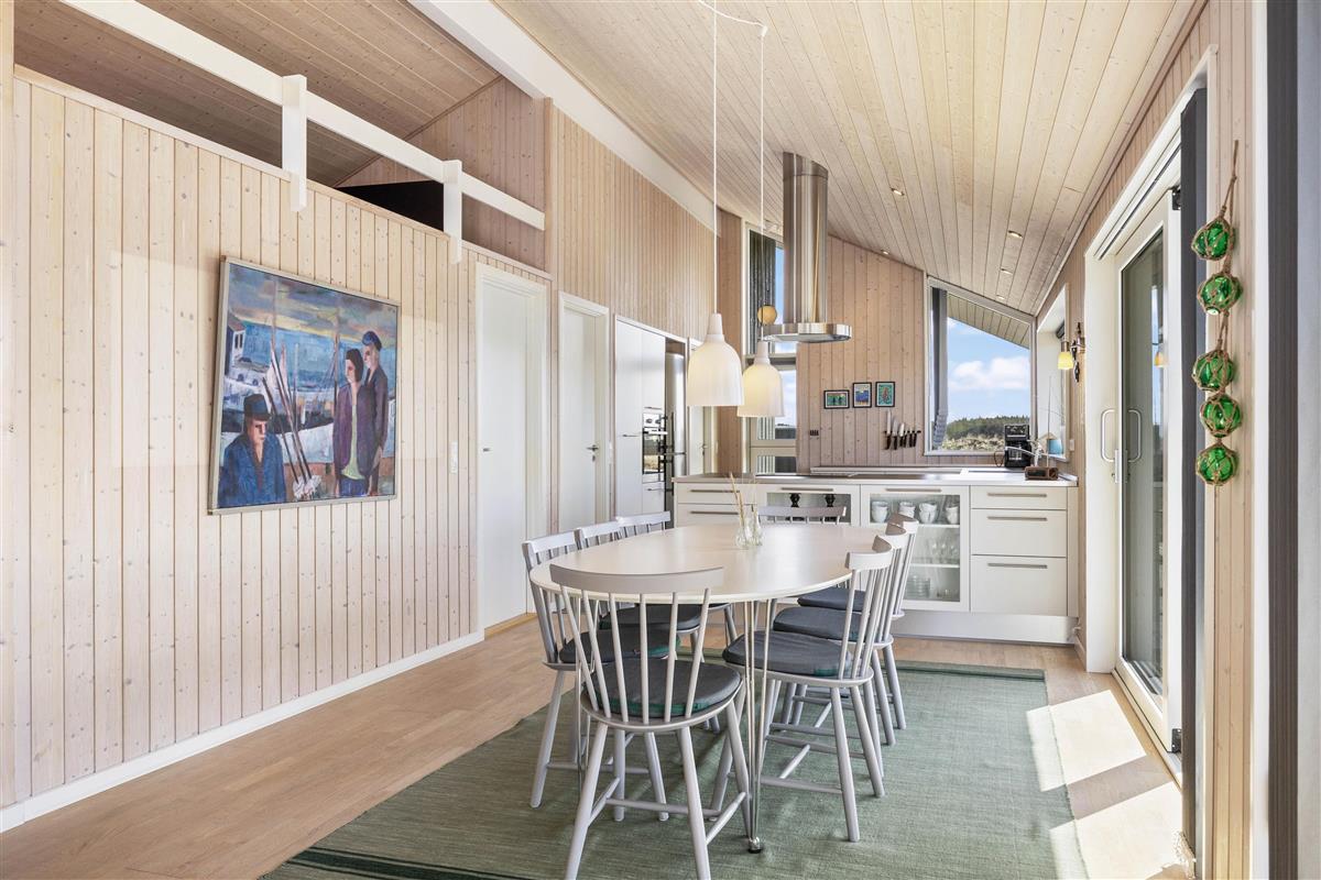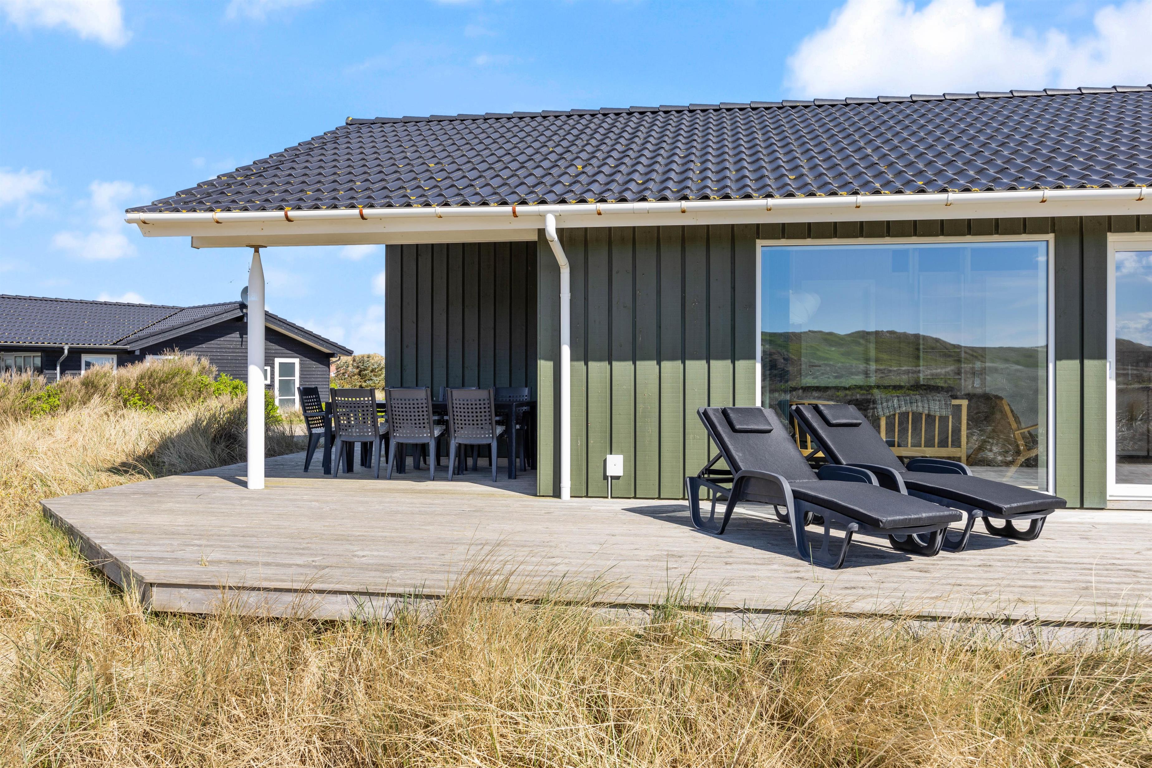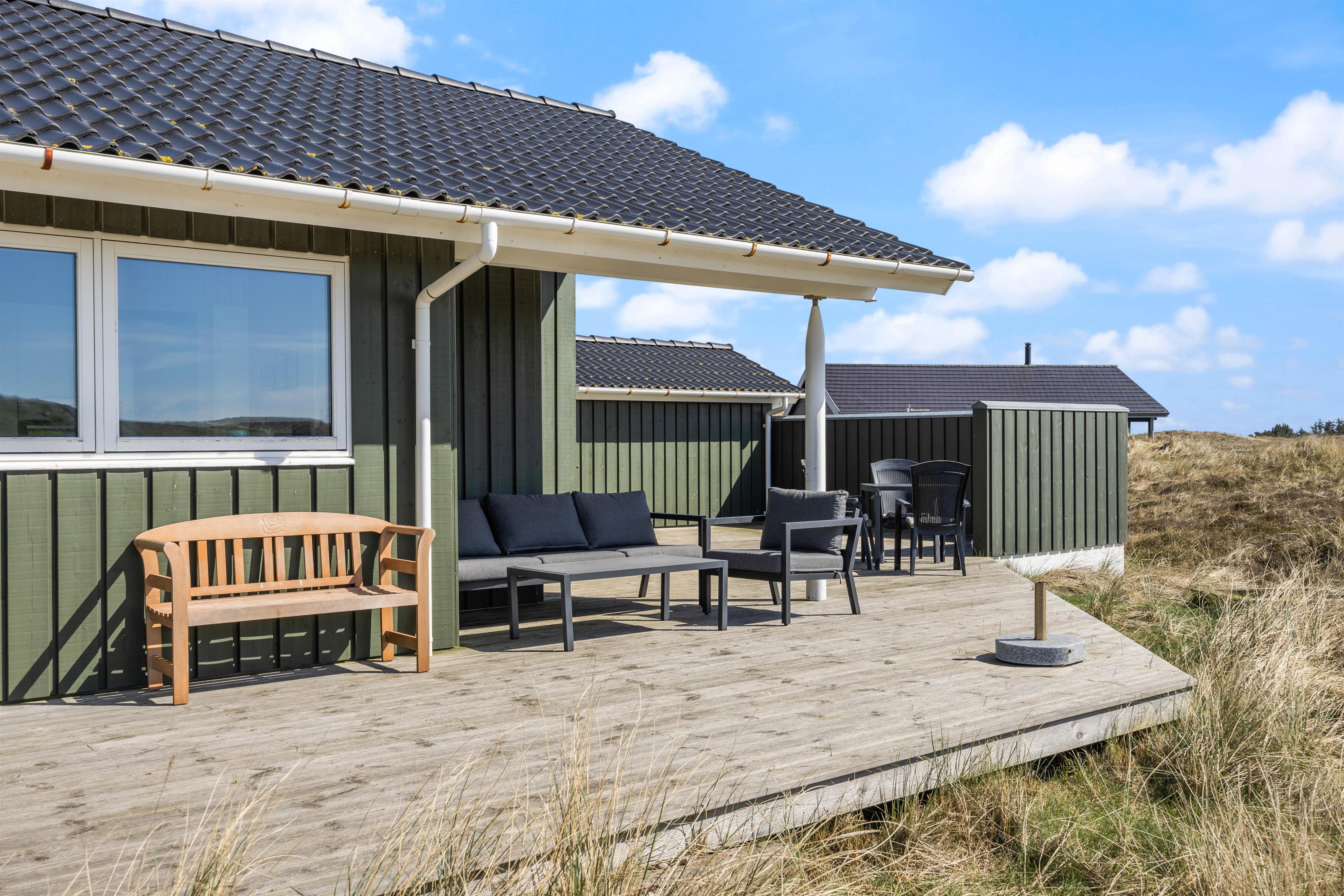 Large glass frontages in the living and dining area offer sweeping views. The magnificent panoramic outlook lets you experience nature's beauty and watch the ever-changing sky. The quiet, unspoilt holiday region of Årgab is ideal for switching off and relaxing. The beach is just 150 metres away, perfect for spontaneous beach visits. For a change of pace, the vibrant town of Hvide Sande, with its inviting shops and restaurants, is only about 2.5 miles (4 km) away.