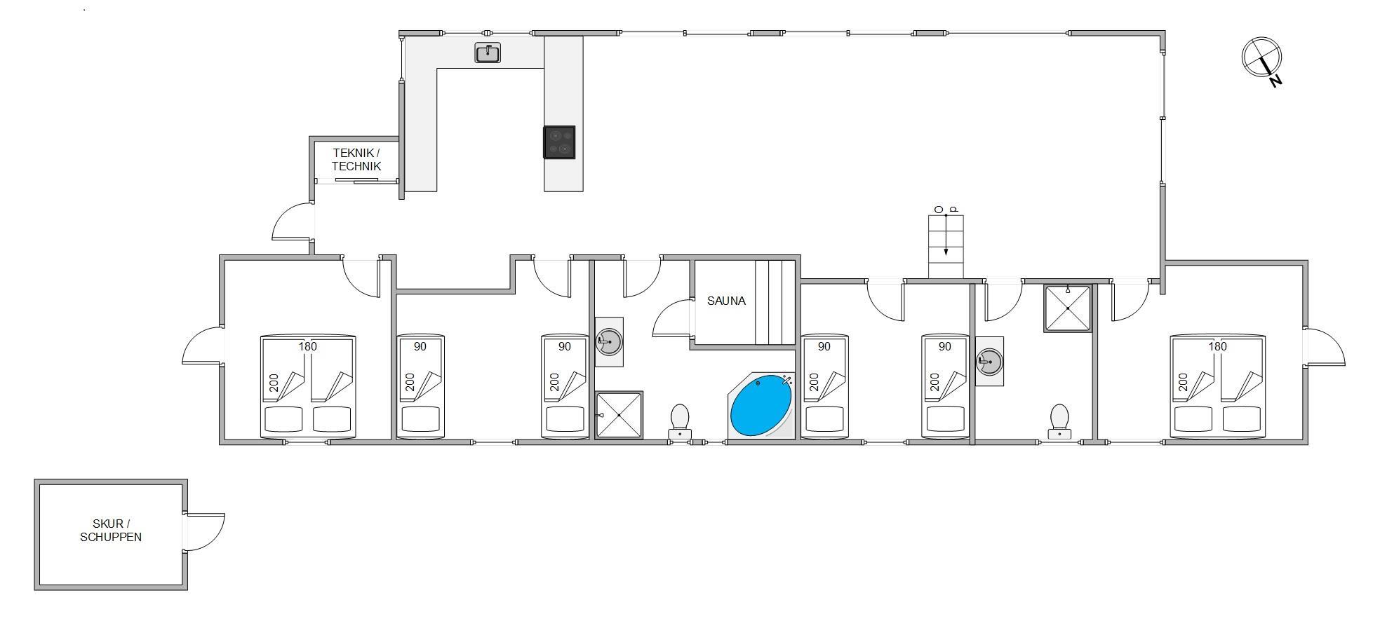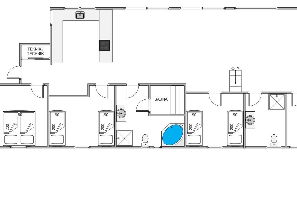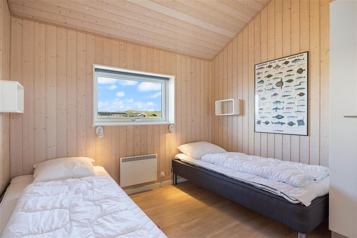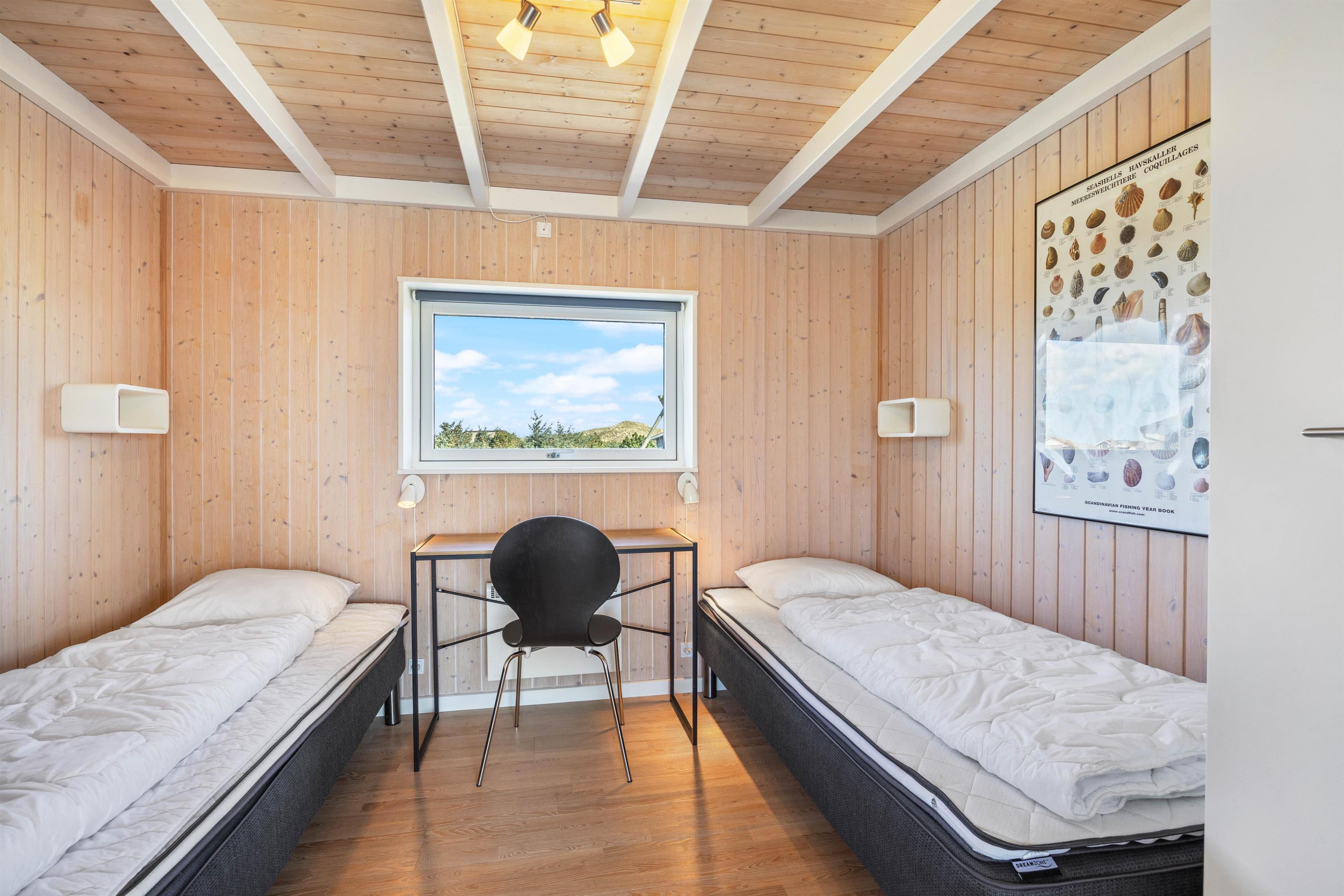 This spacious holiday home for 8 people covers 120 square metres. It features a bright, modern kitchen perfect for cooking together, and an open-plan living and dining area. The comfortable corner sofa is ideal for quietly reading a book, socialising, or watching television. The cosy mezzanine offers another peaceful retreat for relaxation or reading. The holiday home has 4 bedrooms: two furnished with double beds and two with twin beds, all promising a restful night's sleep.