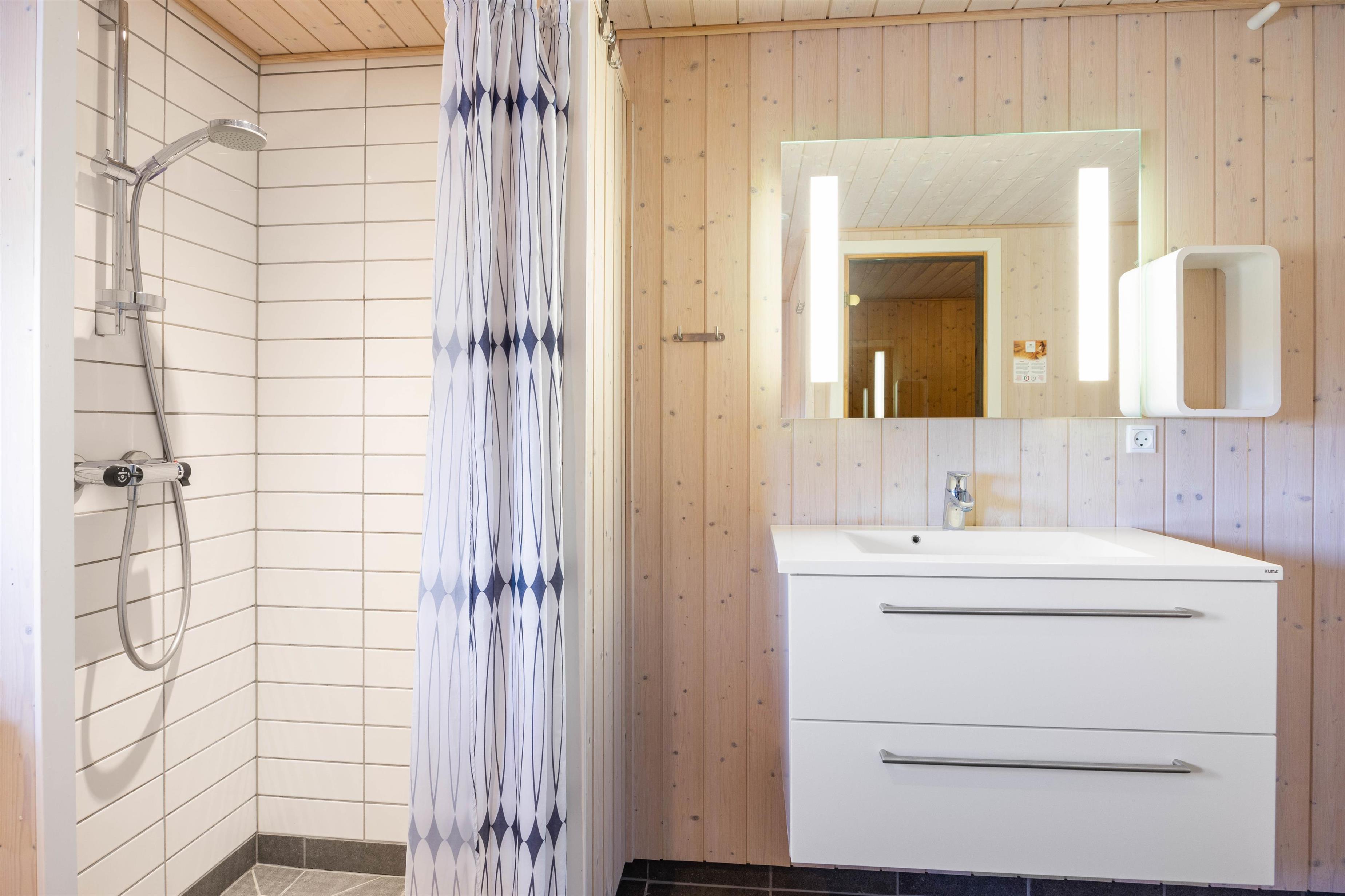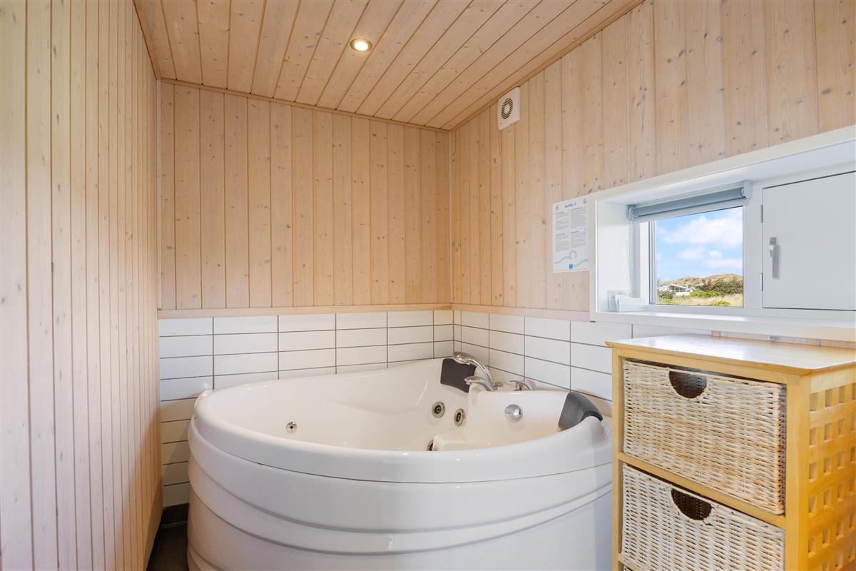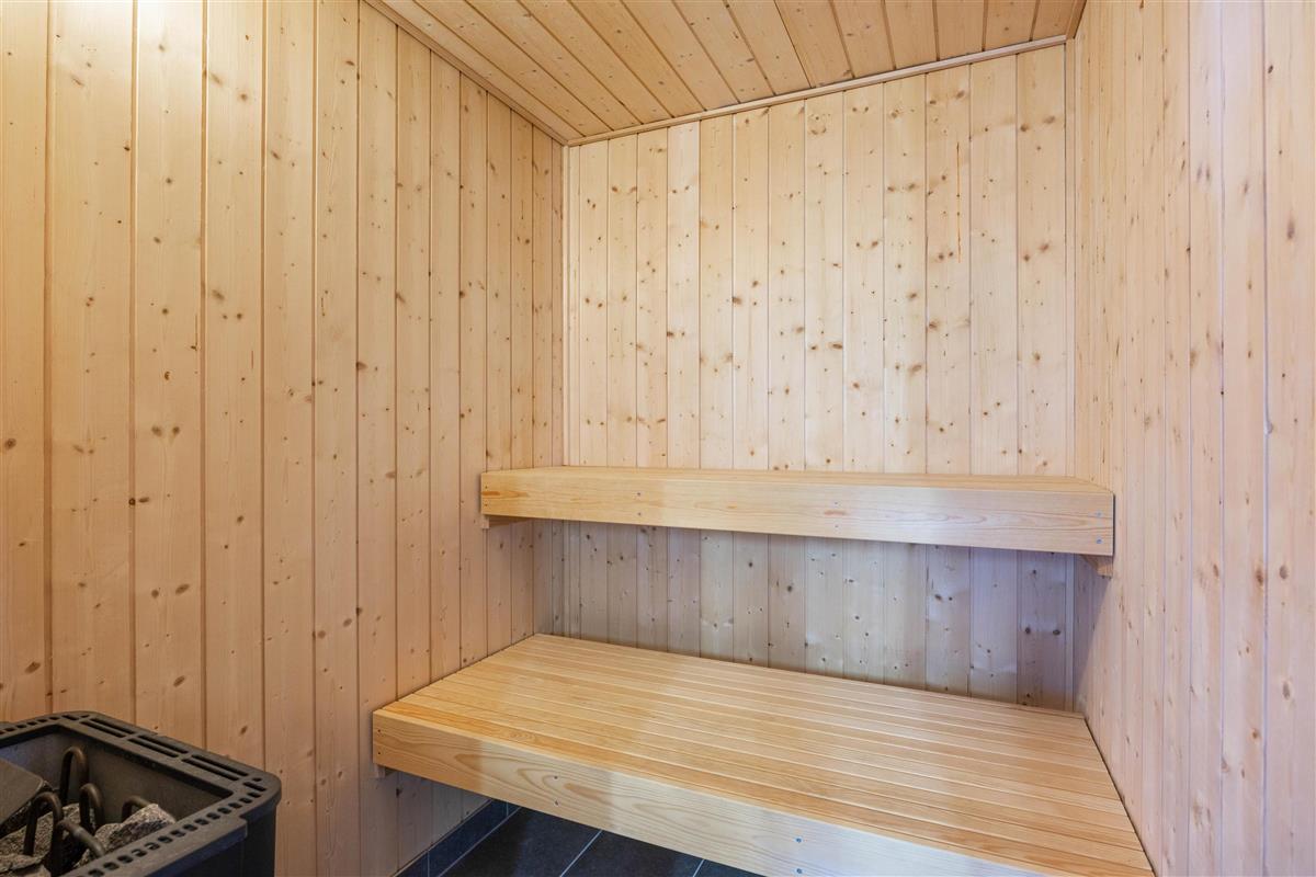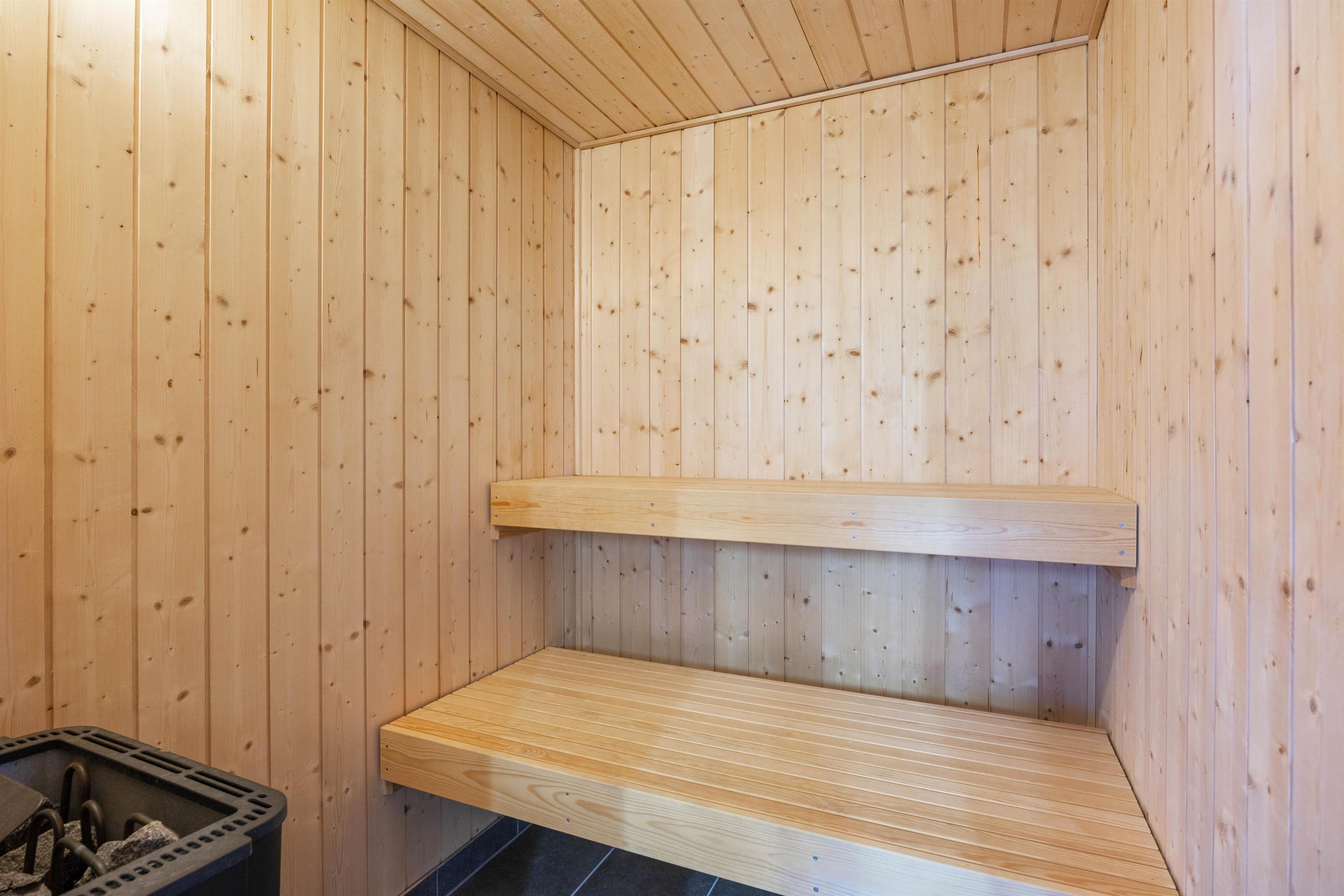 There are two bathrooms, one of which features a two-person whirlpool and sauna. Here you can enjoy a relaxing spa experience, offering the perfect retreat for body and mind.