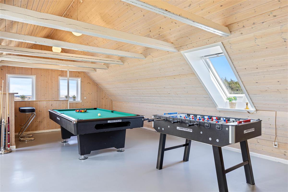 This holiday home on Denmark's west coast accommodates up to 25 people and welcomes dogs. Spread across two floors, all guests will find plenty of space, with entertainment options for every age group on each level - ensuring nobody will ever be bored.