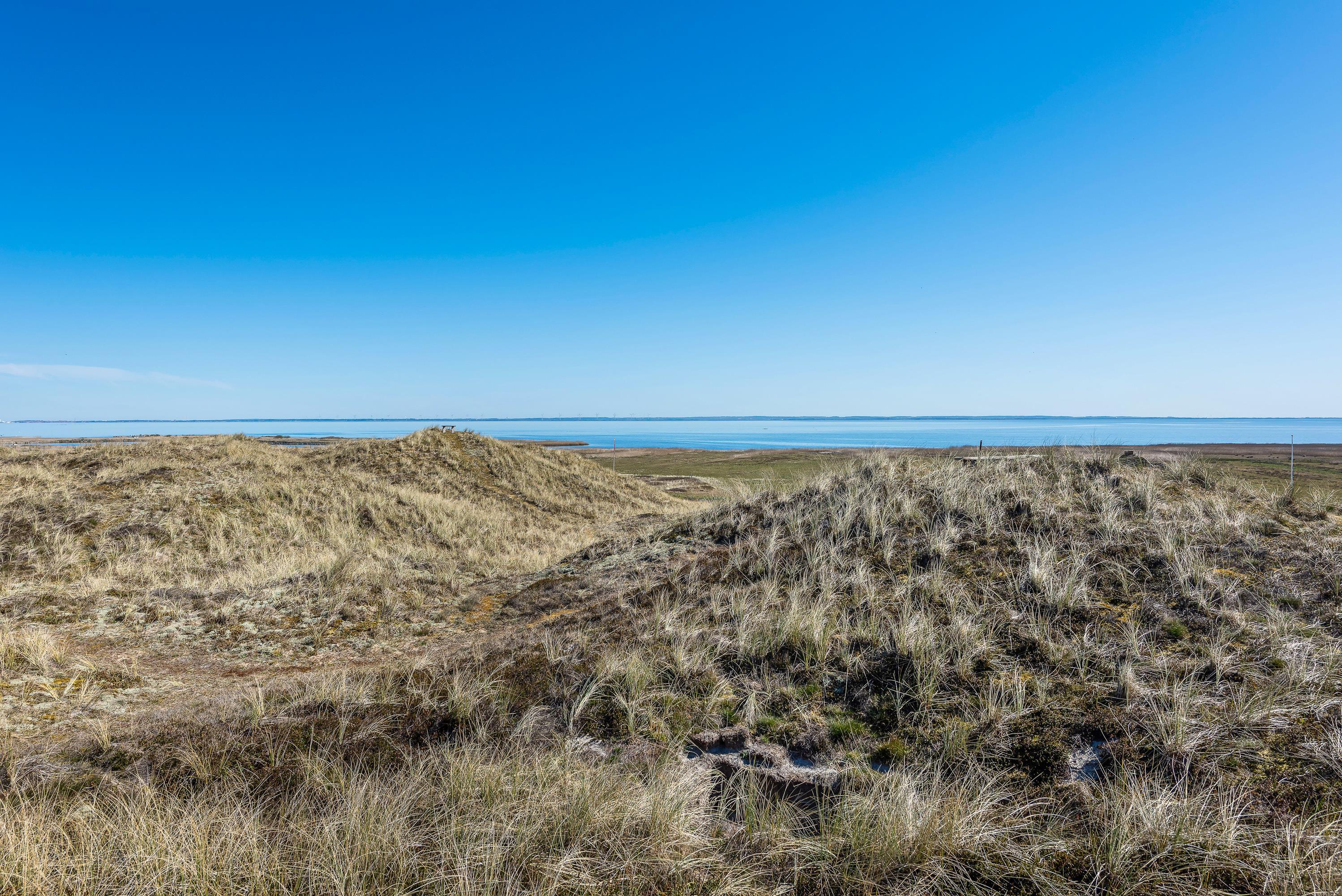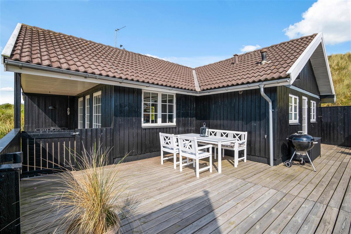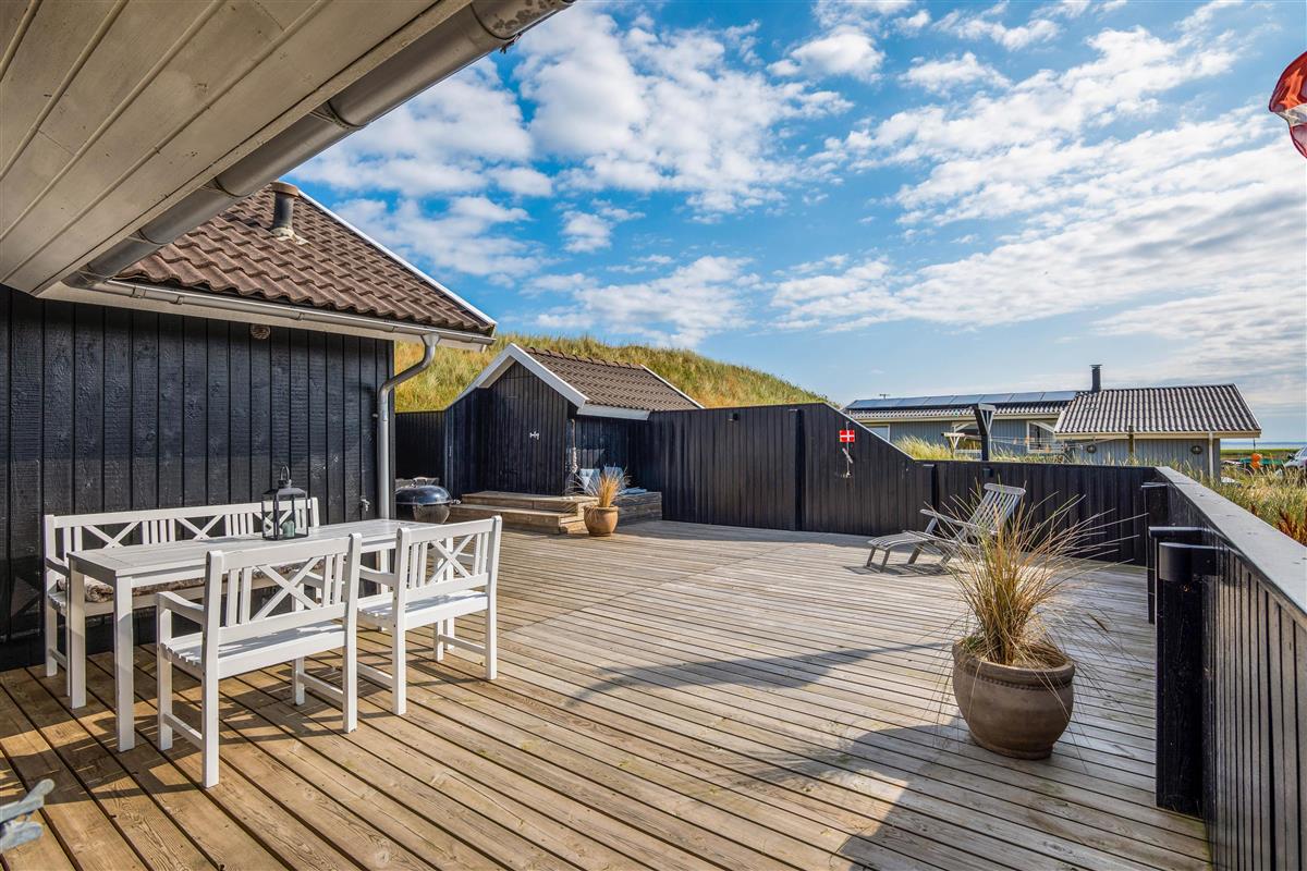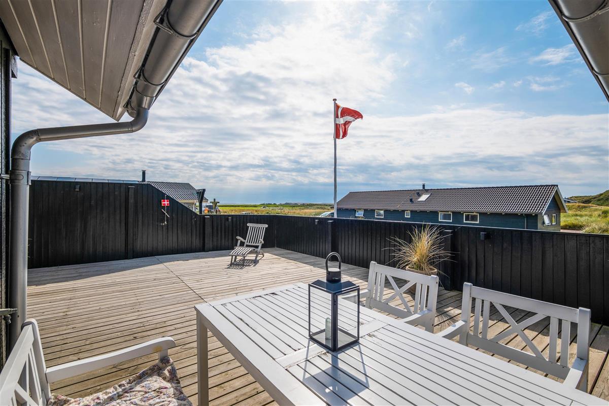 This comfortable holiday home sits on a fantastic dune plot with magnificent views over Ringkøbing Fjord. A beautiful, well-sheltered and partially covered terrace wraps around the holiday home. You can follow the sun's path and always find a sunny spot. Relax and enjoy the splendid fjord views.