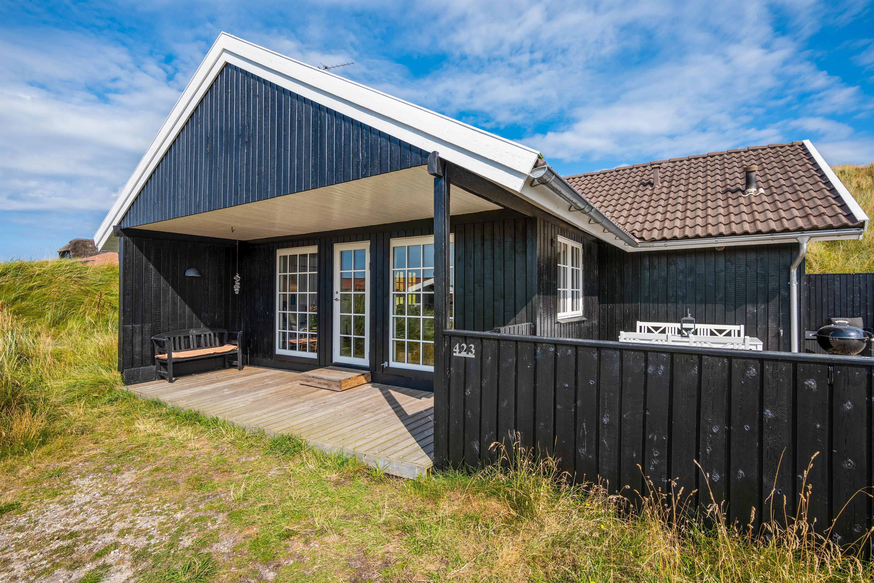 This charming holiday home at Tingodden 423 accommodates up to 5 people and is just 350 metres from the roaring North Sea. Completely renovated in 2018, the holiday home has been furnished with attention to detail. From the beautiful terrace, you'll enjoy splendid views over Ringkøbing Fjord. Your dog is also welcome here.