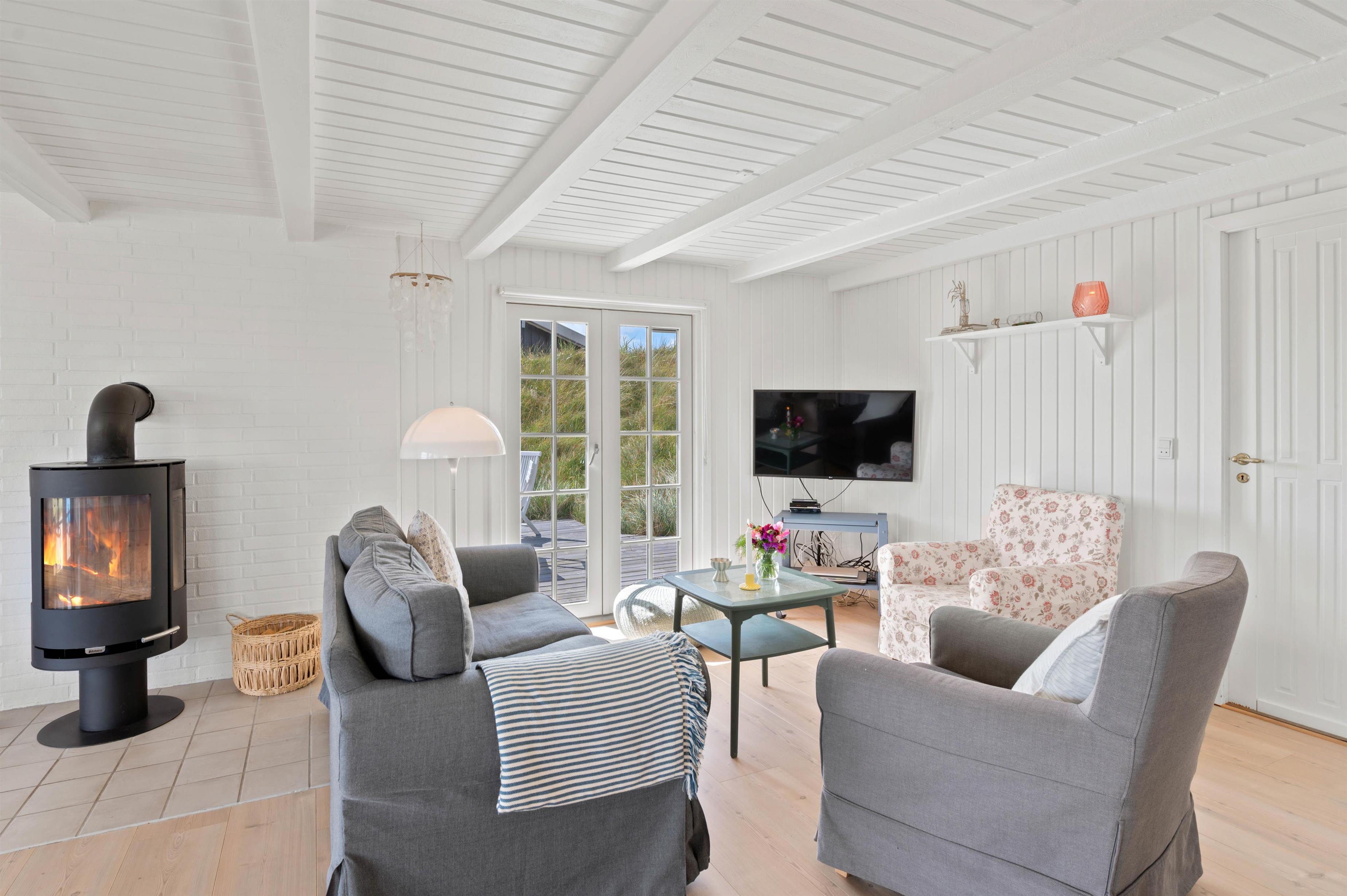 The light wooden ceilings and walls instantly put you in a holiday mood as you enter the house. In the evenings, you can get cosy in front of the crackling wood-burning stove, which spreads a comforting warmth as darkness falls over the fjord and dune landscape outside. Please note that German TV channels are limited.